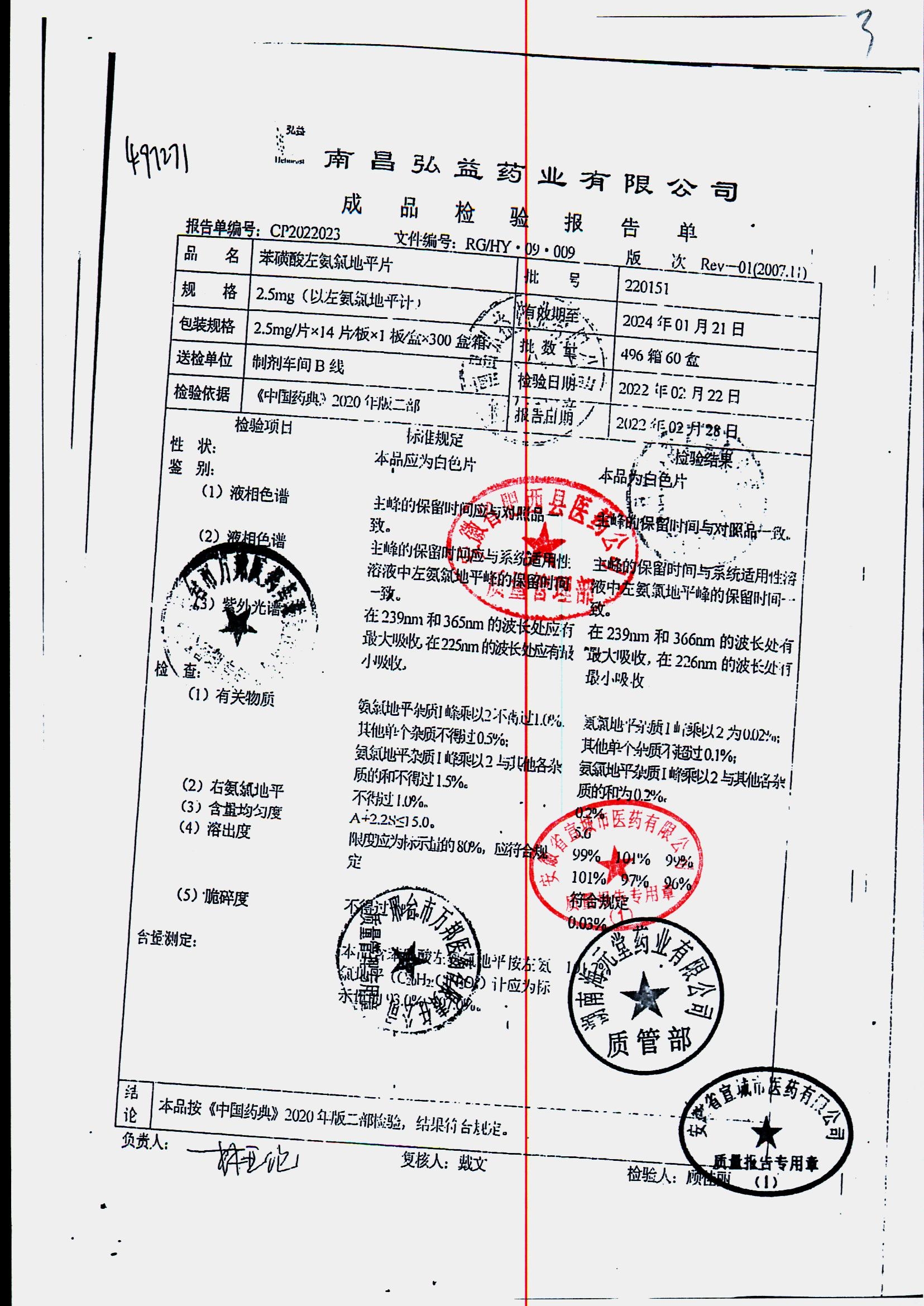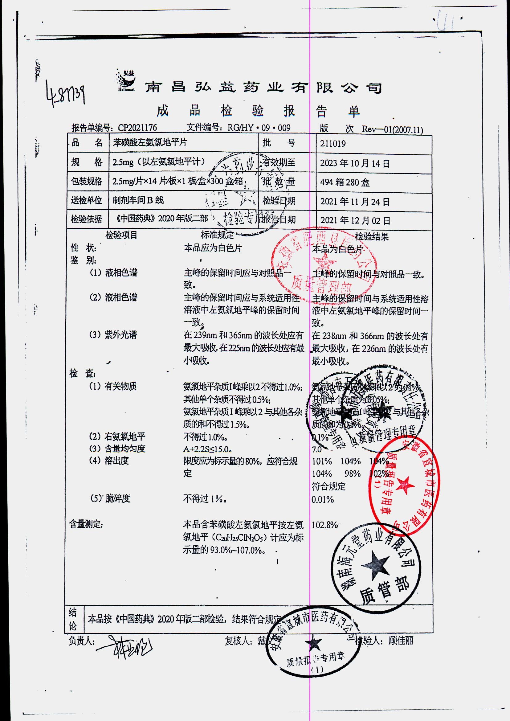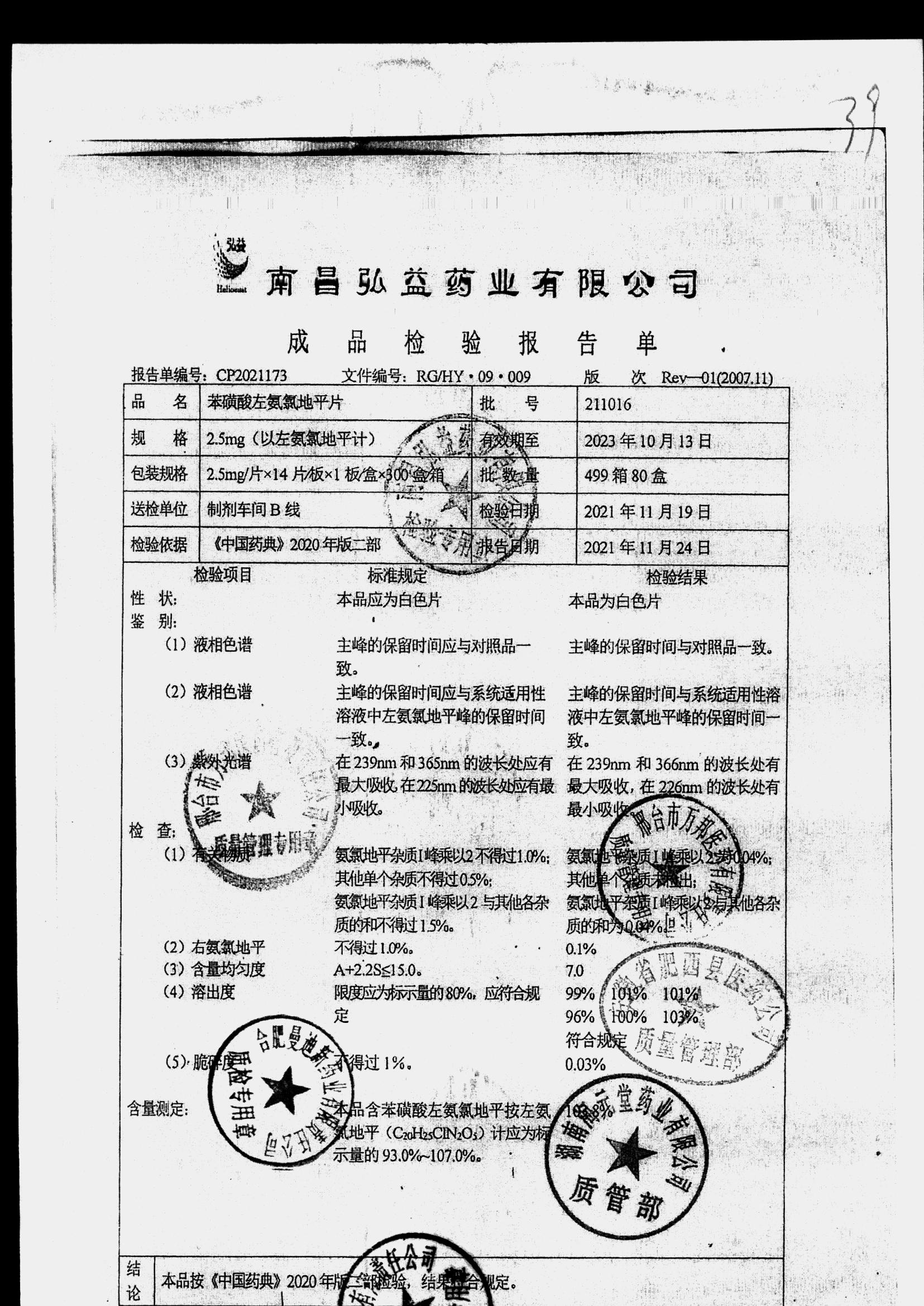 苯磺酸左氨氯地平片 | 2.5mg*14片 | 211019 | 查看详情 |