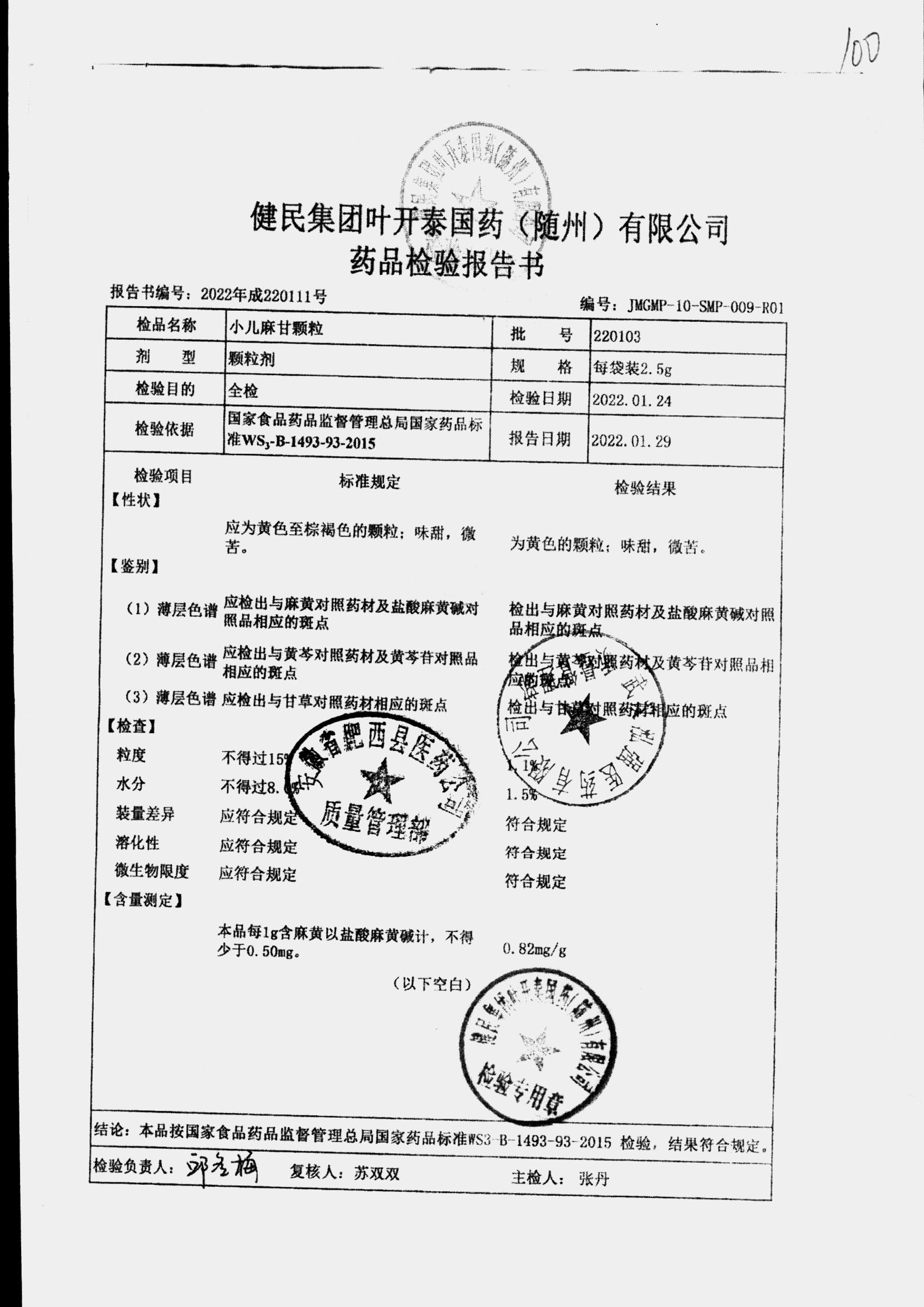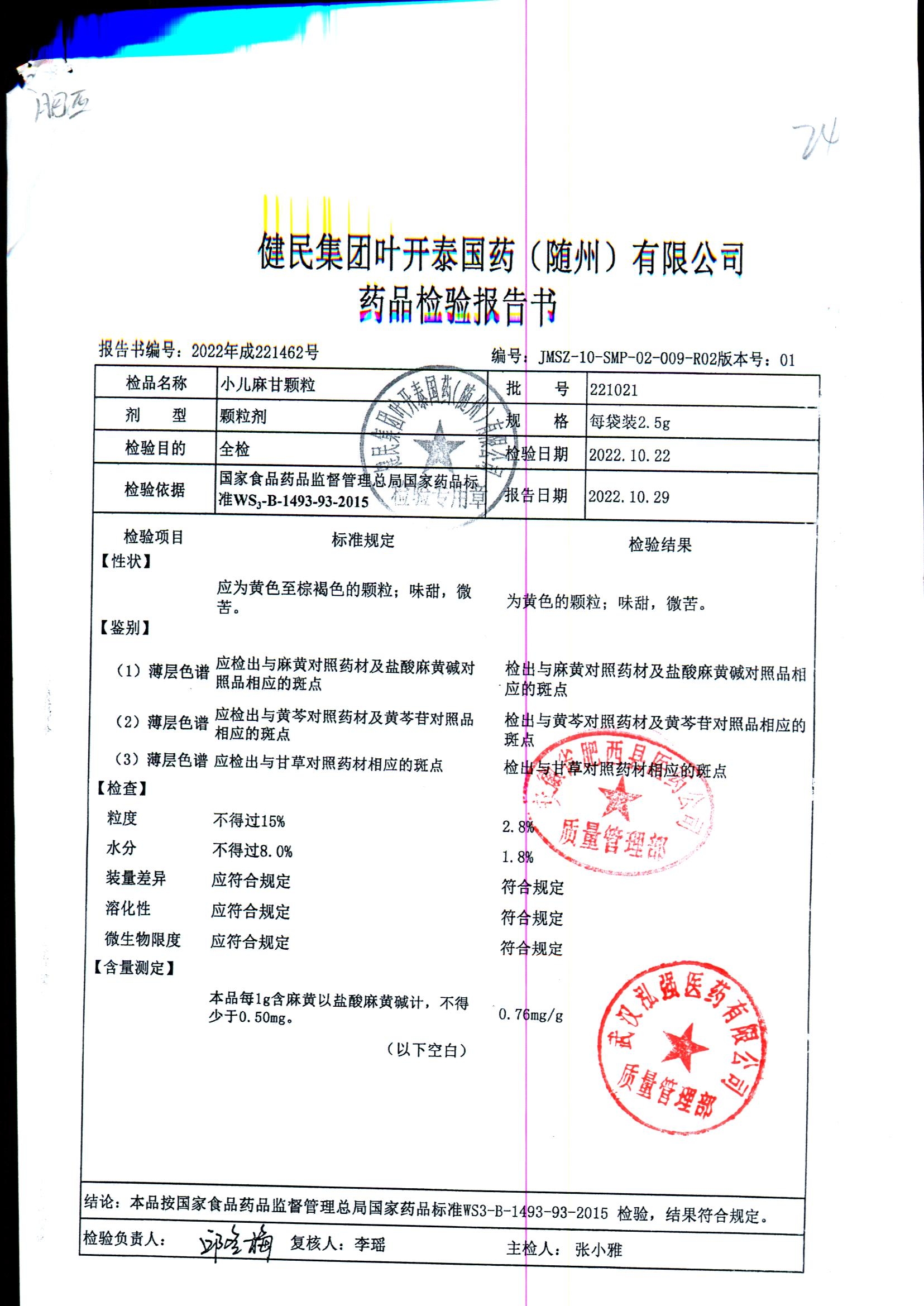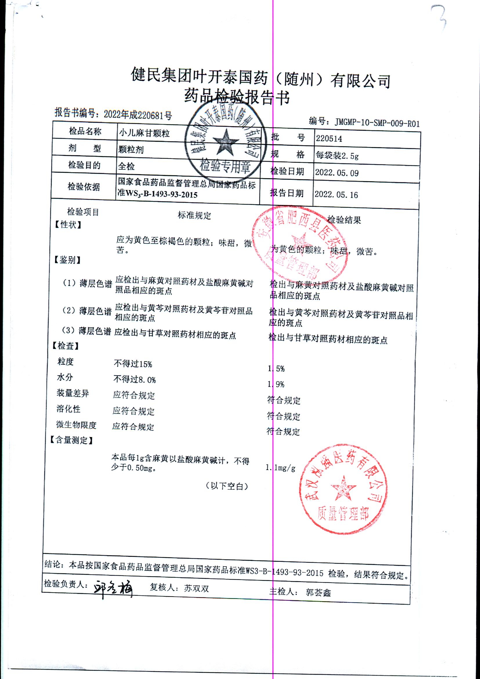 小儿麻甘颗粒 | 2.5g | 220514 | 查看详情 |