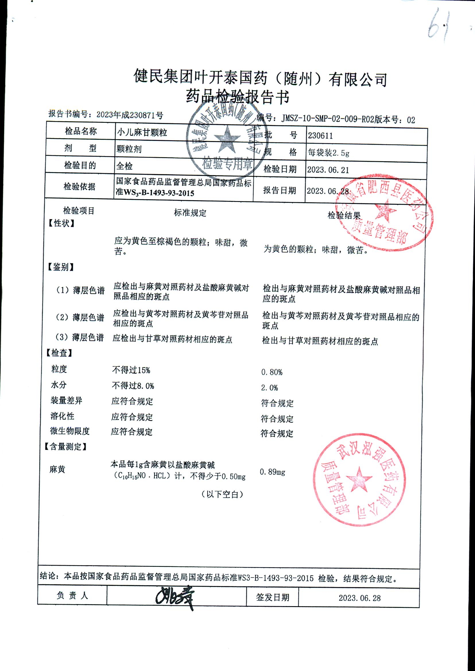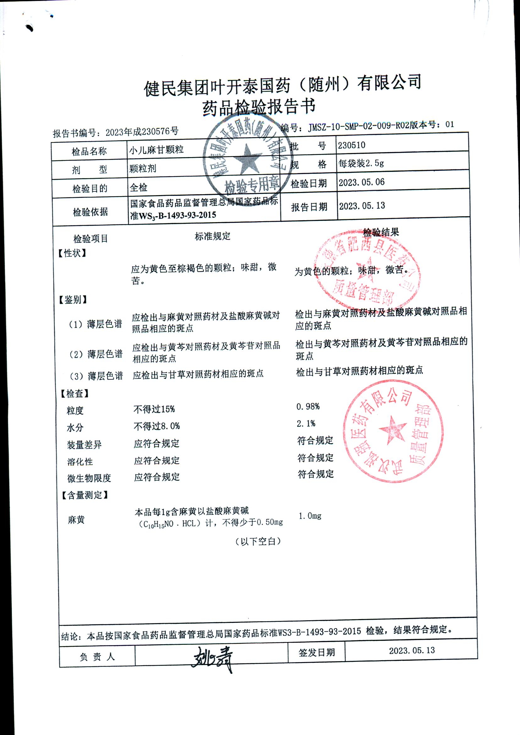 小儿麻甘颗粒 | 2.5g | 230611 | 查看详情 |