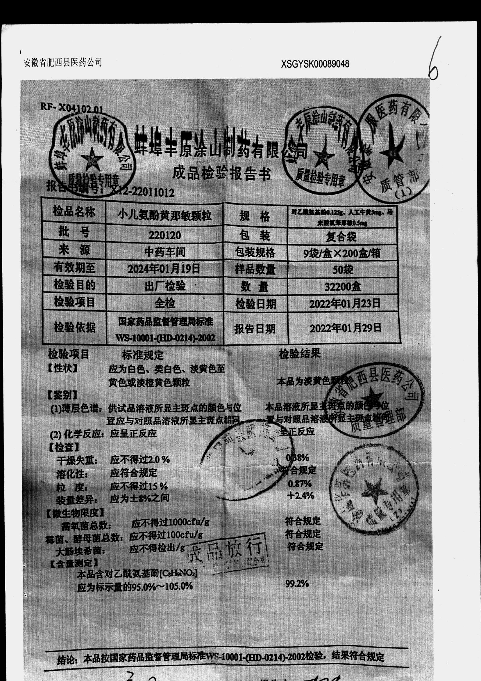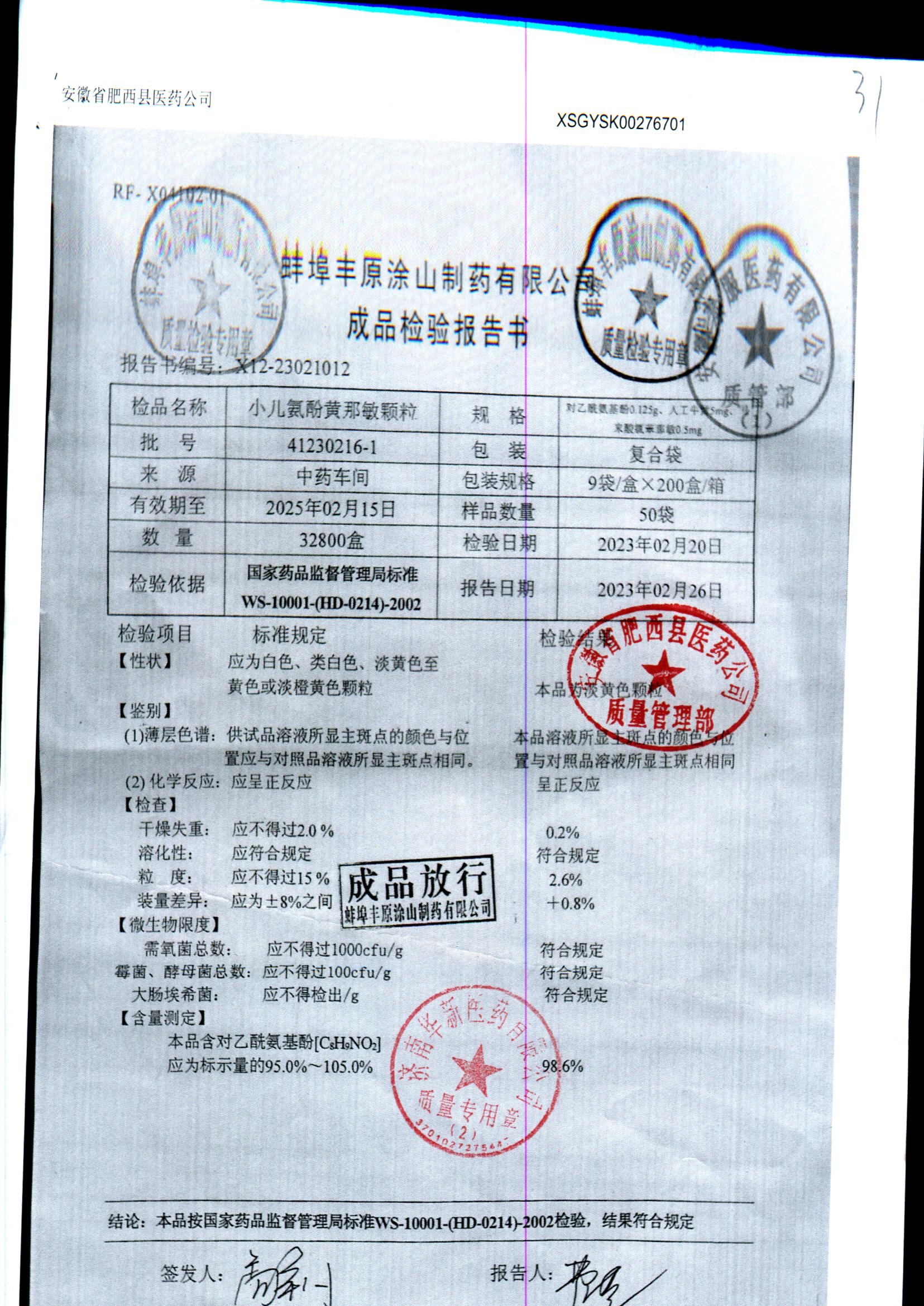 药检报告