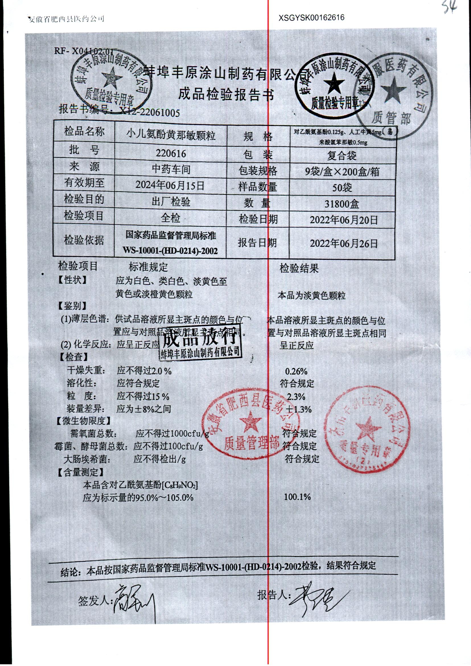 小儿氨酚黄那敏颗粒