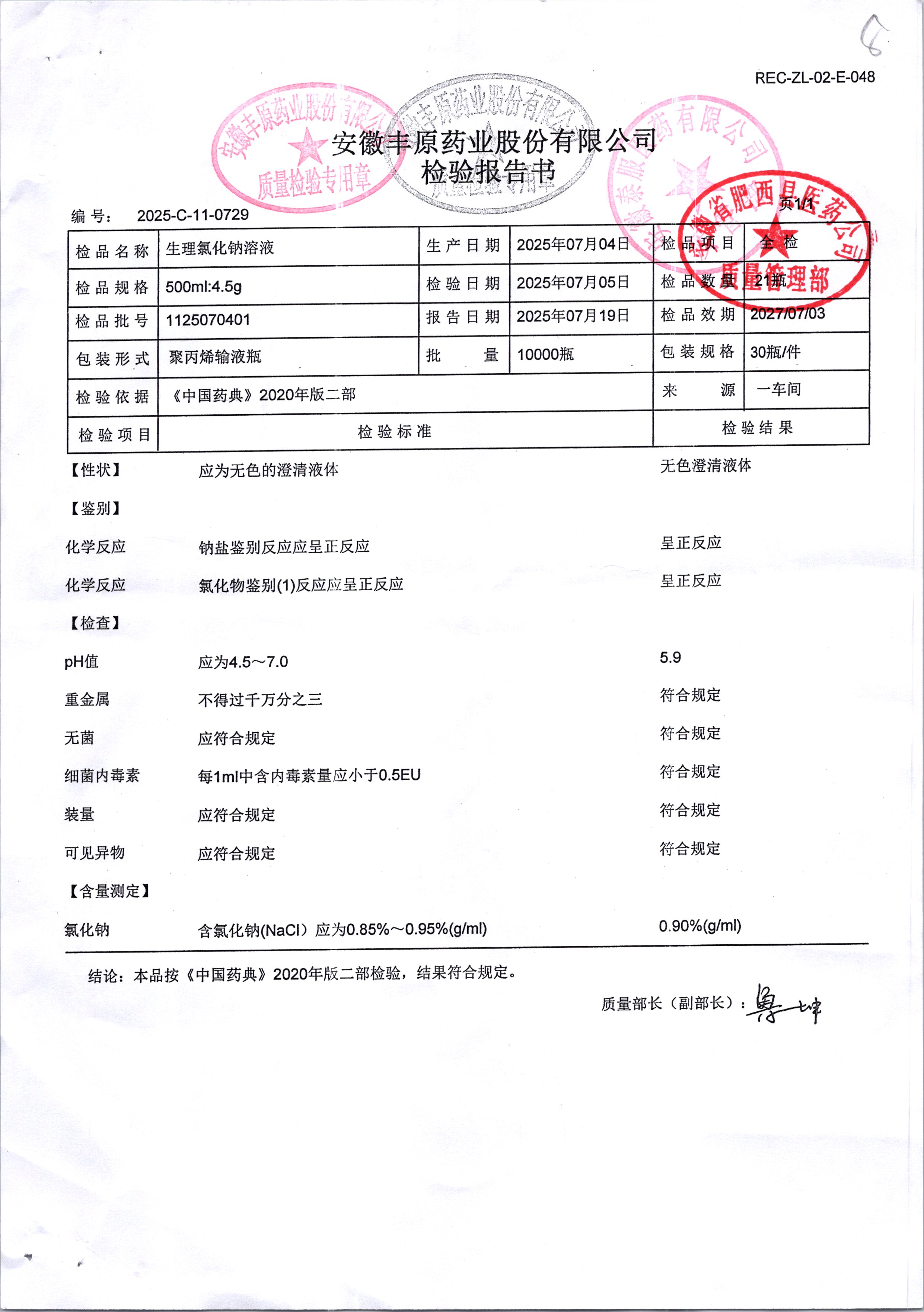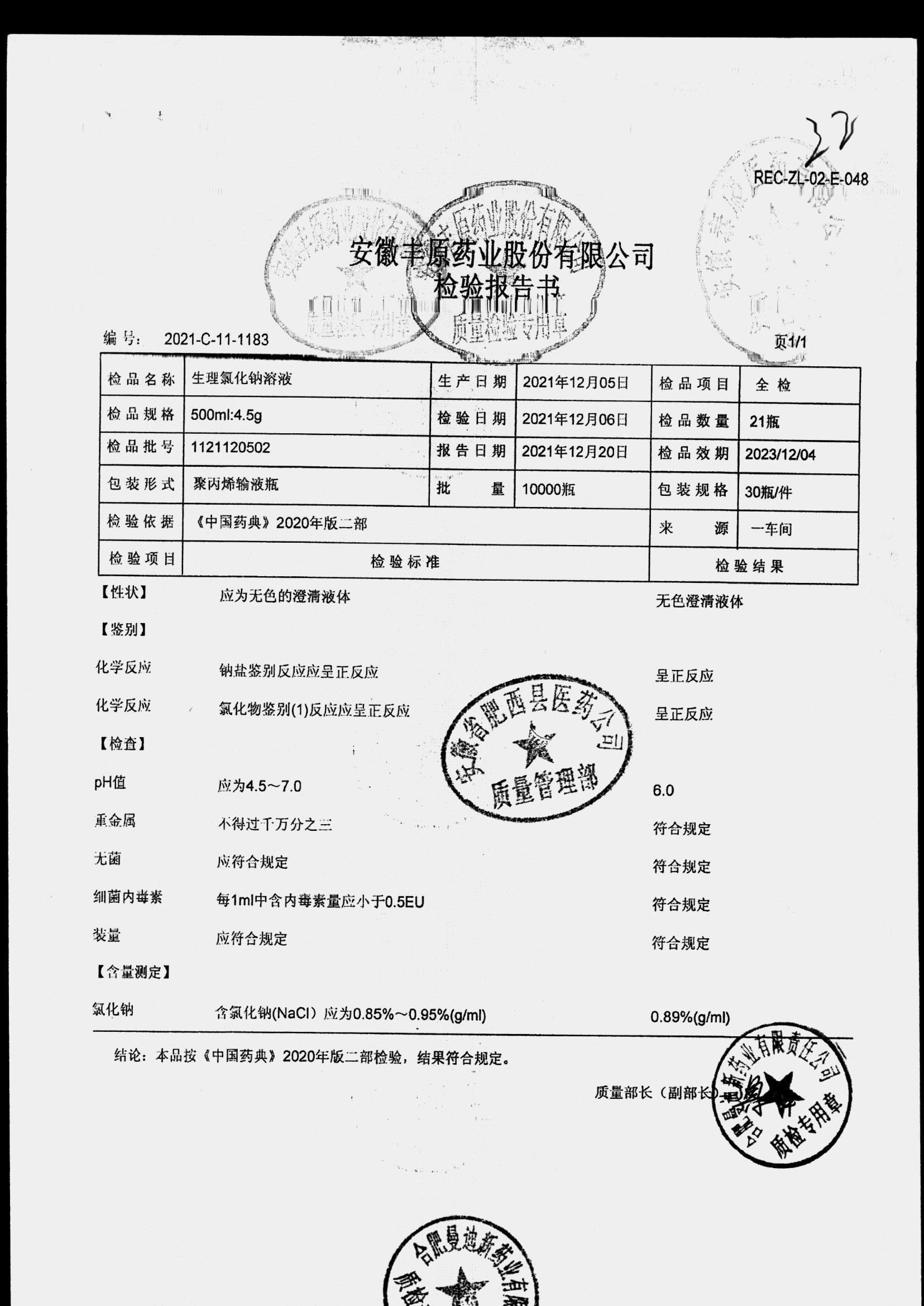 生理氯化钠溶液 | 500ml:4.5g | 1125021002 | 查看详情 |