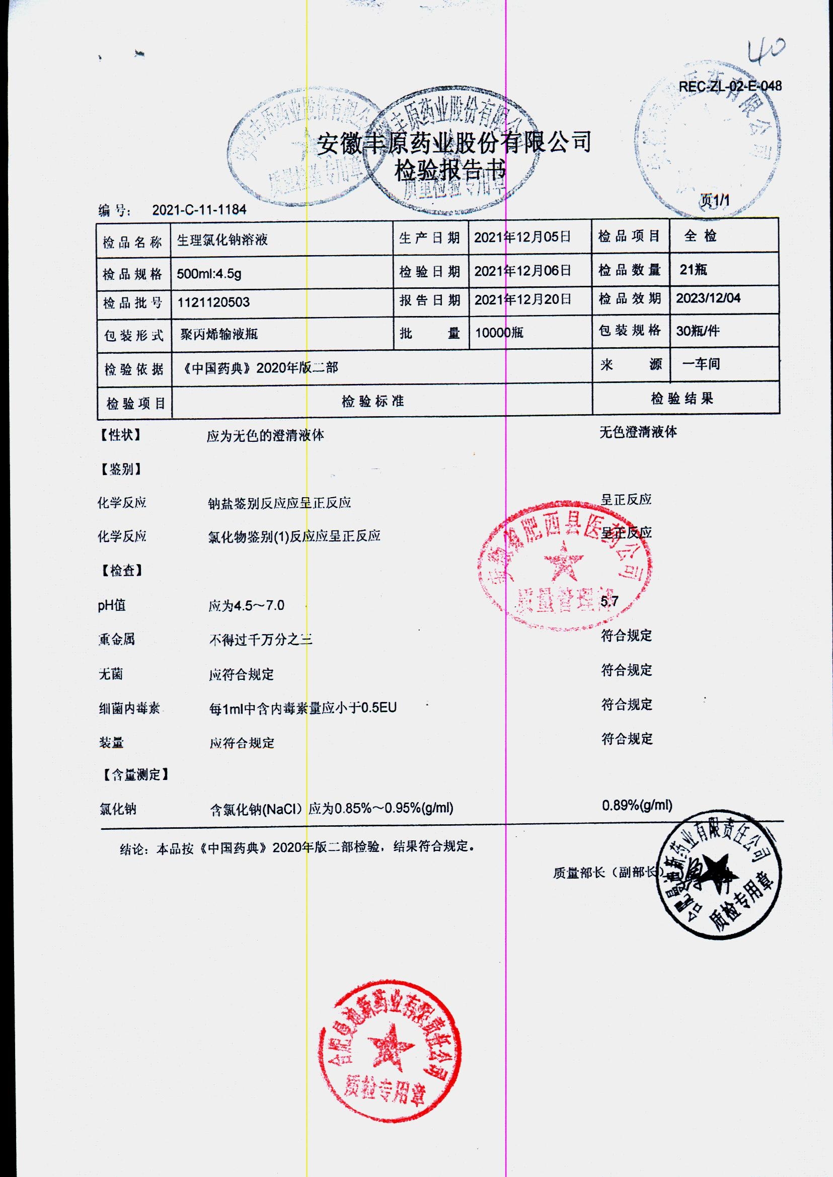生理氯化钠溶液 | 500ml:4.5g | 1121120503 | 查看详情 |
