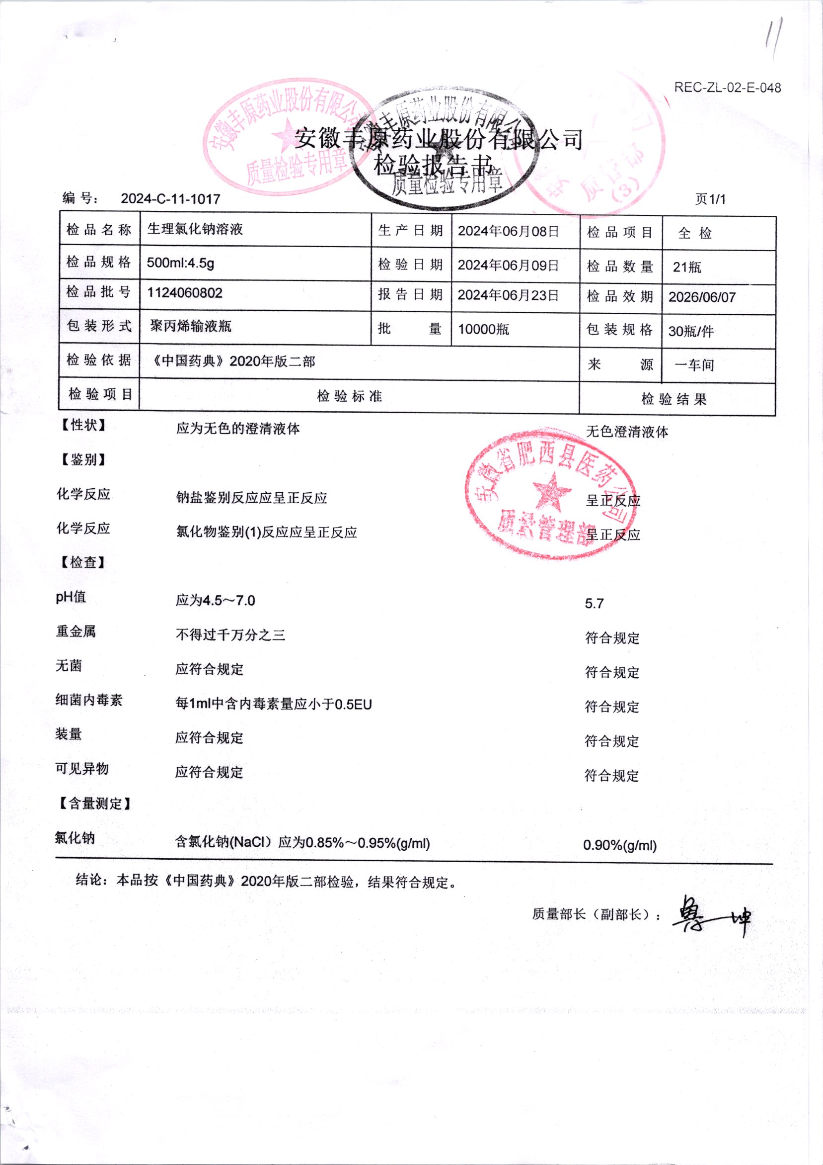 生理氯化钠溶液 | 500ml:4.5g | 1124040508 | 查看详情 |