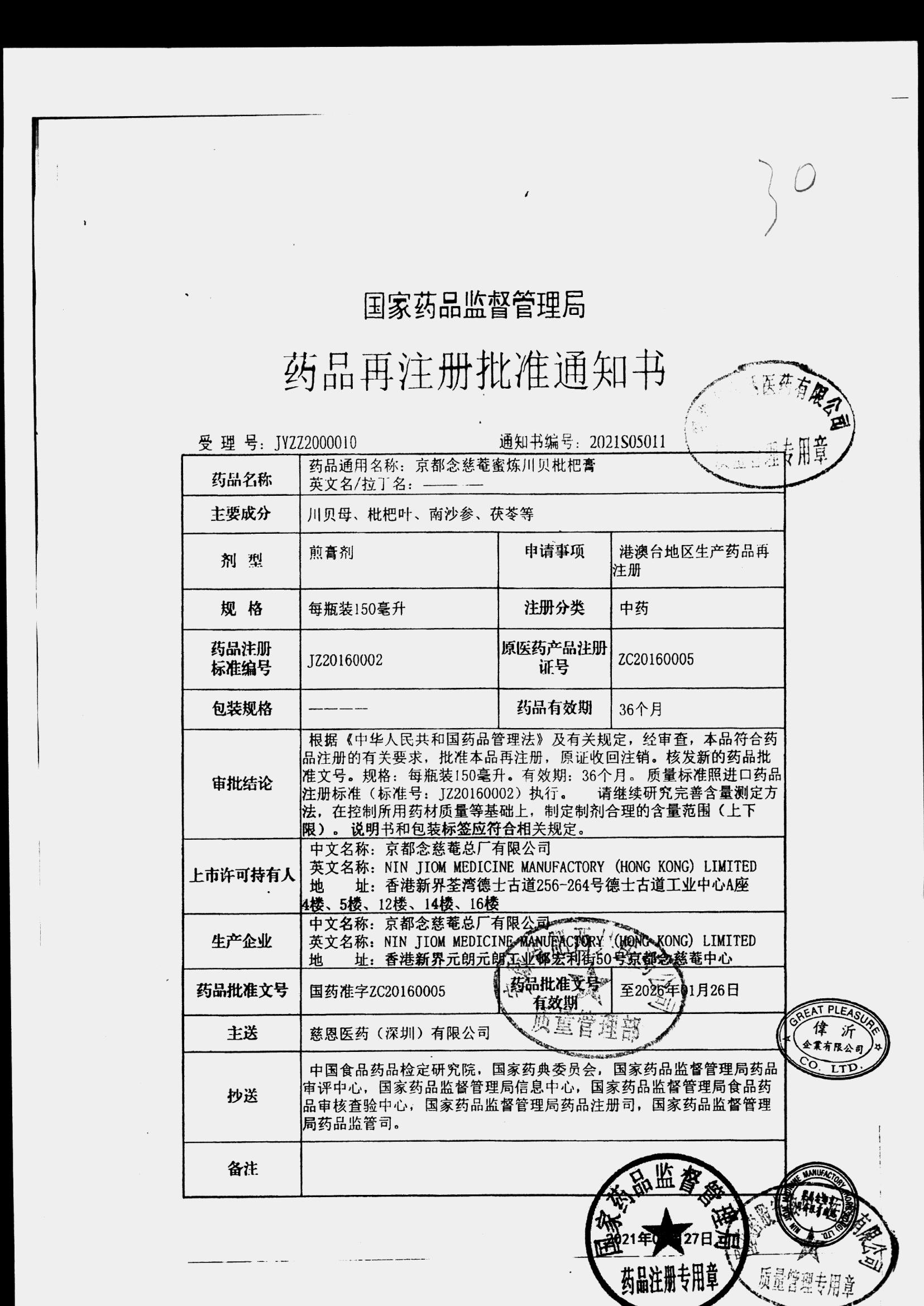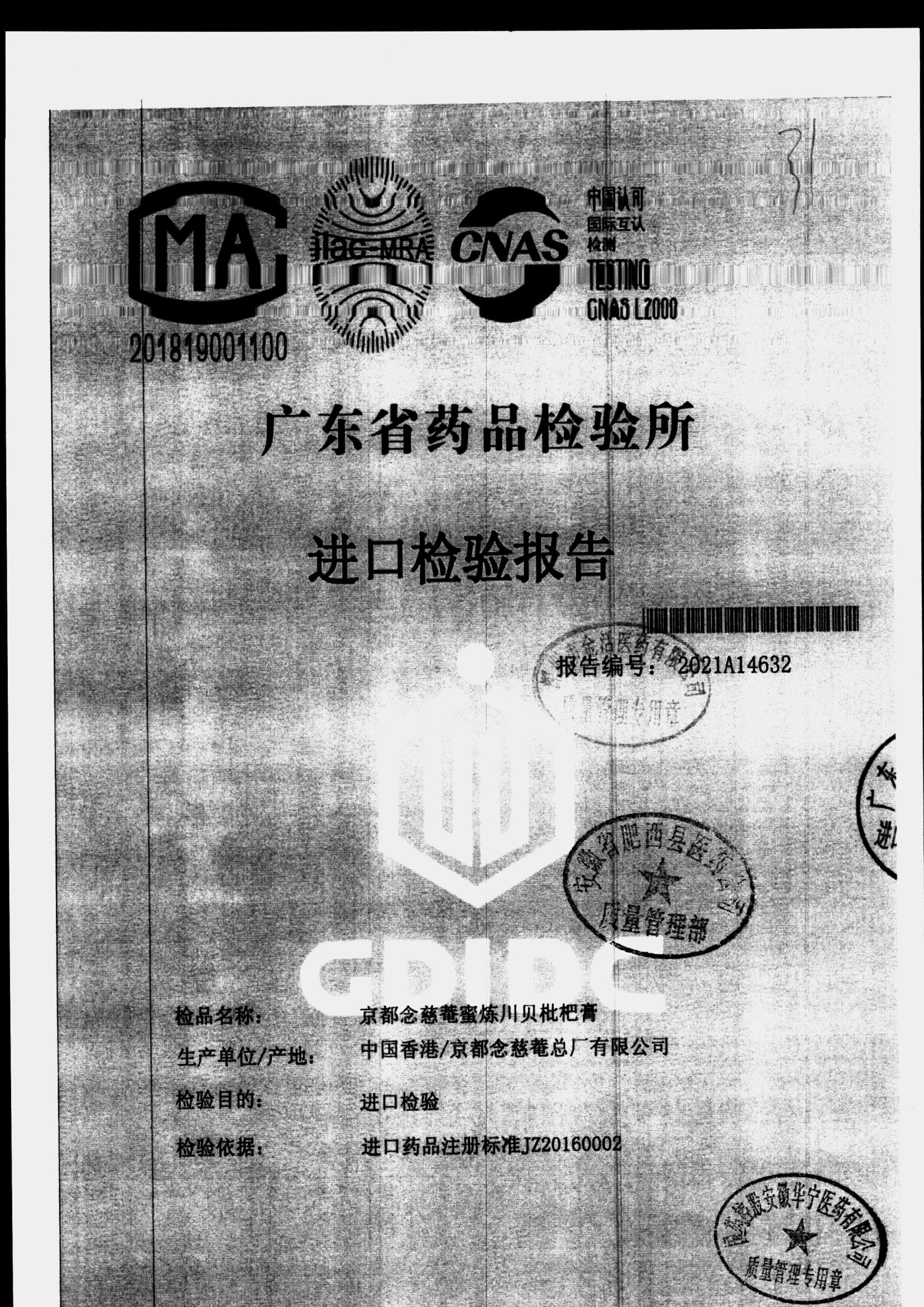 京都念慈庵蜜炼川贝枇杷膏 | 72瓶 | Y22111017 | 查看详情 |