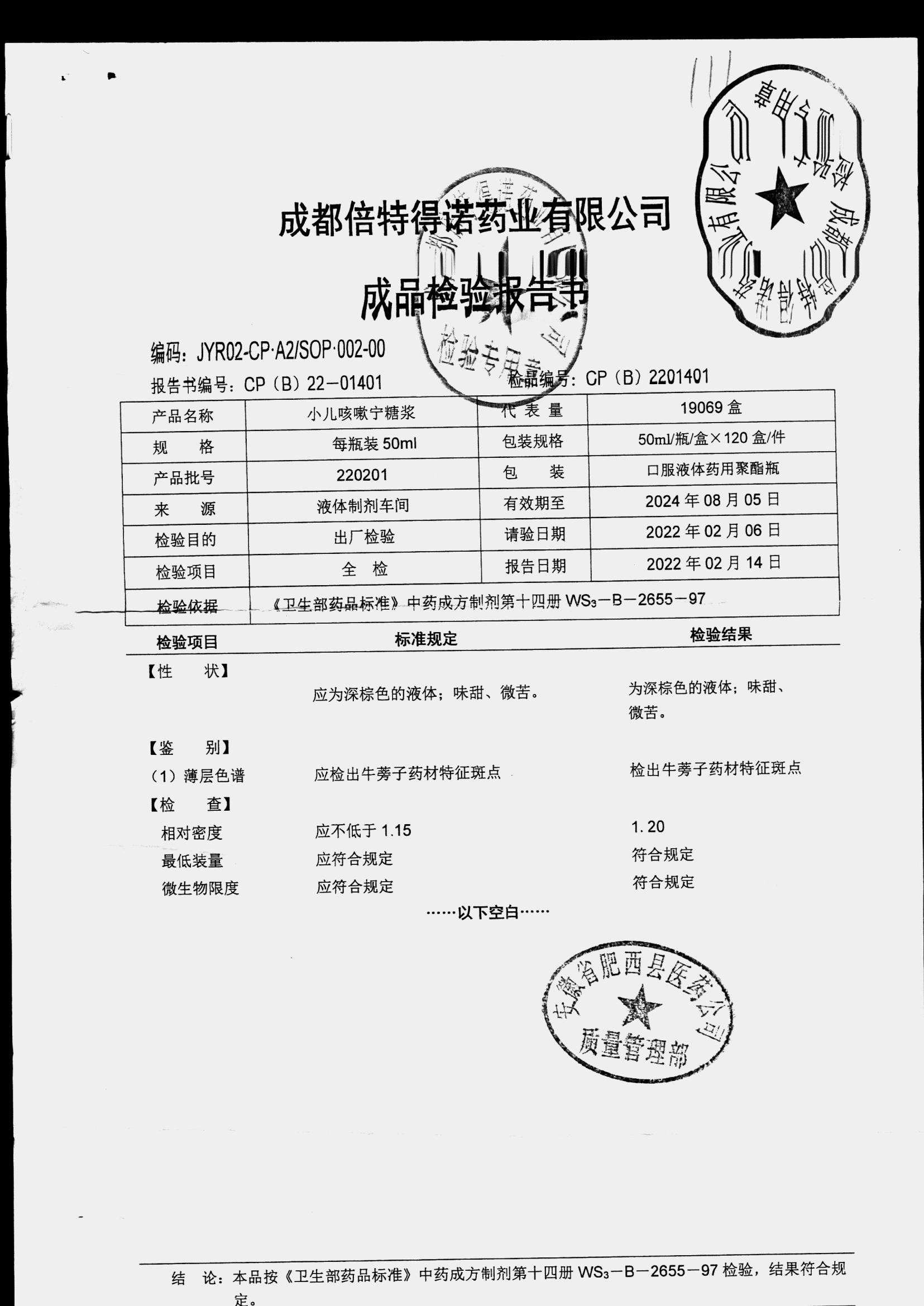 药检报告