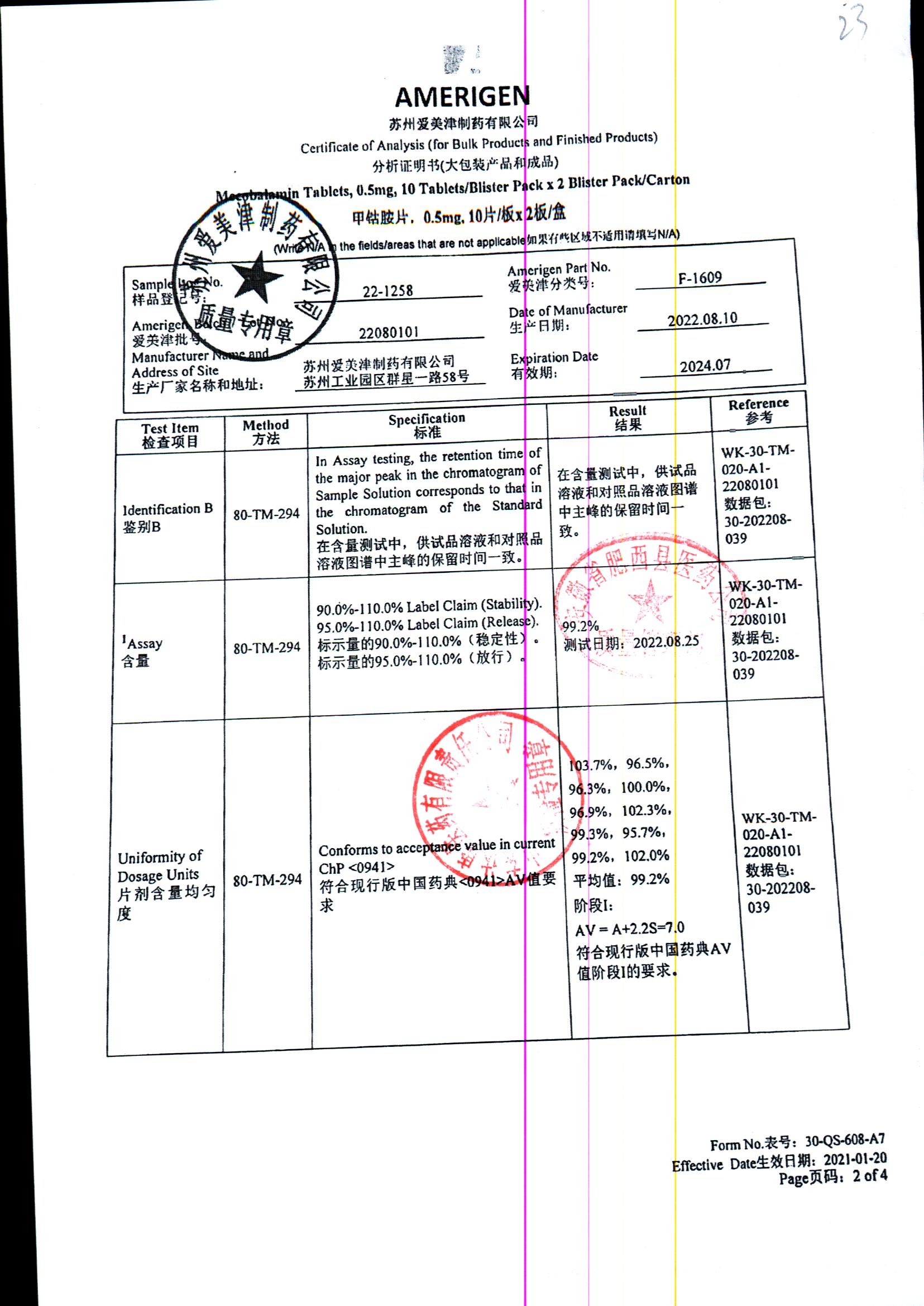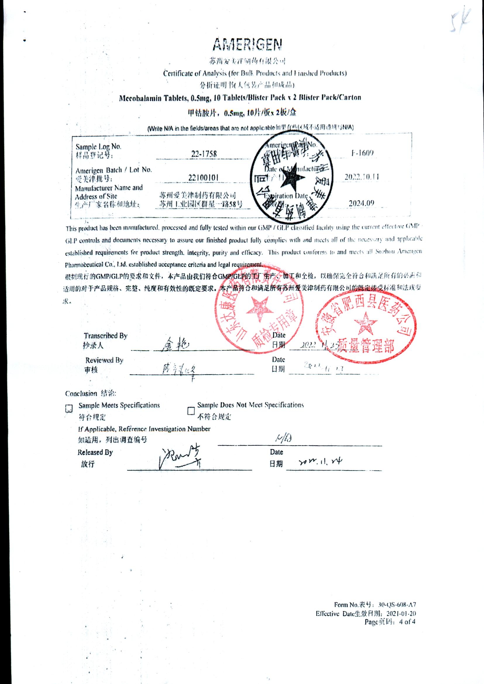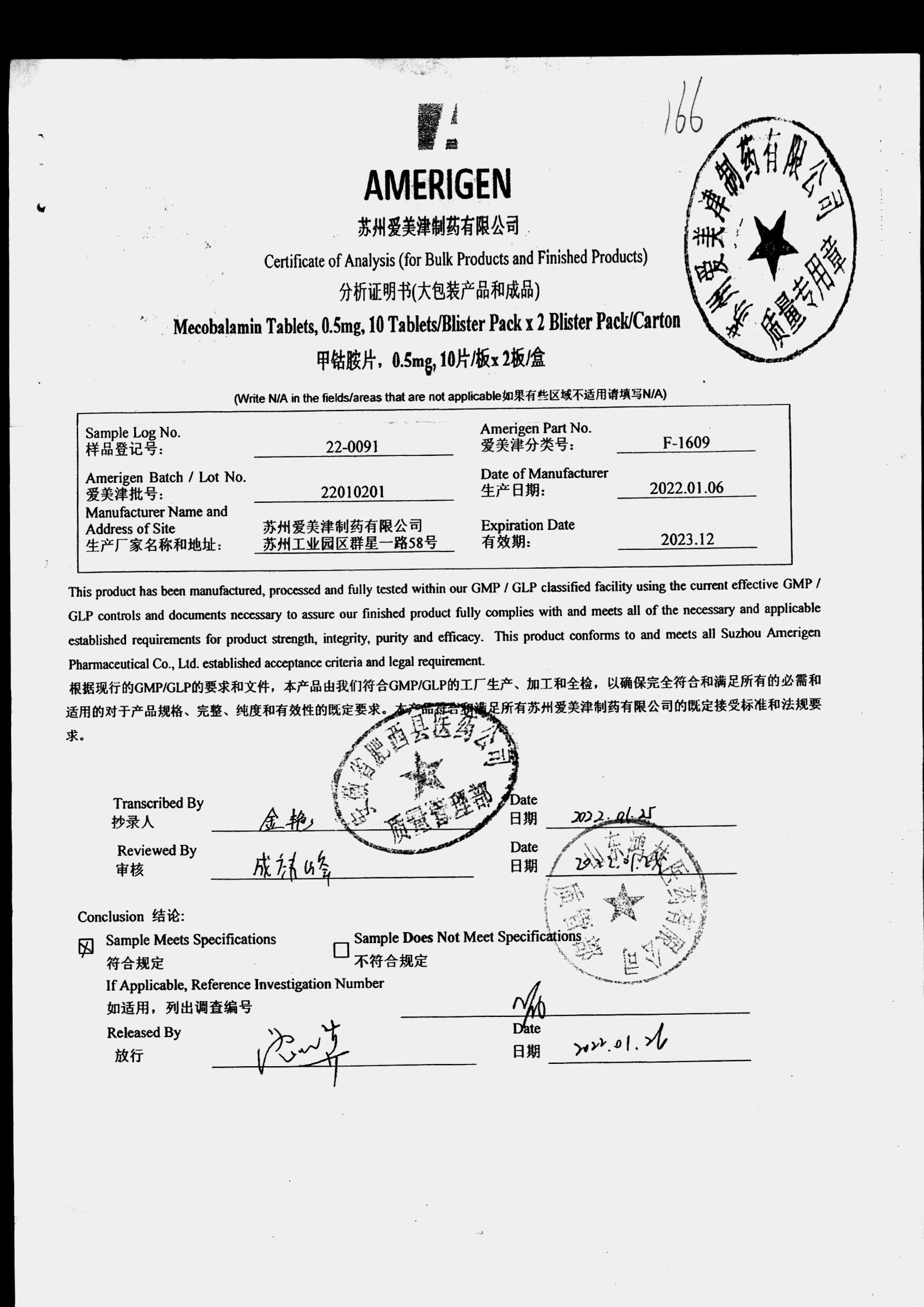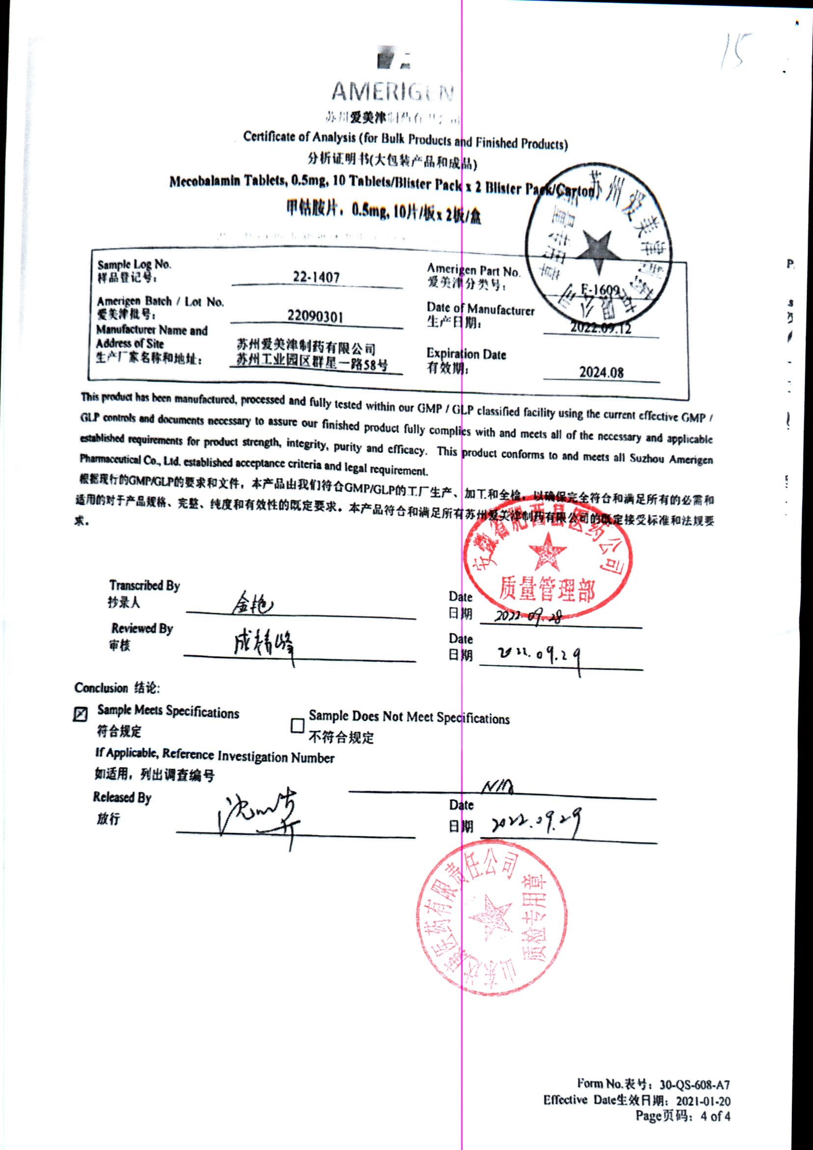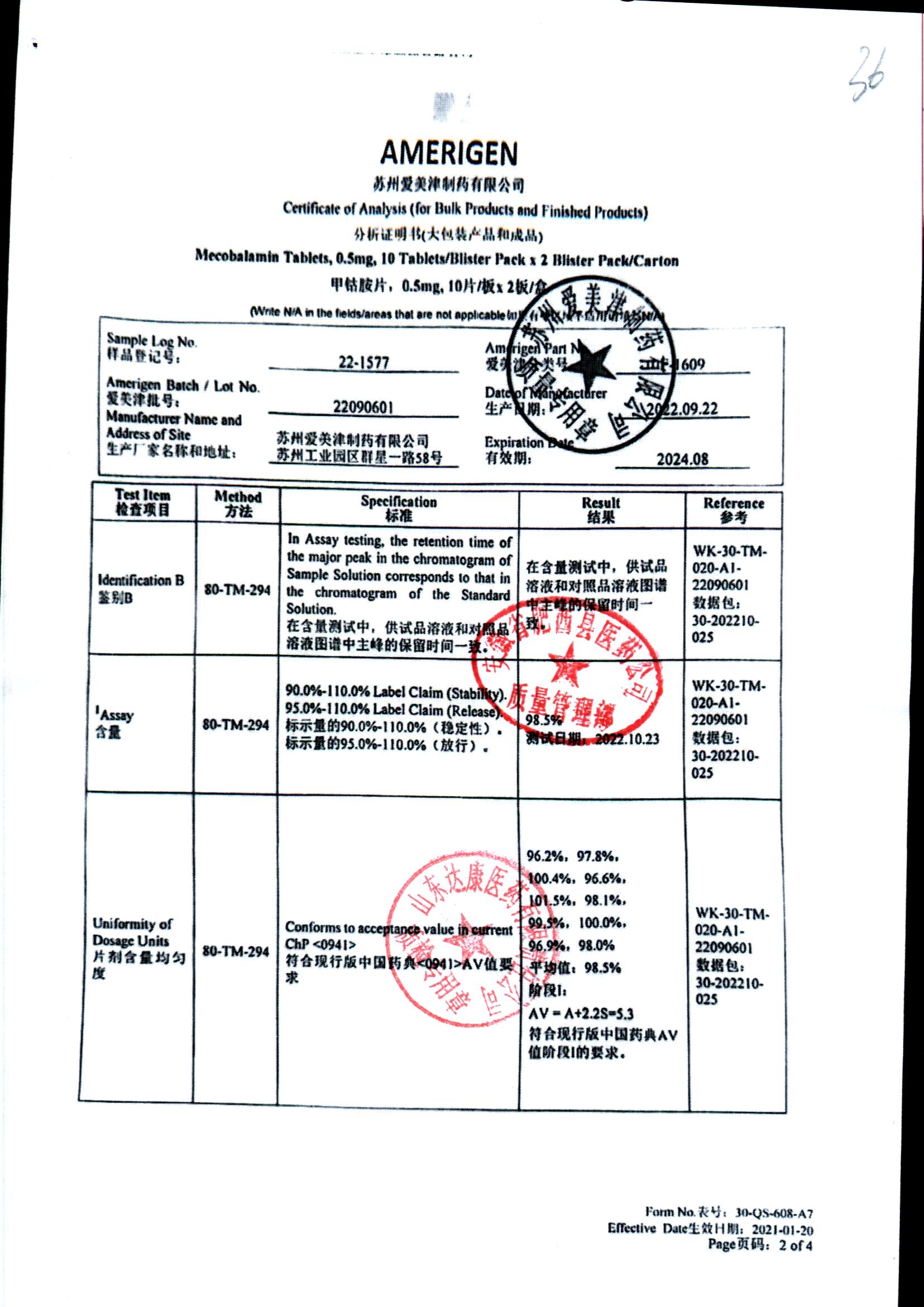 甲钴胺片 | 20片 | 22090601/2 | 查看详情 |