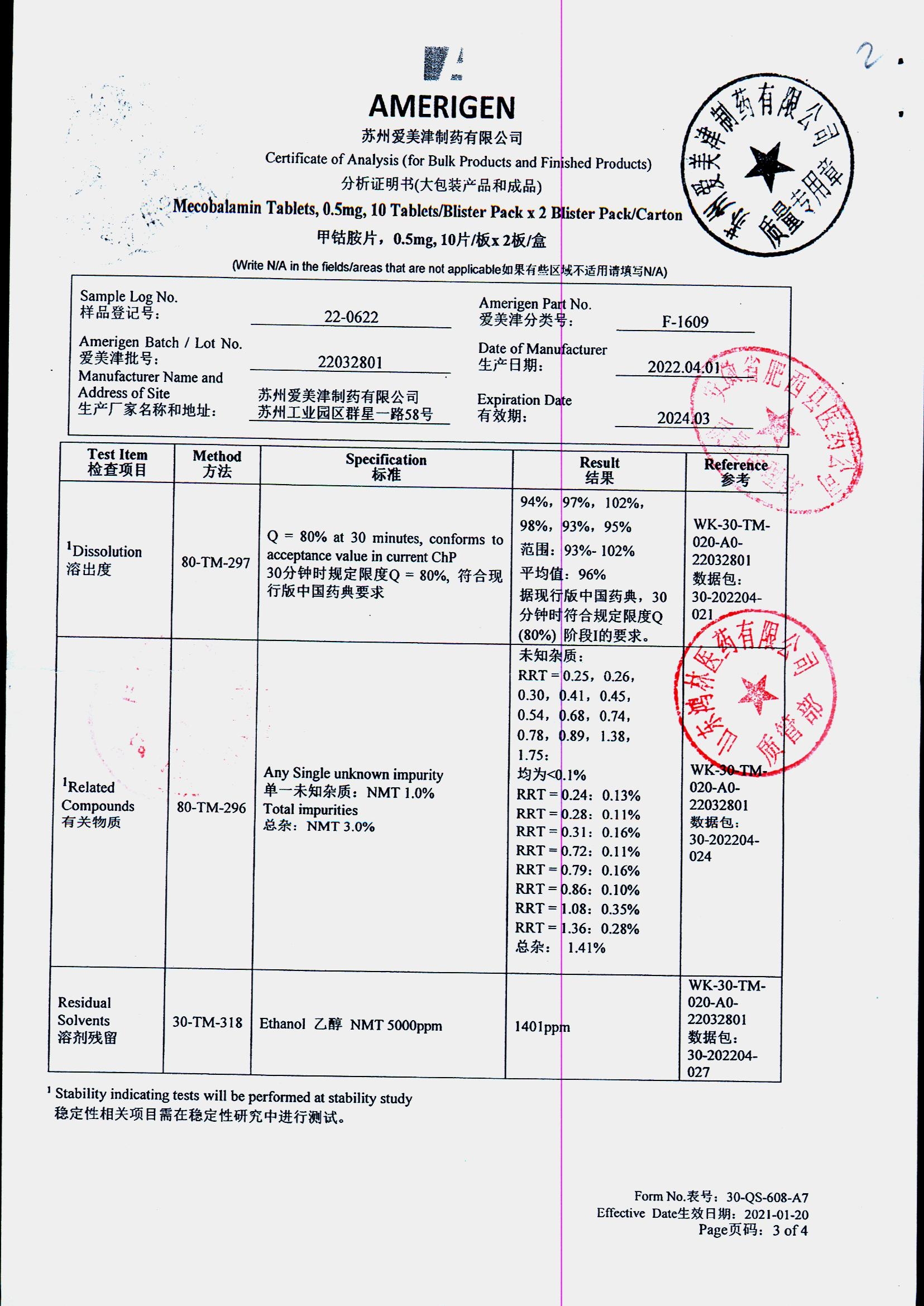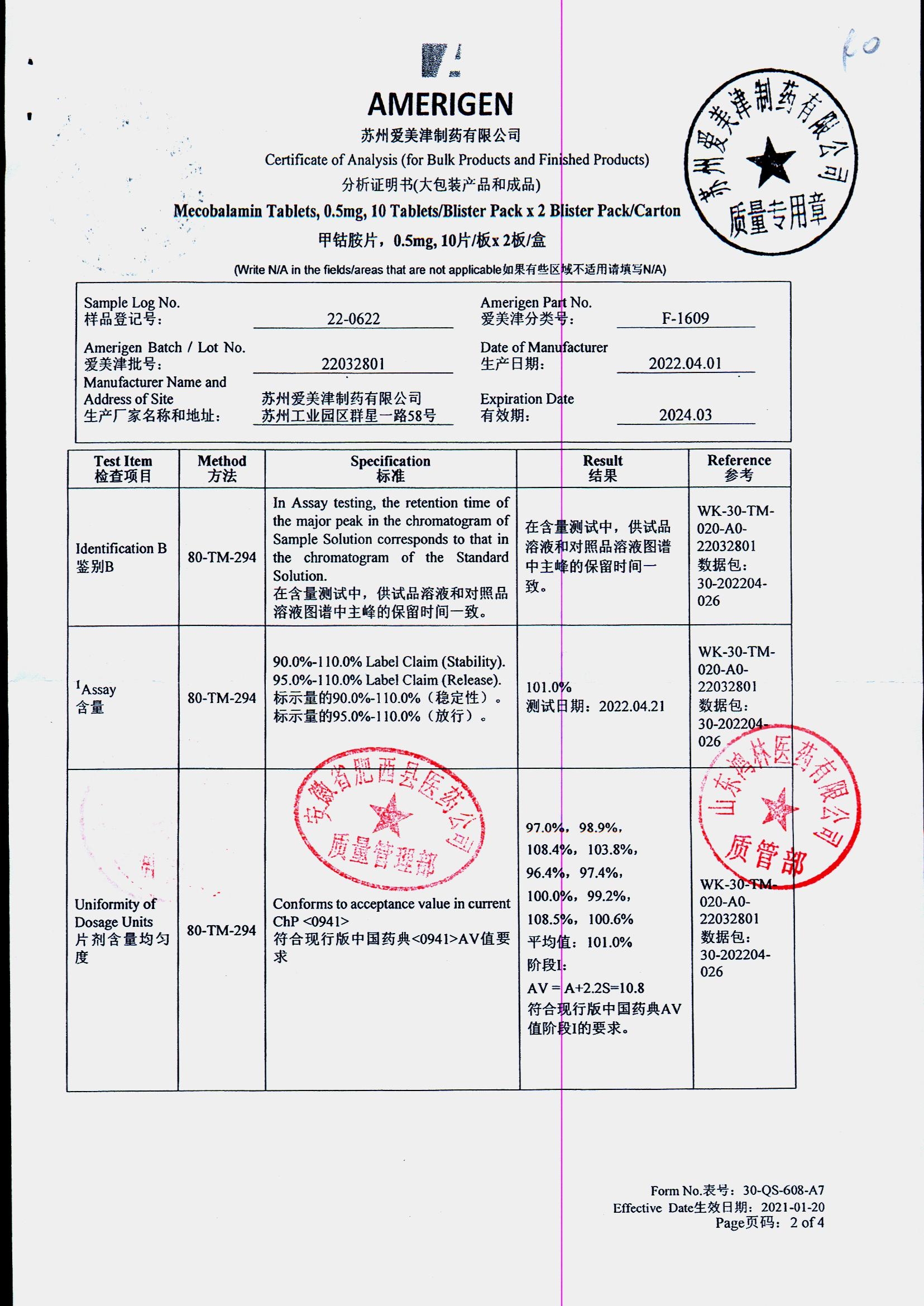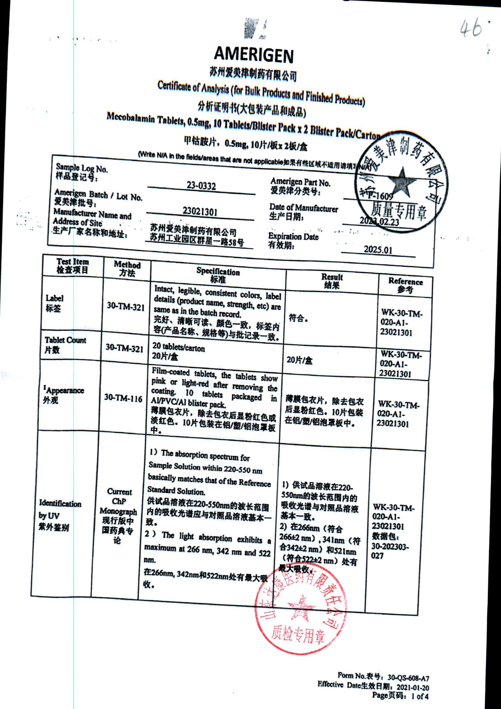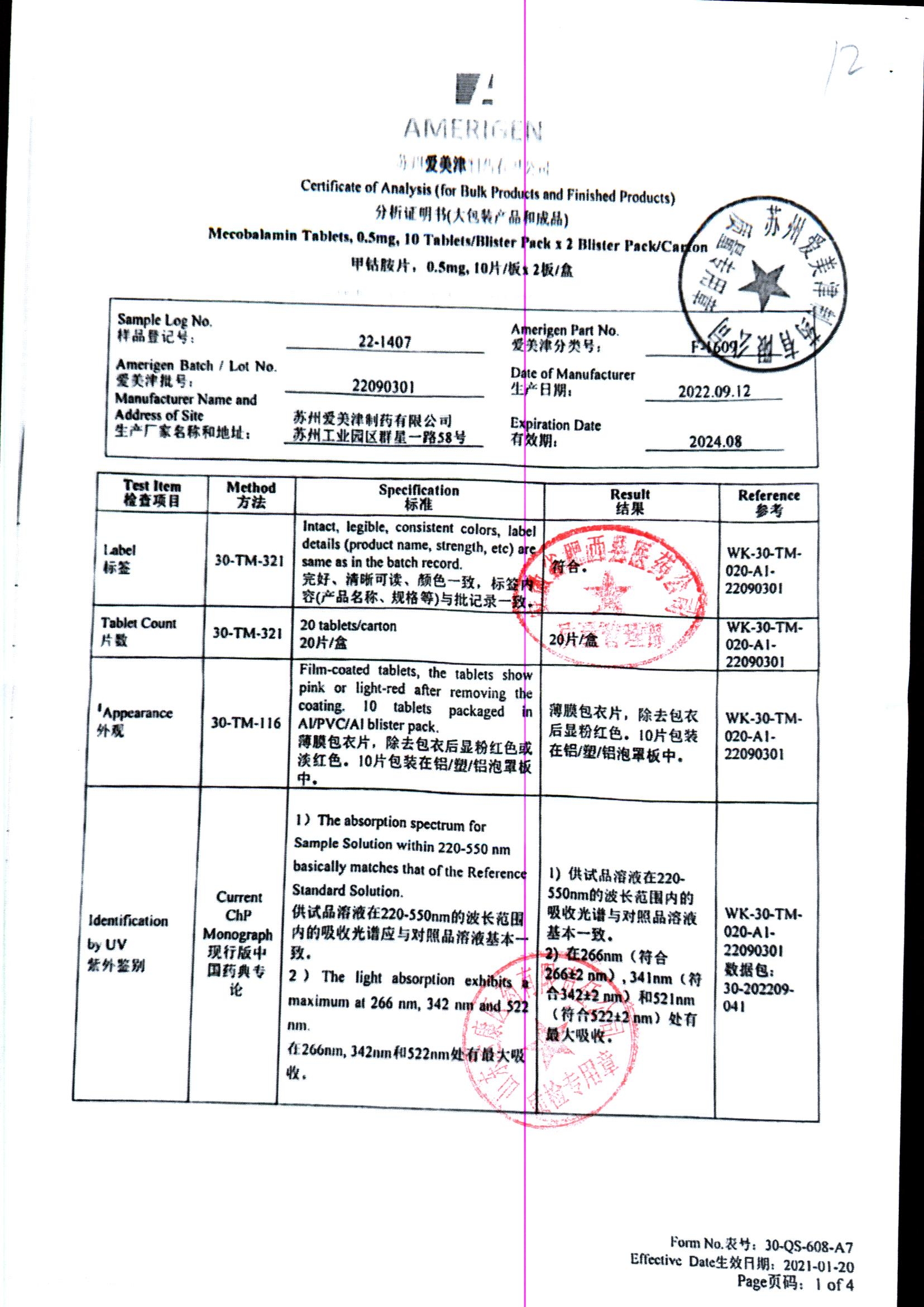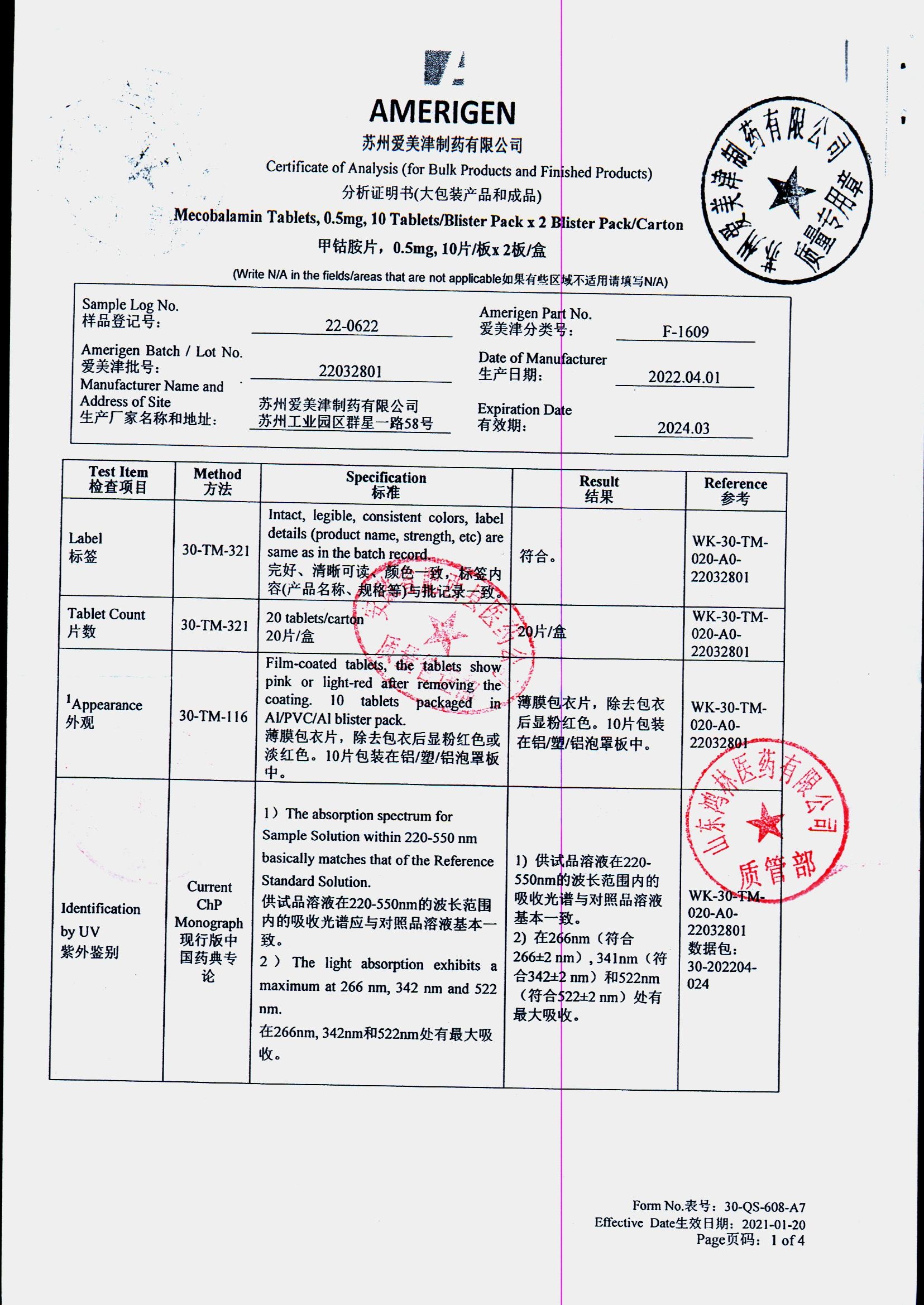 甲钴胺片 | 20片 | 22032801/4 | 查看详情 |