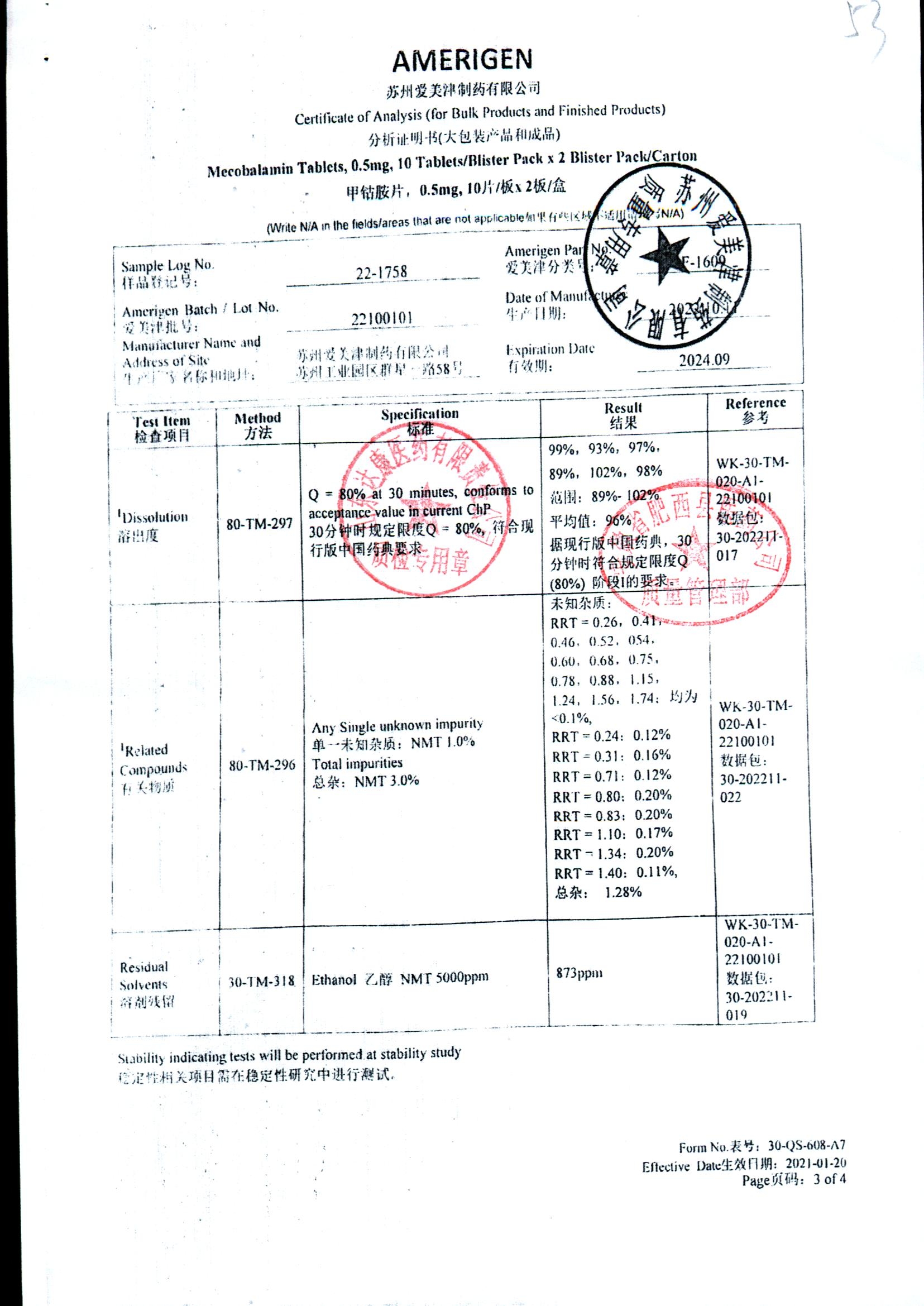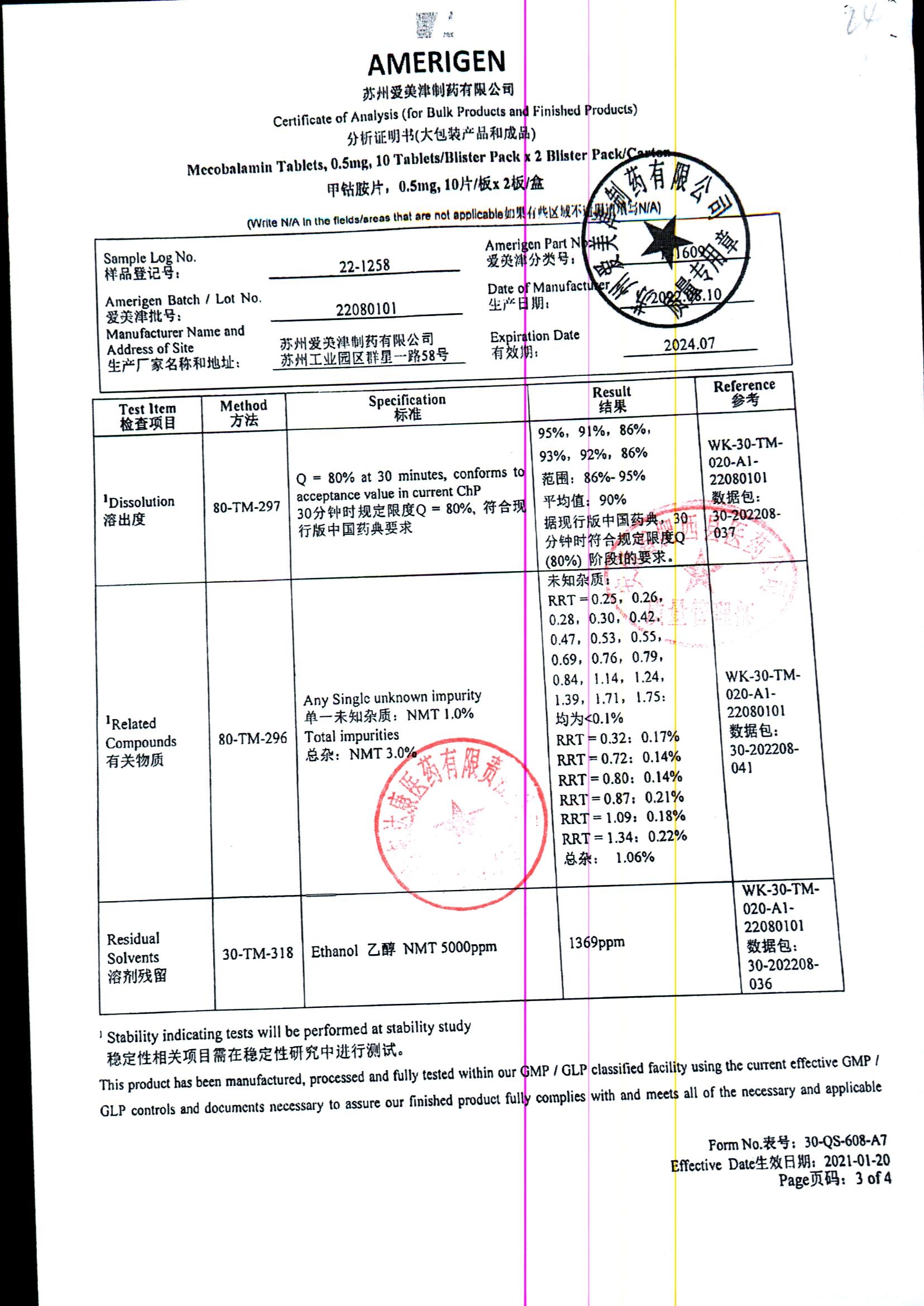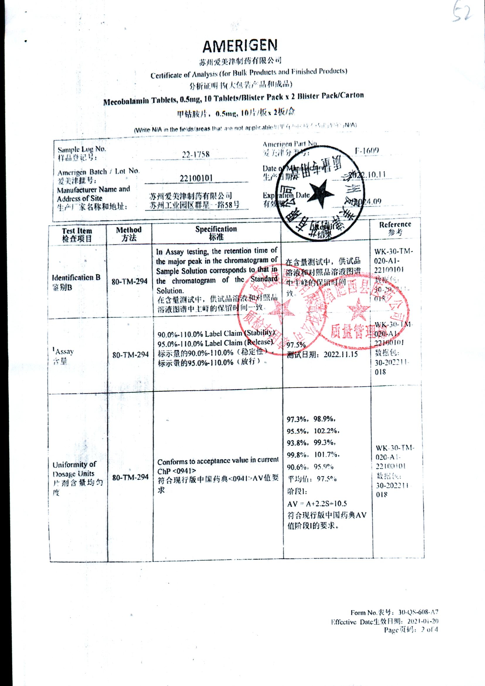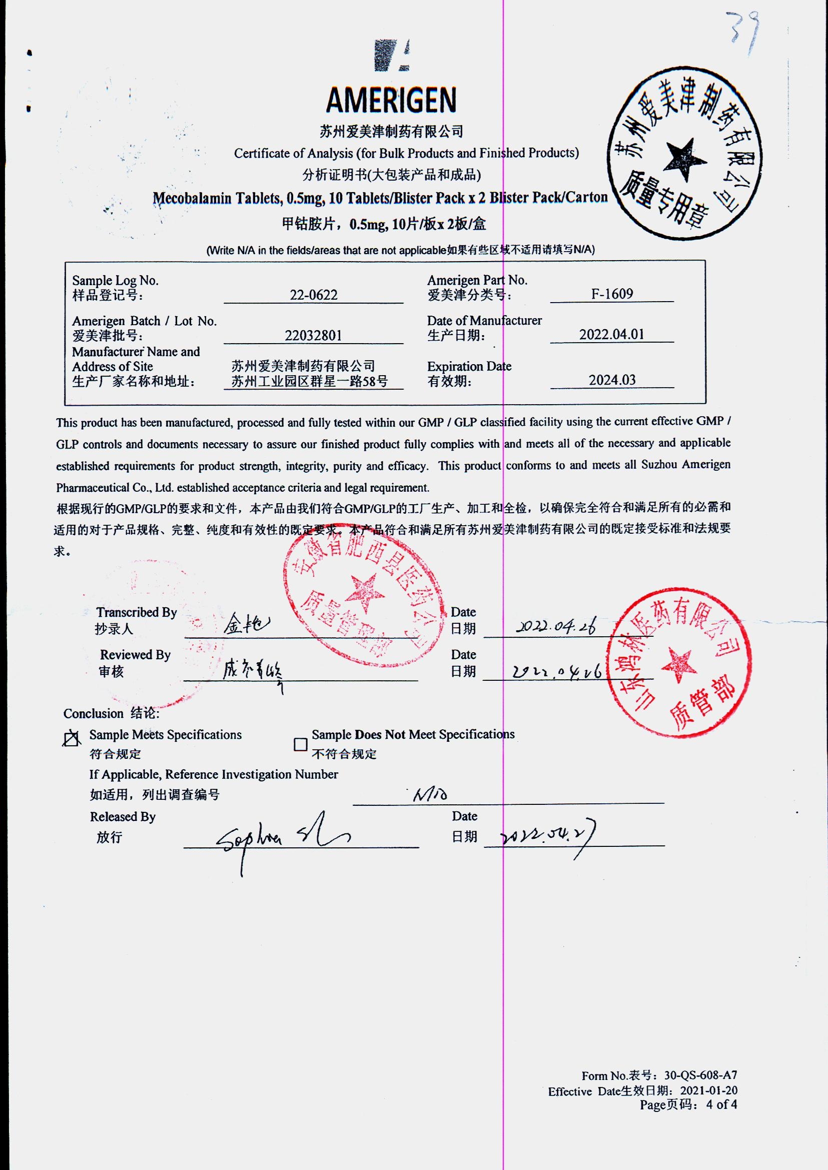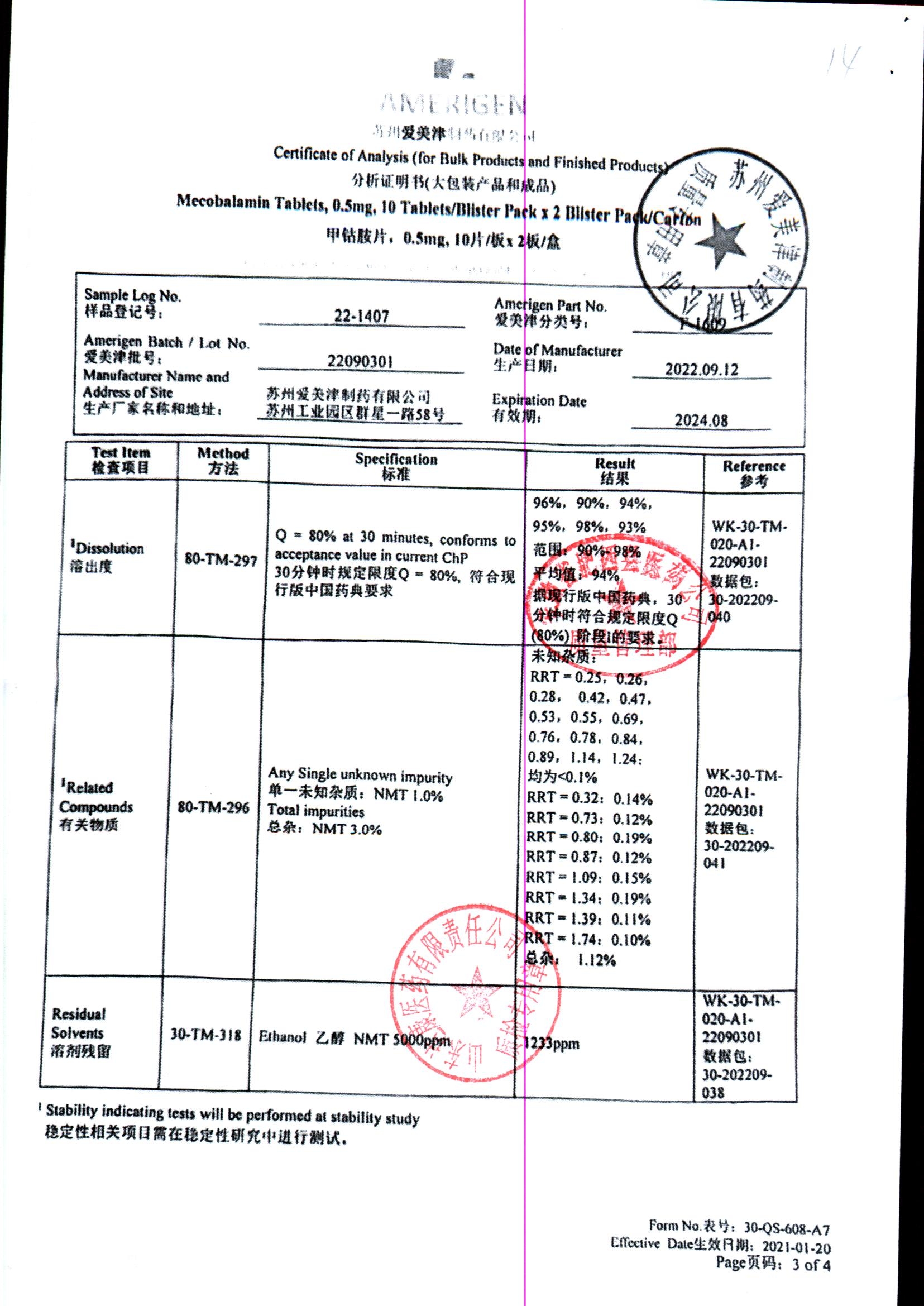 甲钴胺片 | 20片 | 22032801/4 | 查看详情 |