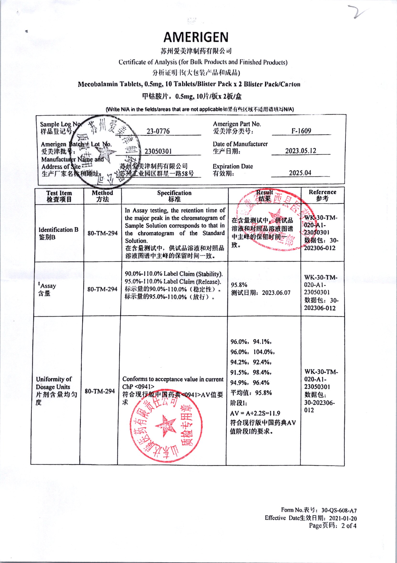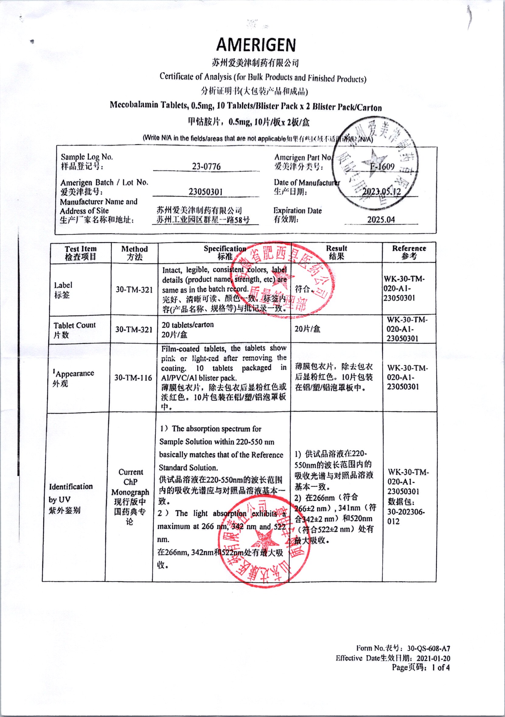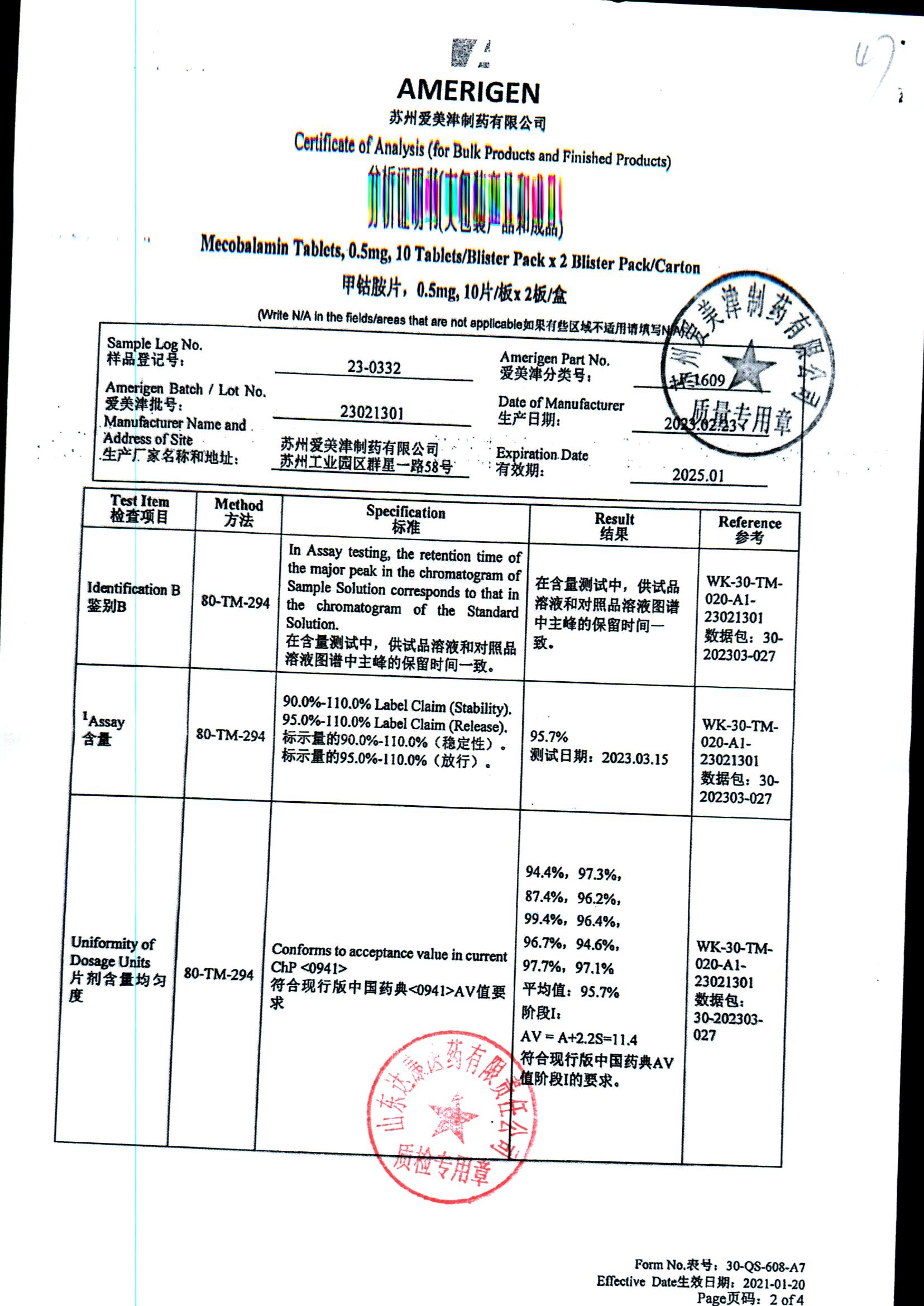 甲钴胺片 | 20片 | 23050301/2 | 查看详情 |