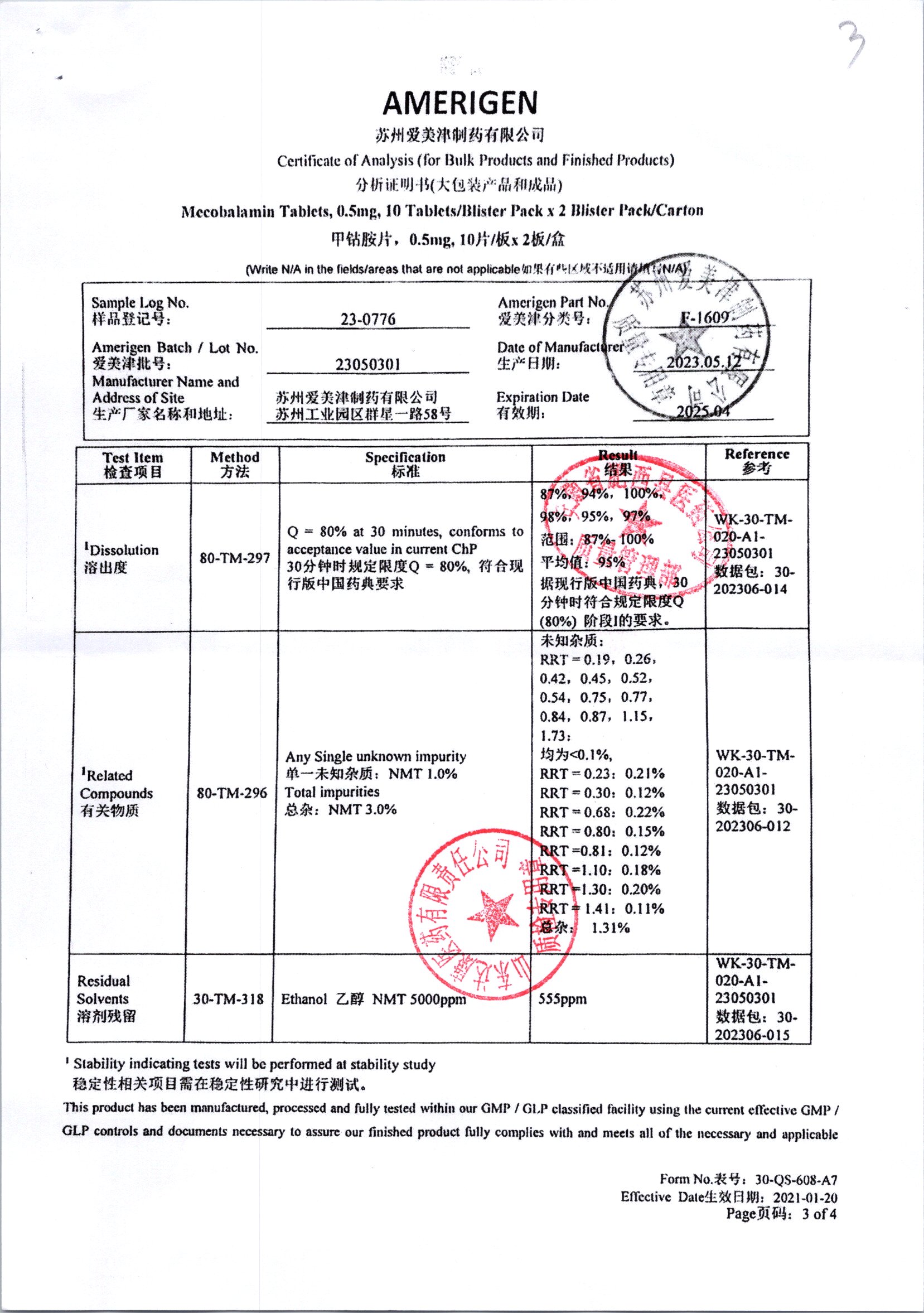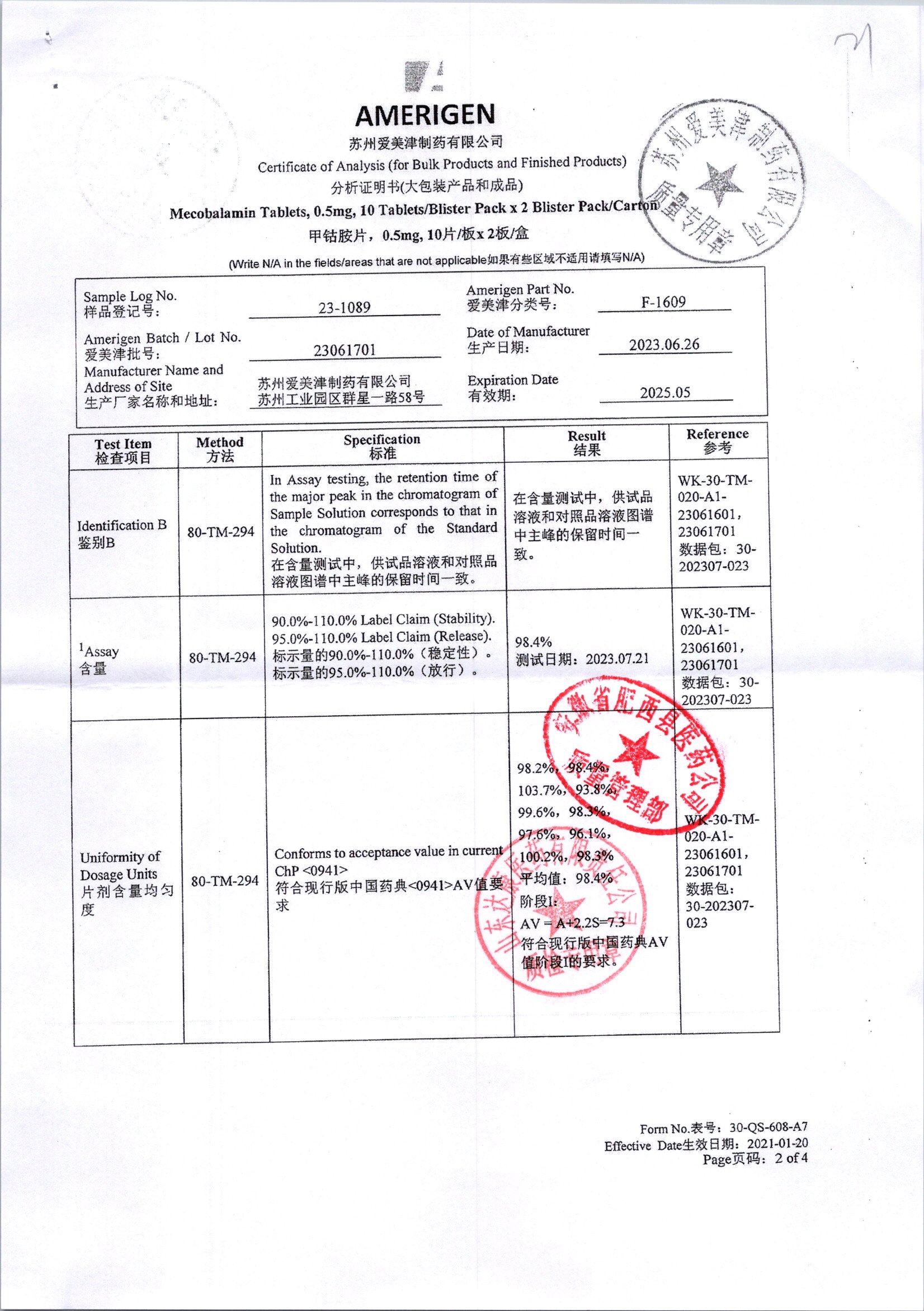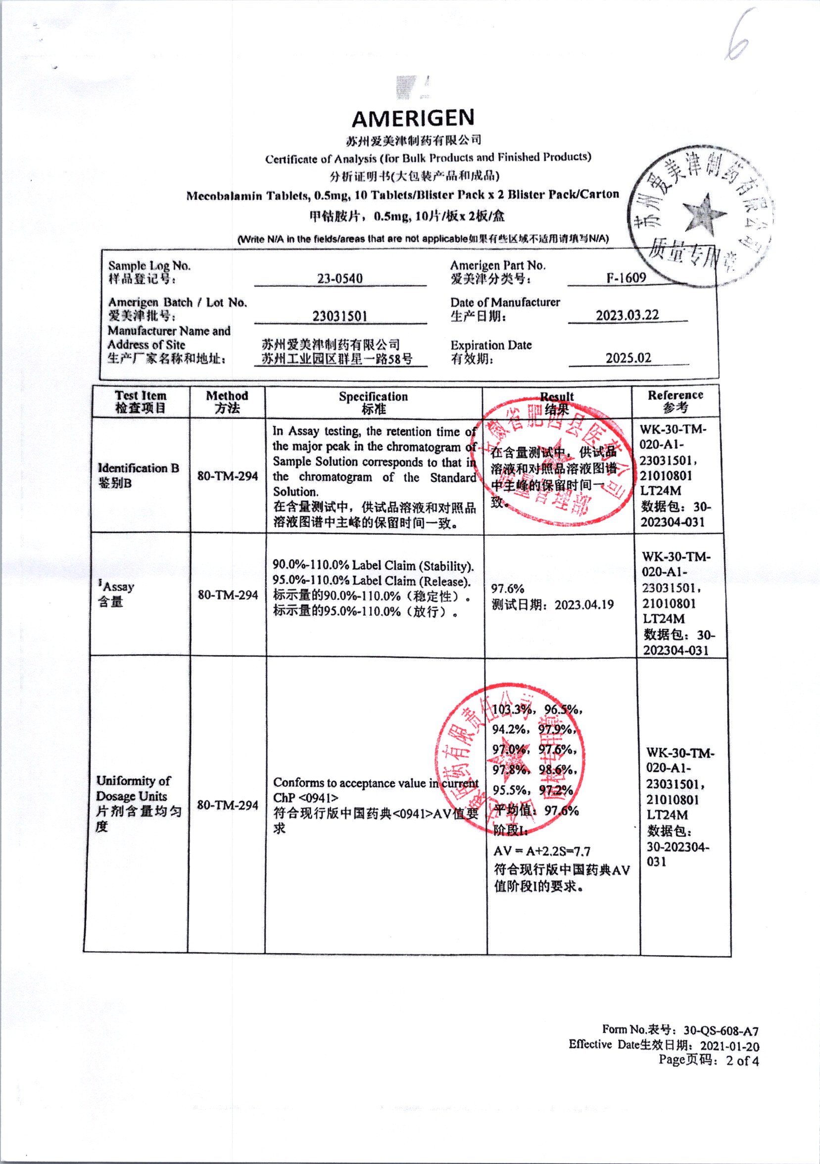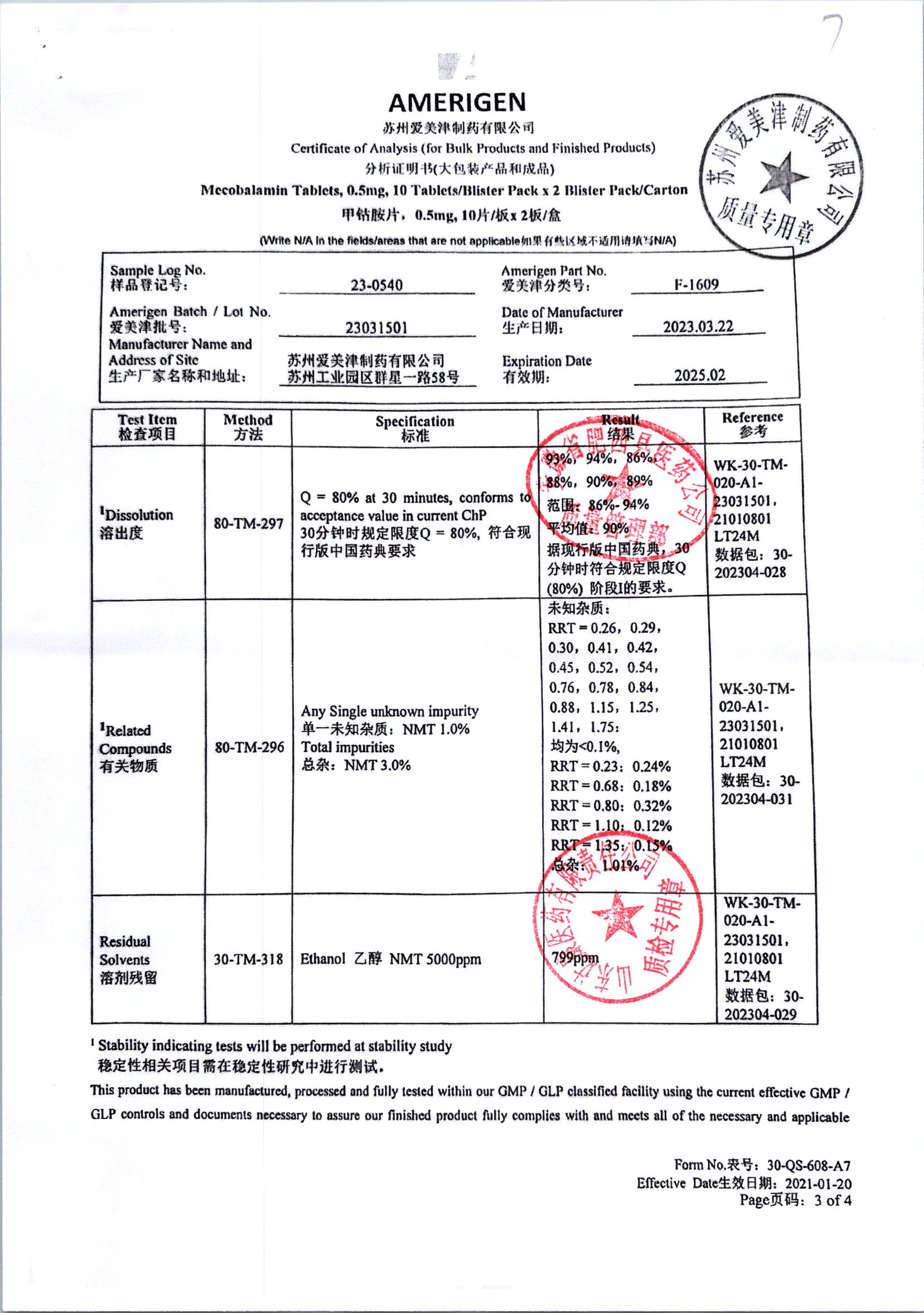 甲钴胺片 | 20片 | 23050301/2 | 查看详情 |