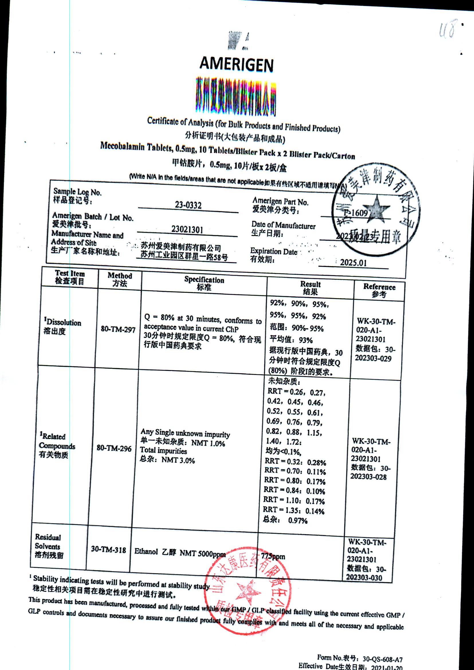 甲钴胺片 | 20片 | 23050301/4 | 查看详情 |