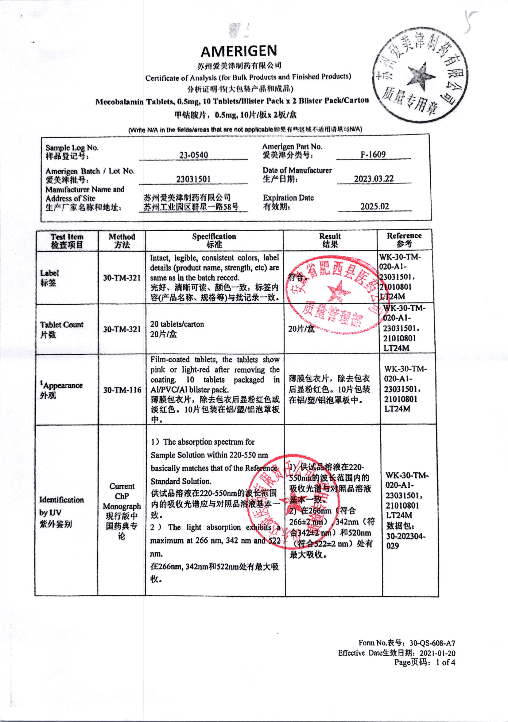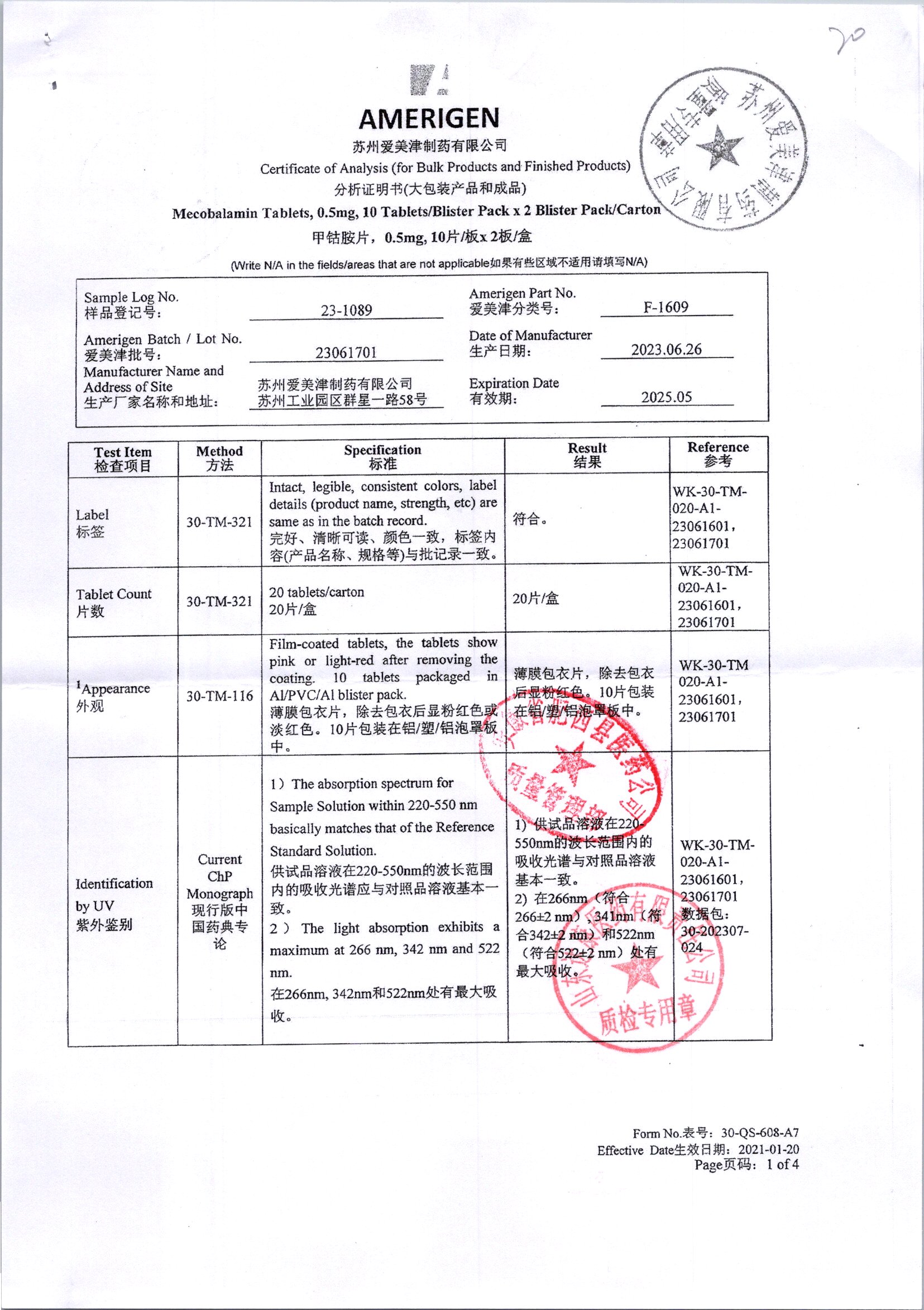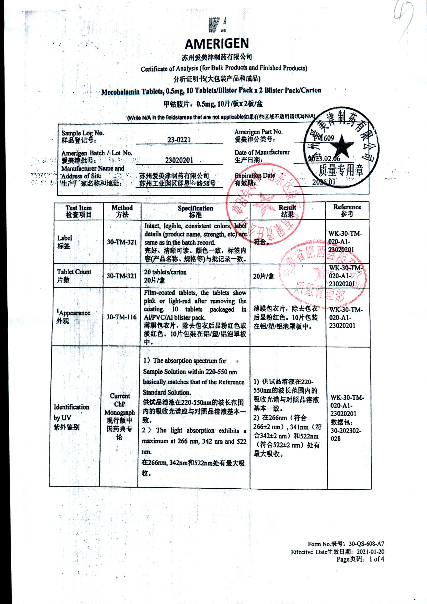 甲钴胺片 | 20片 | 23020201/4 | 查看详情 |