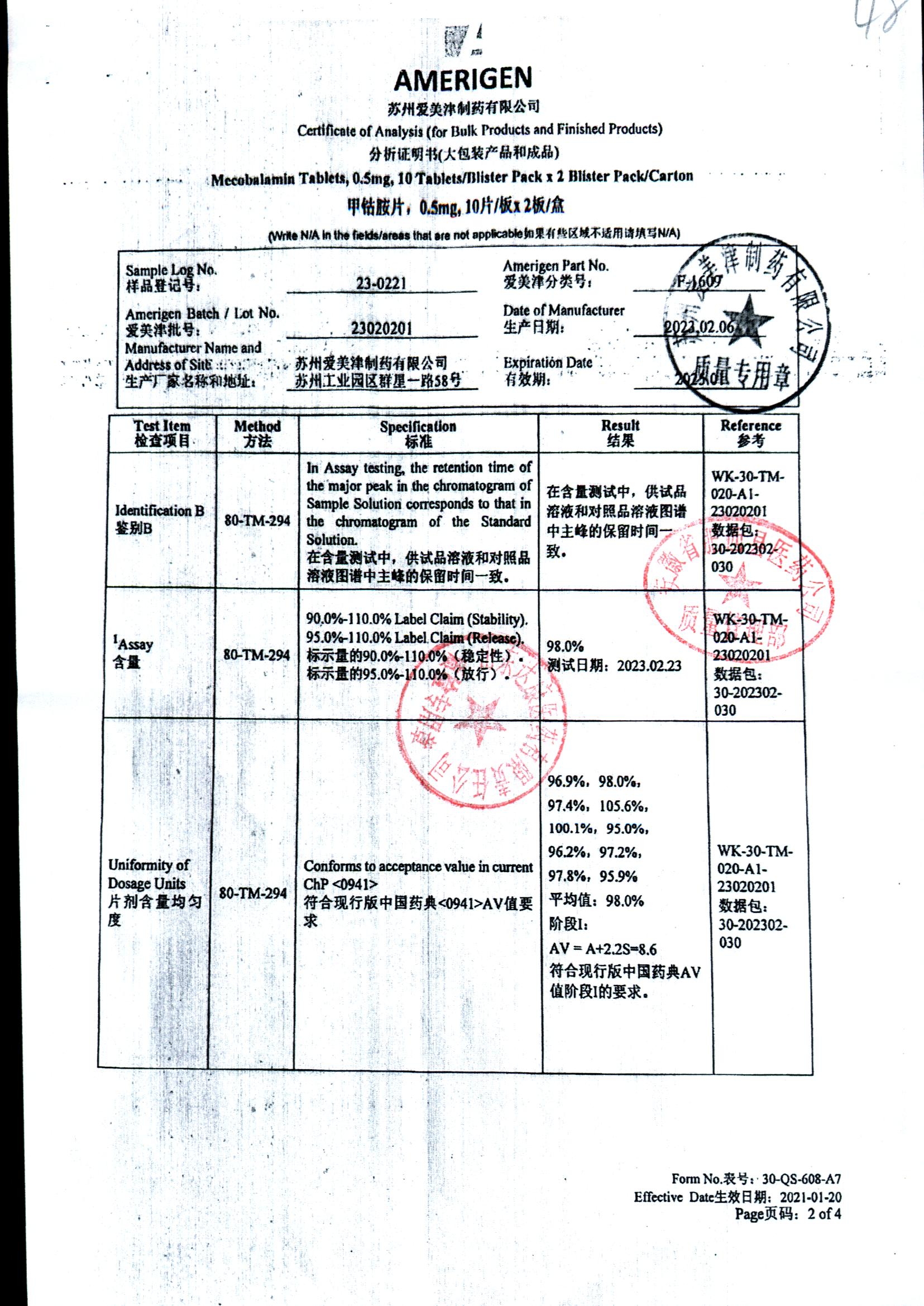 甲钴胺片 | 20片 | 23020201/2 | 查看详情 |