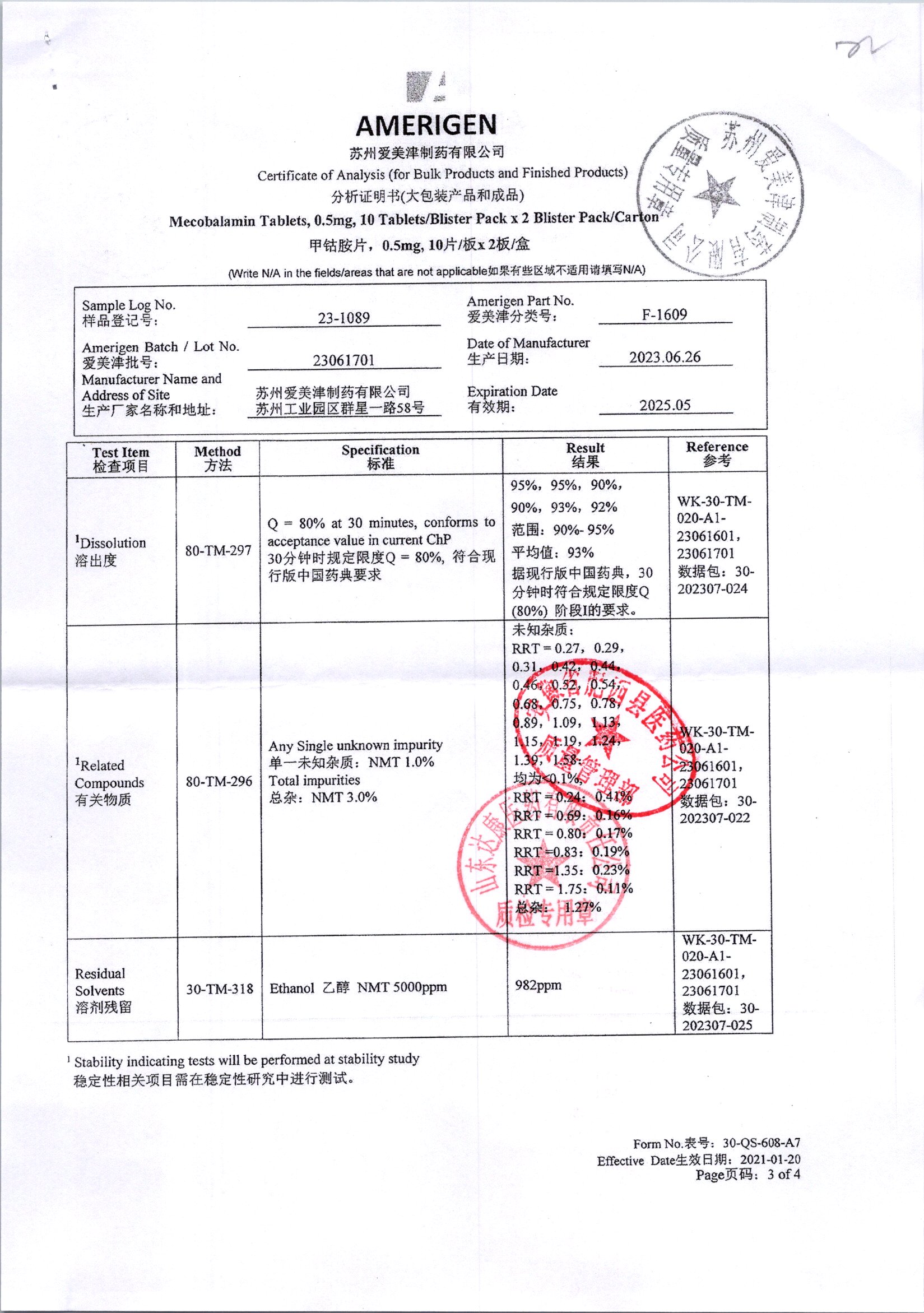 甲钴胺片 | 20片 | 23061701/3 | 查看详情 |
