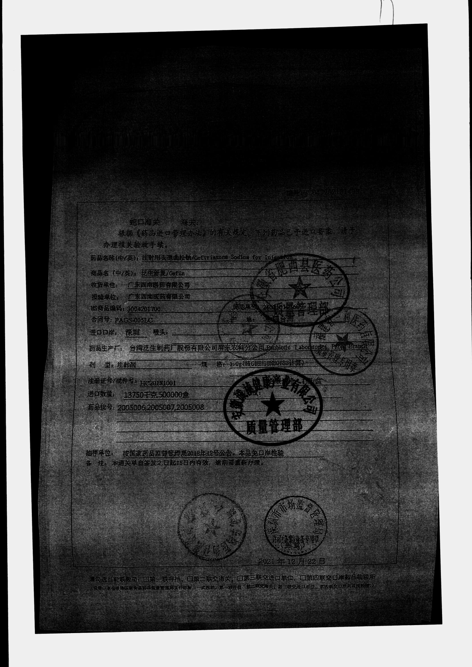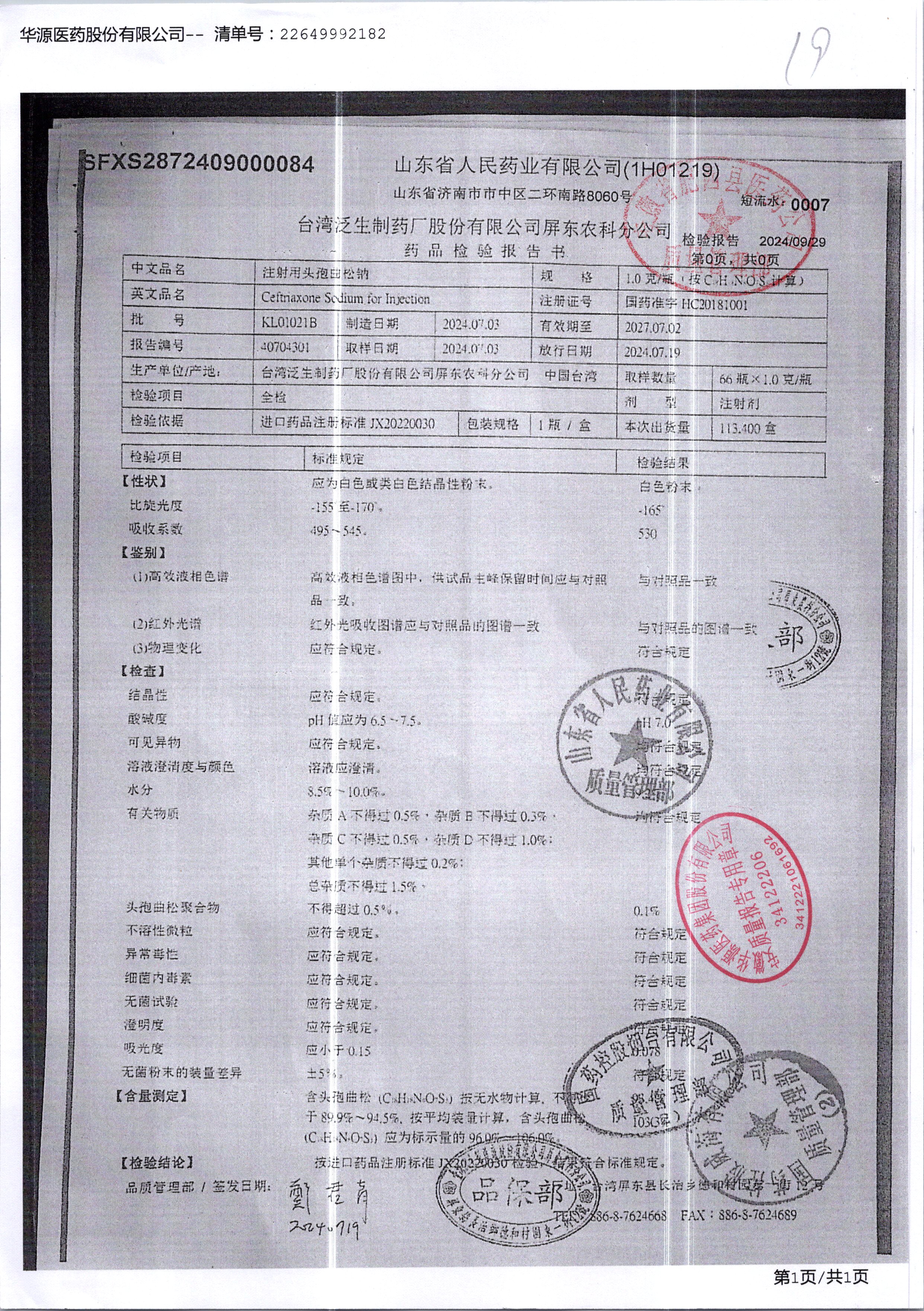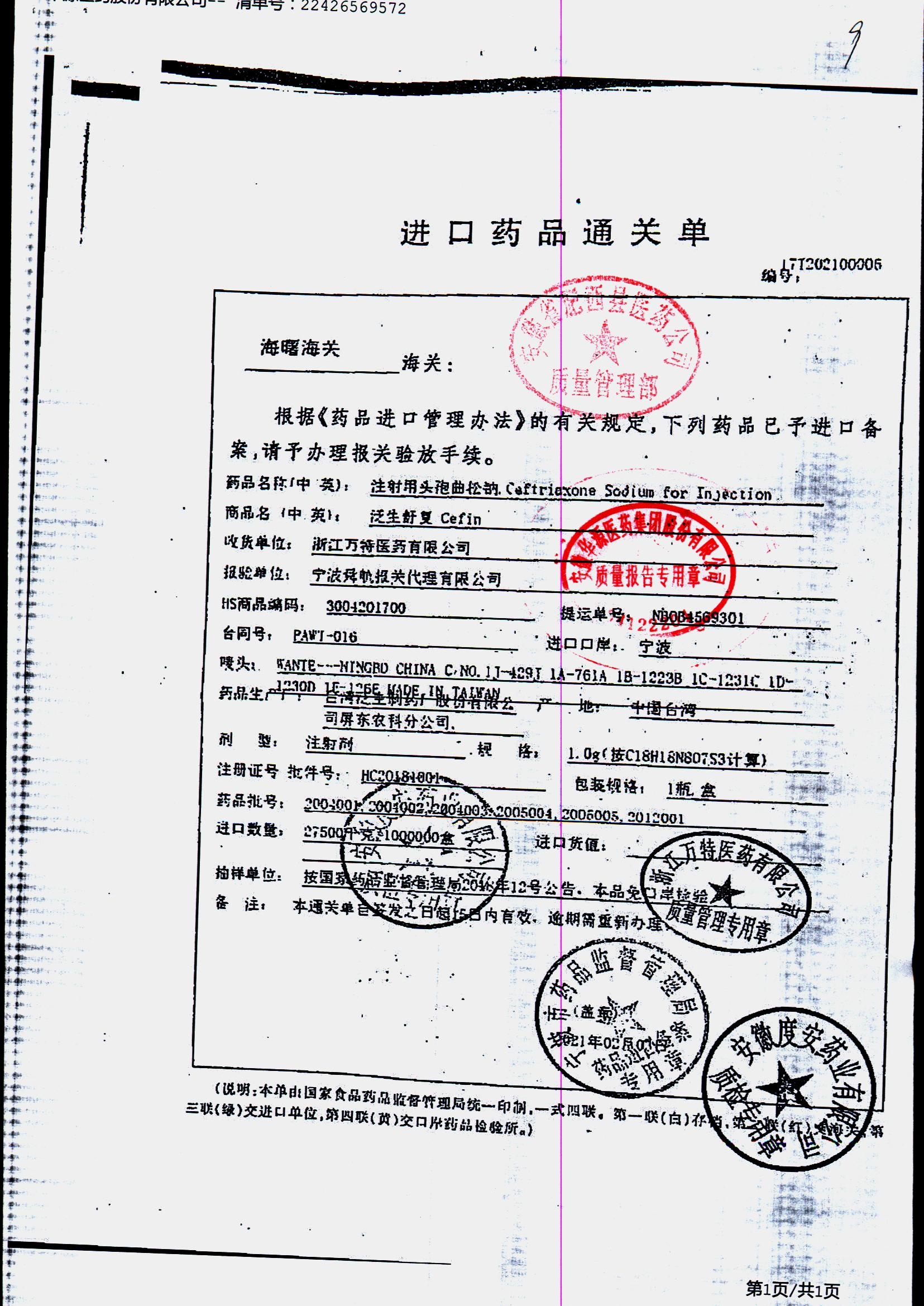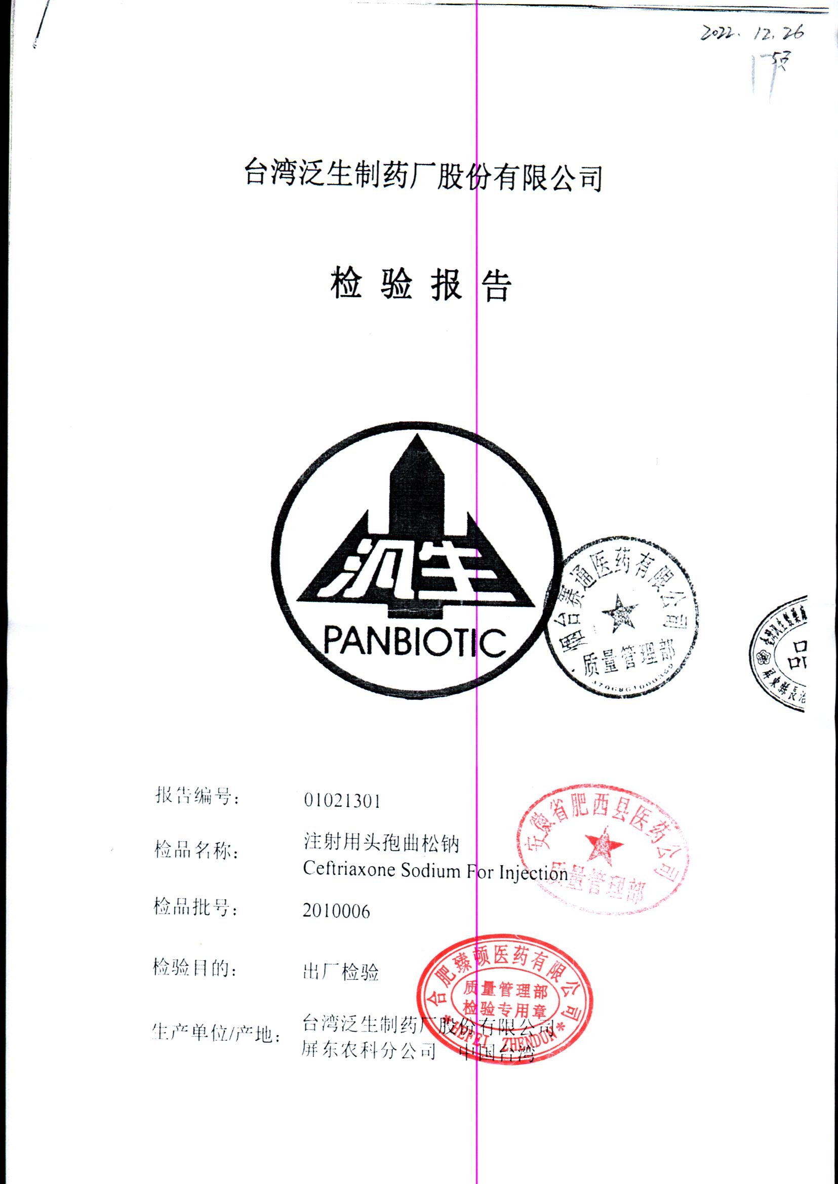 注射用头孢曲松钠 | 1.0g | KL01021B/3 | 查看详情 |
