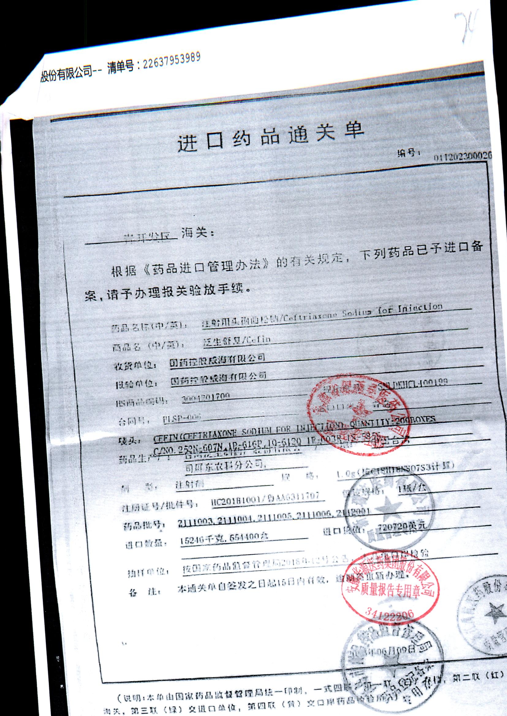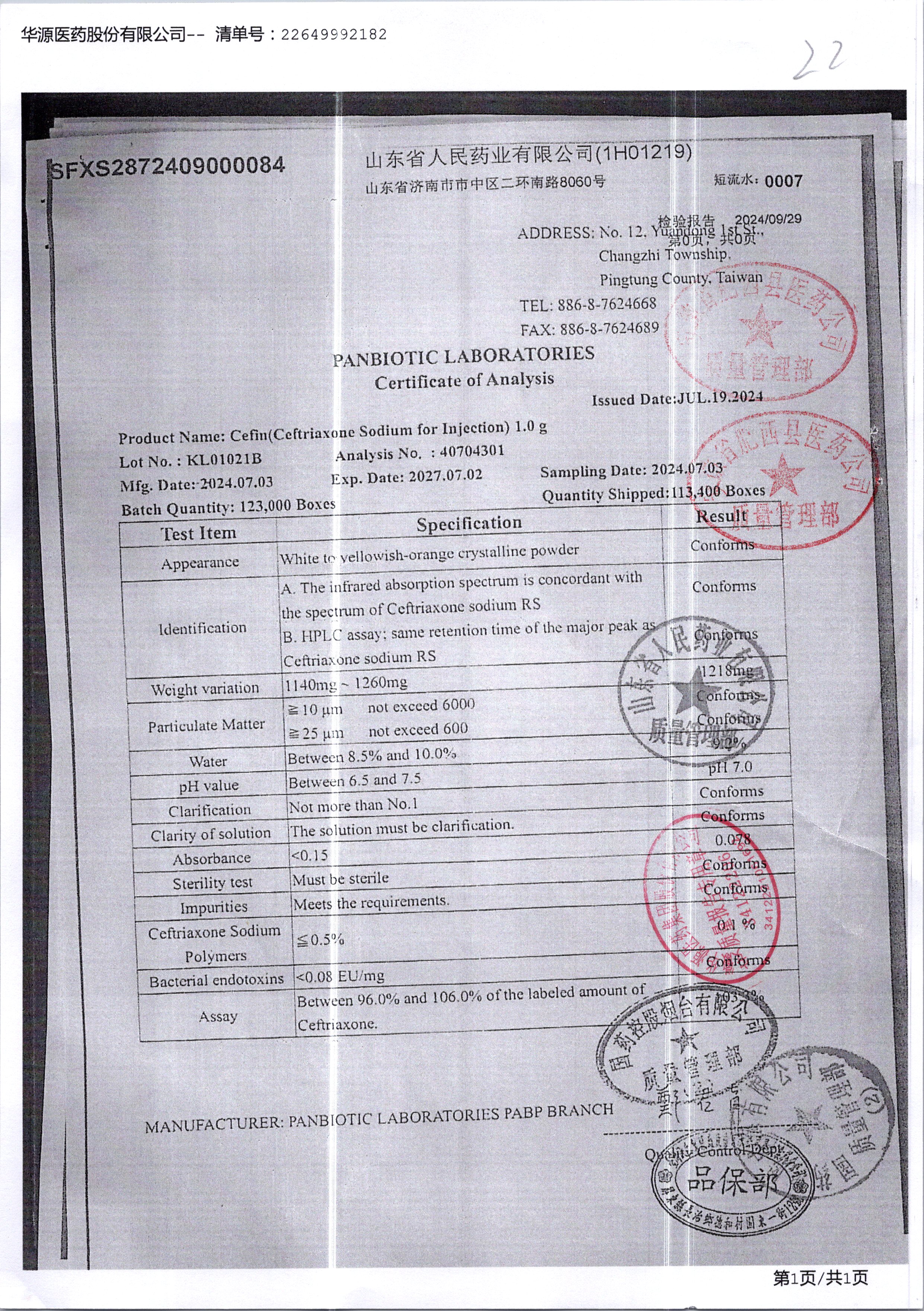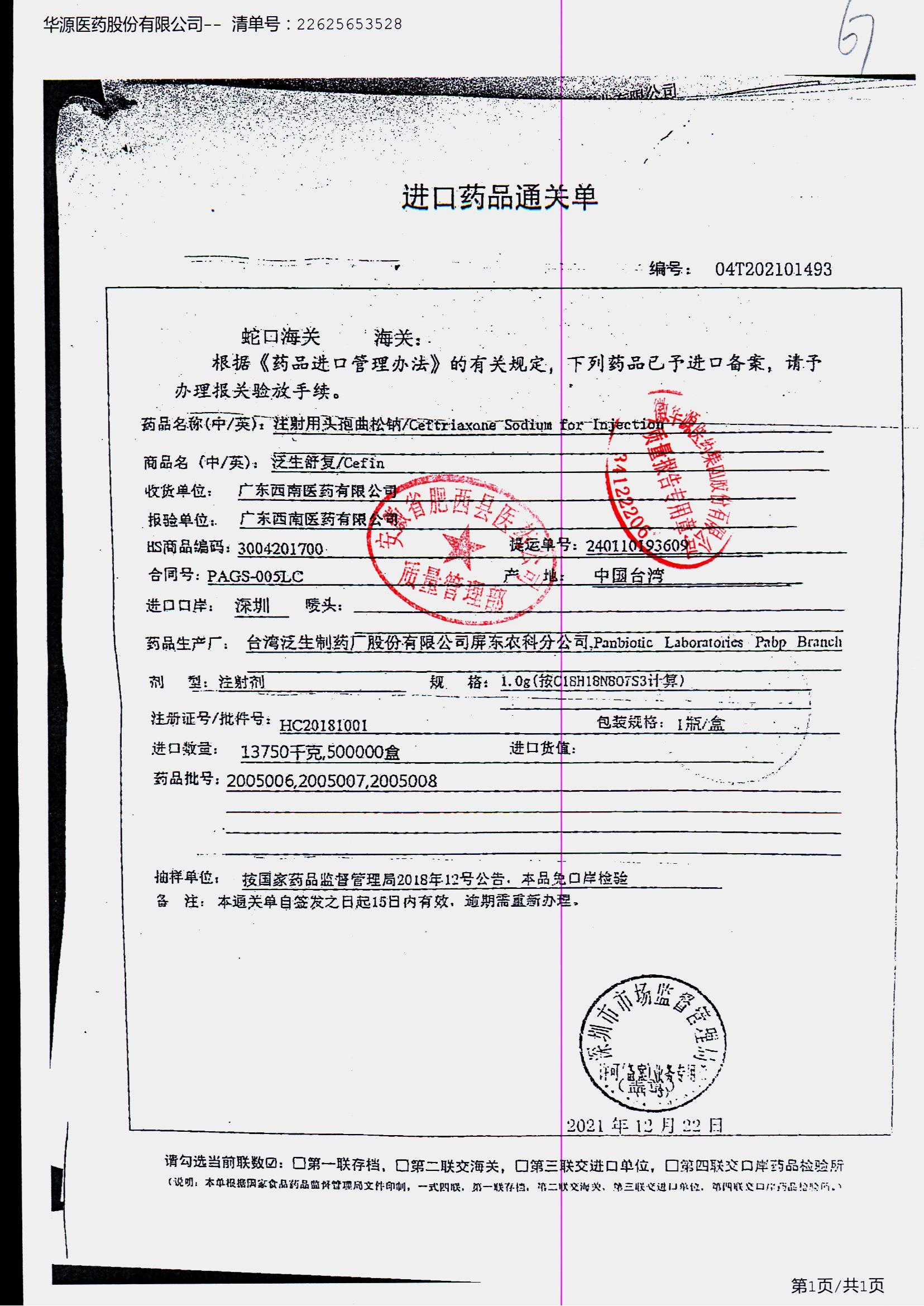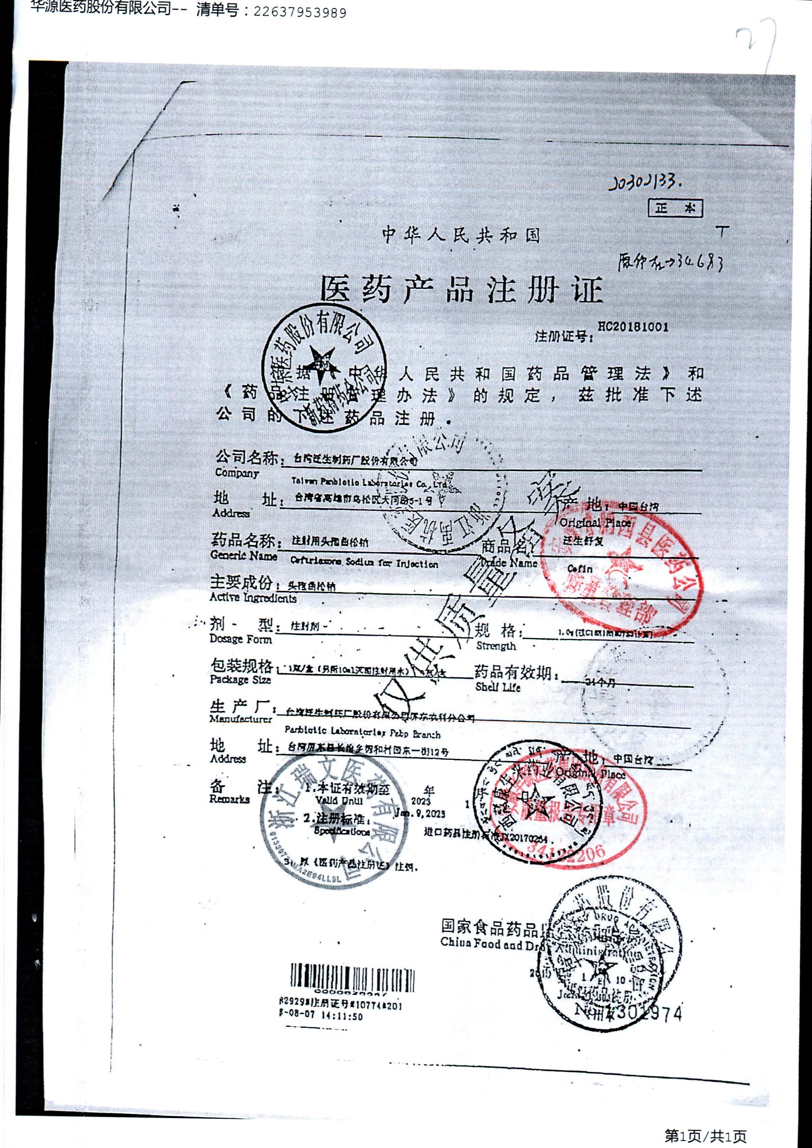 注射用头孢曲松钠 | 1.0g | KL01021B/3 | 查看详情 |