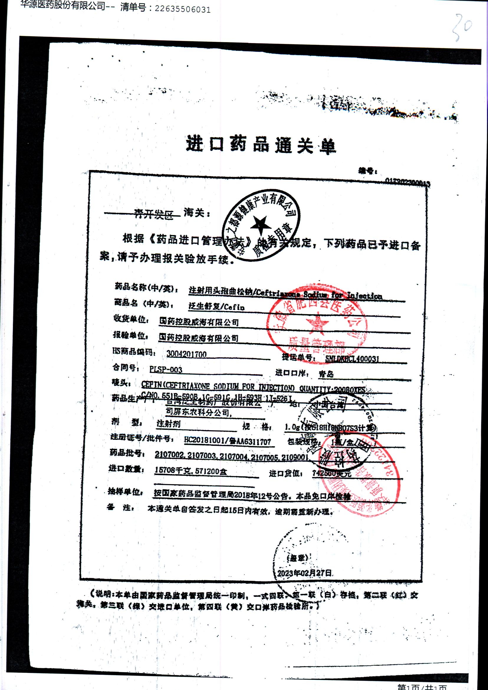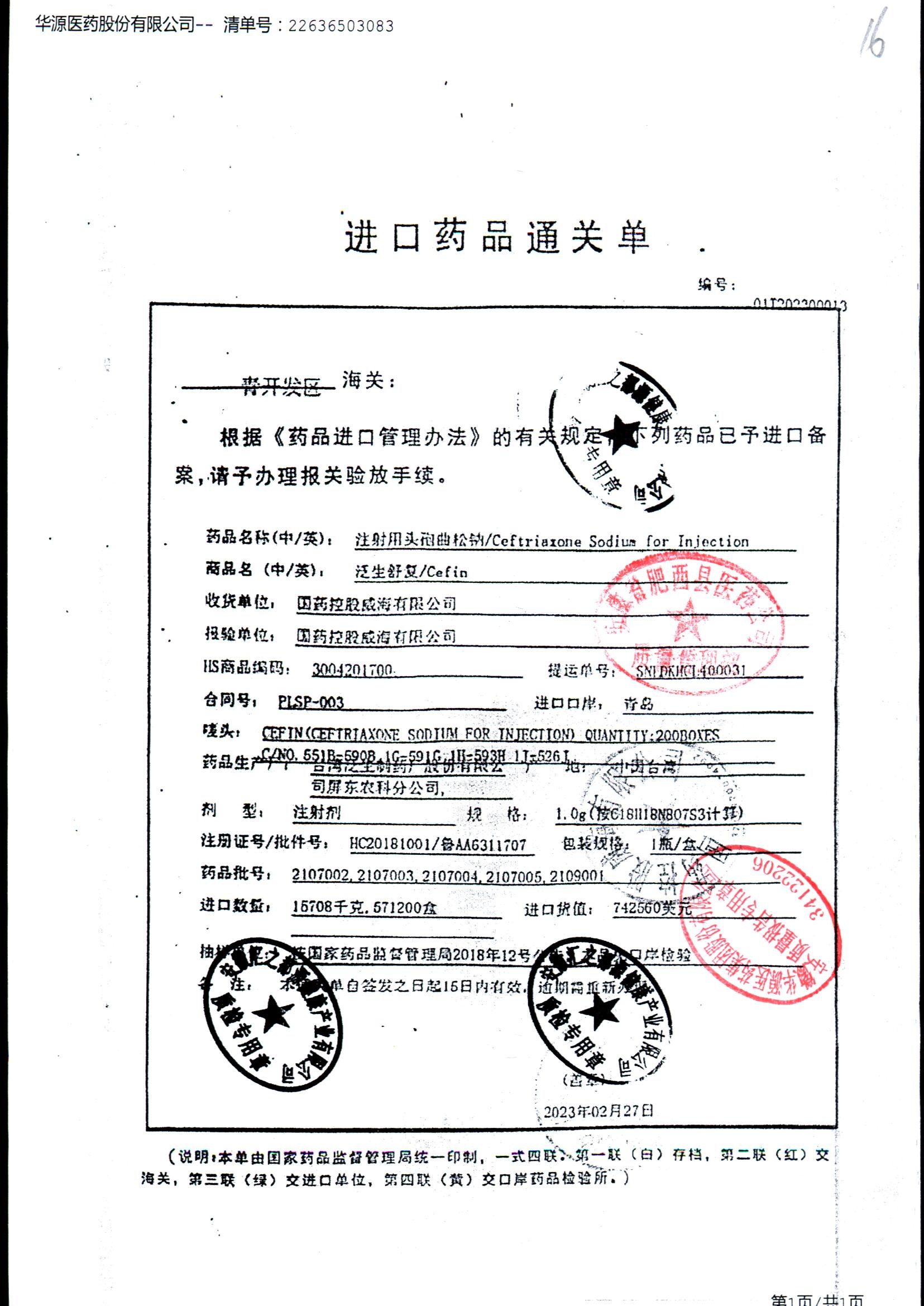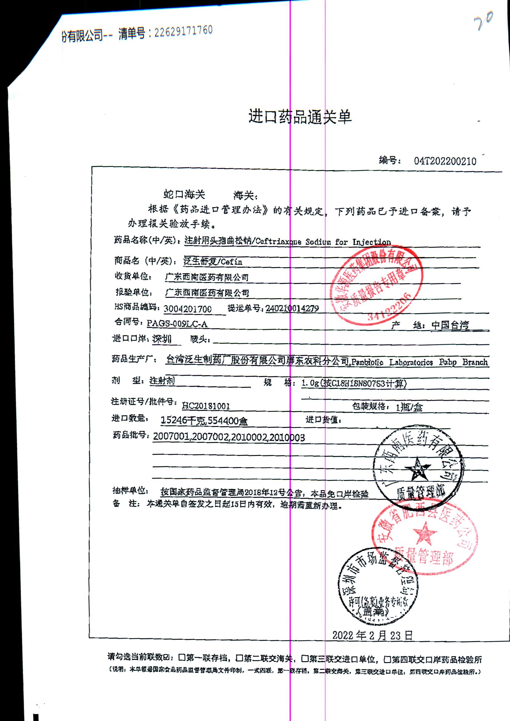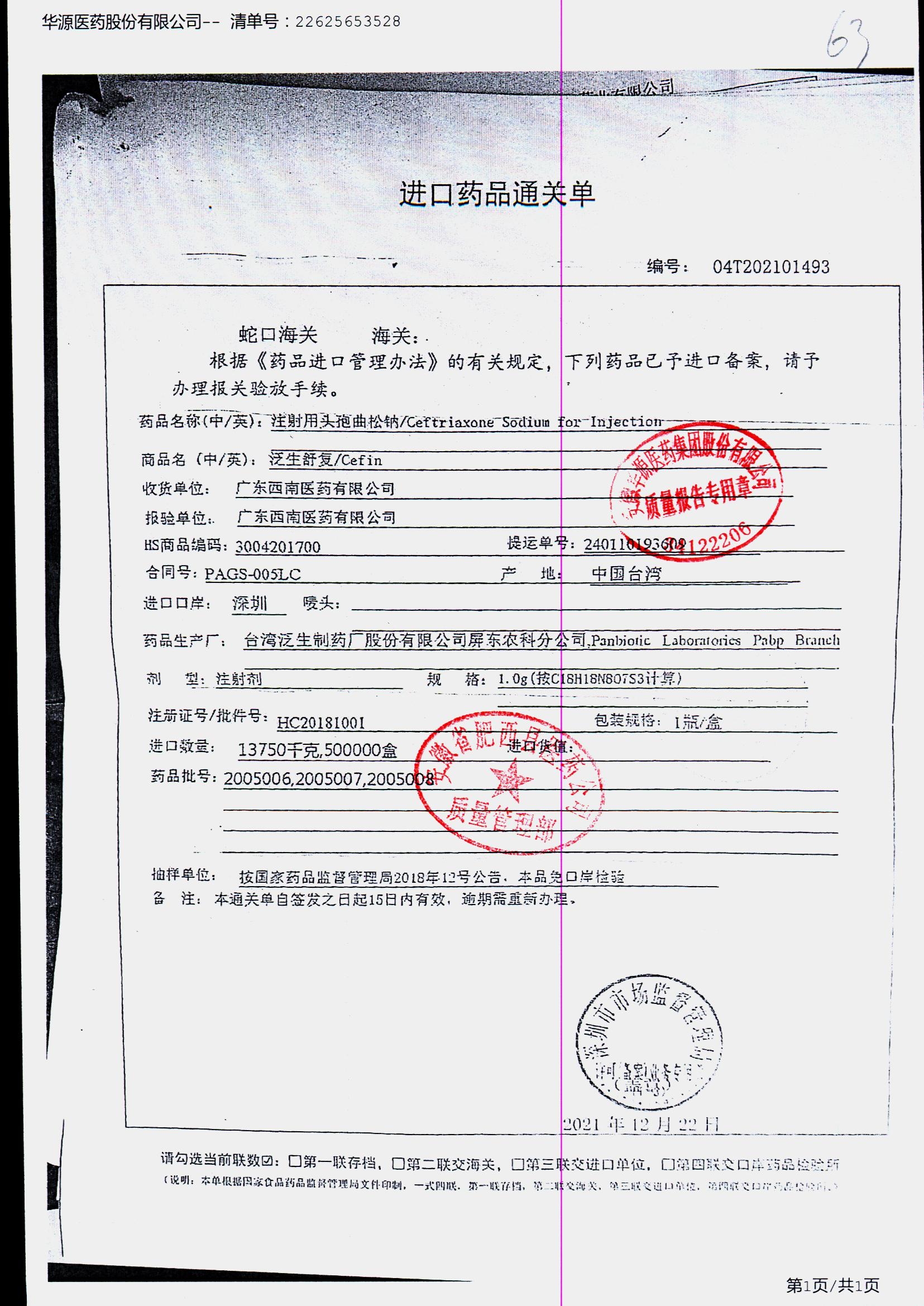 注射用头孢曲松钠 | 1.0g | KL01021B/3 | 查看详情 |