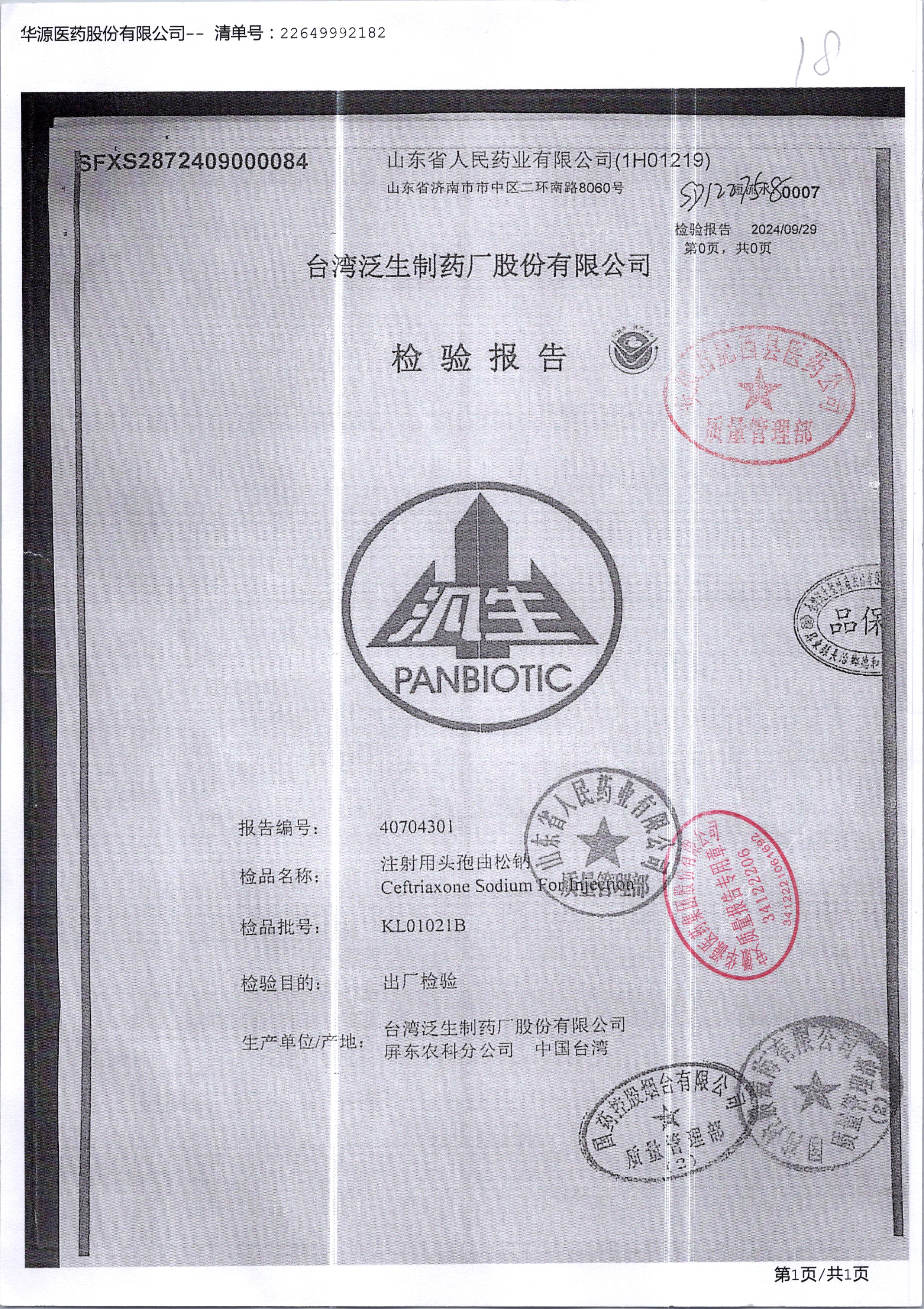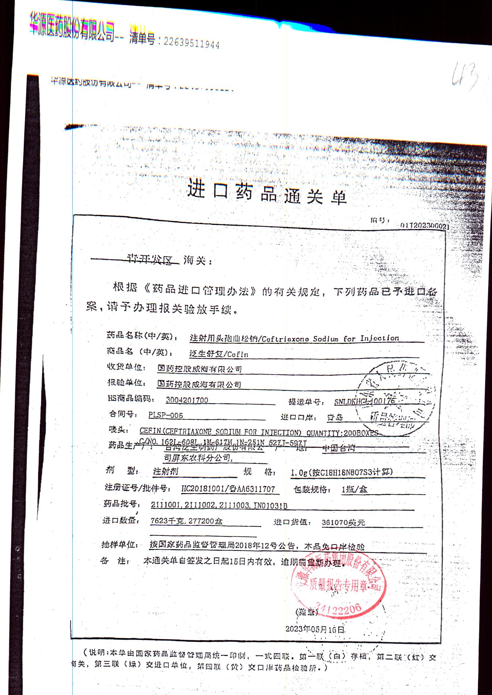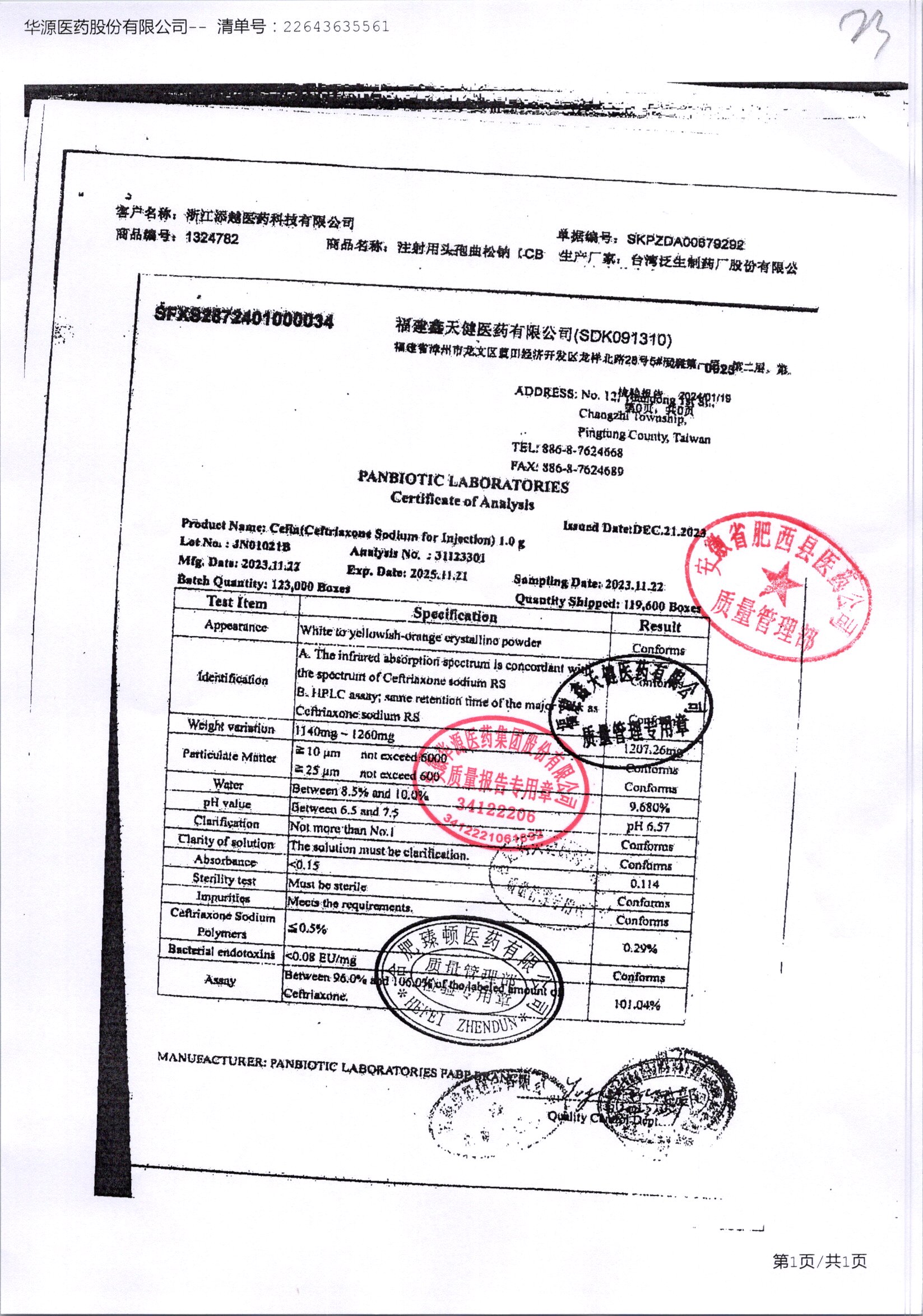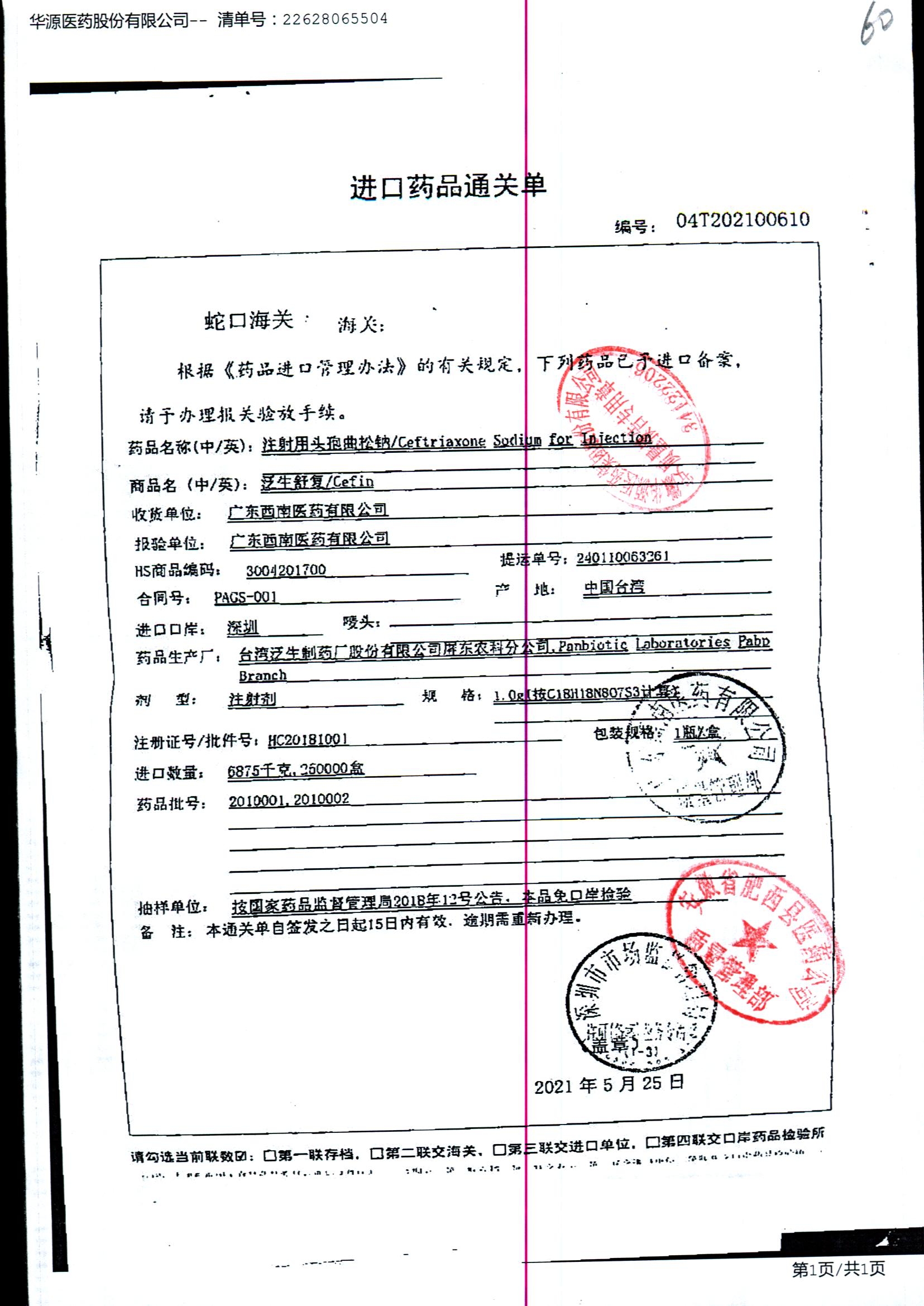 注射用头孢曲松钠 | 1.0g | KL01021B/3 | 查看详情 |
