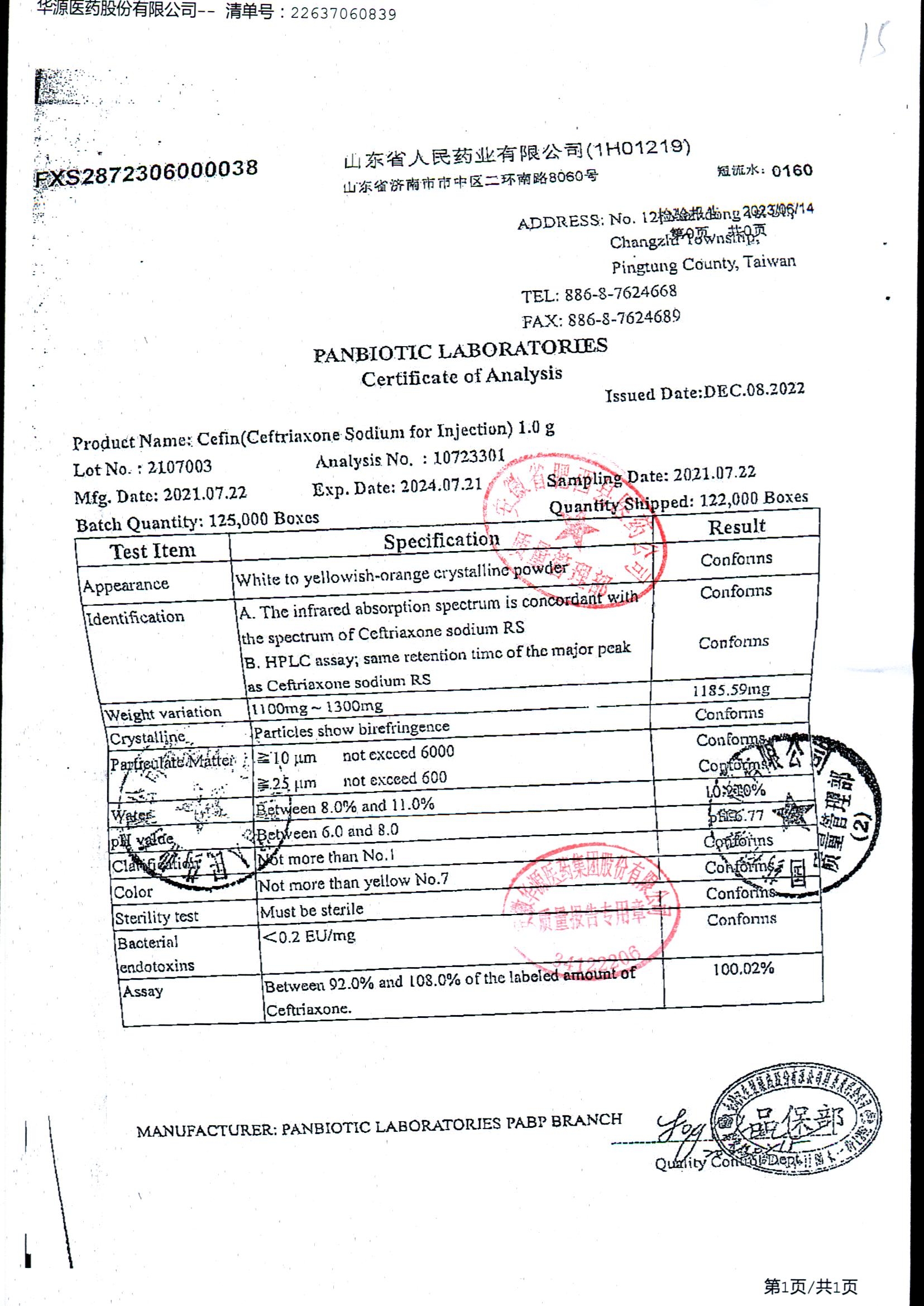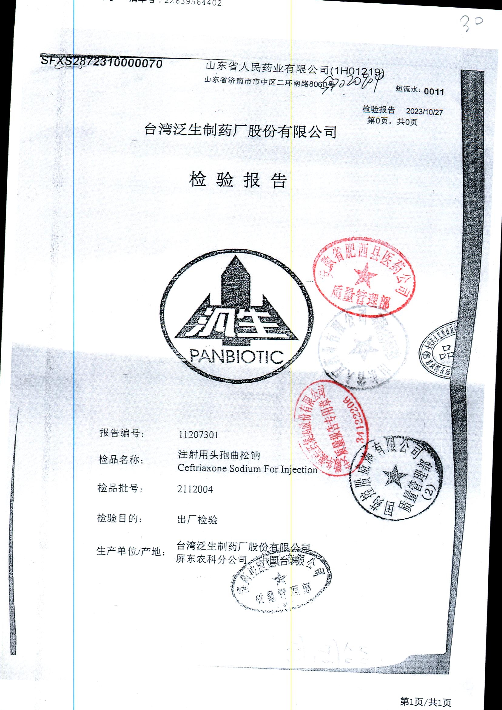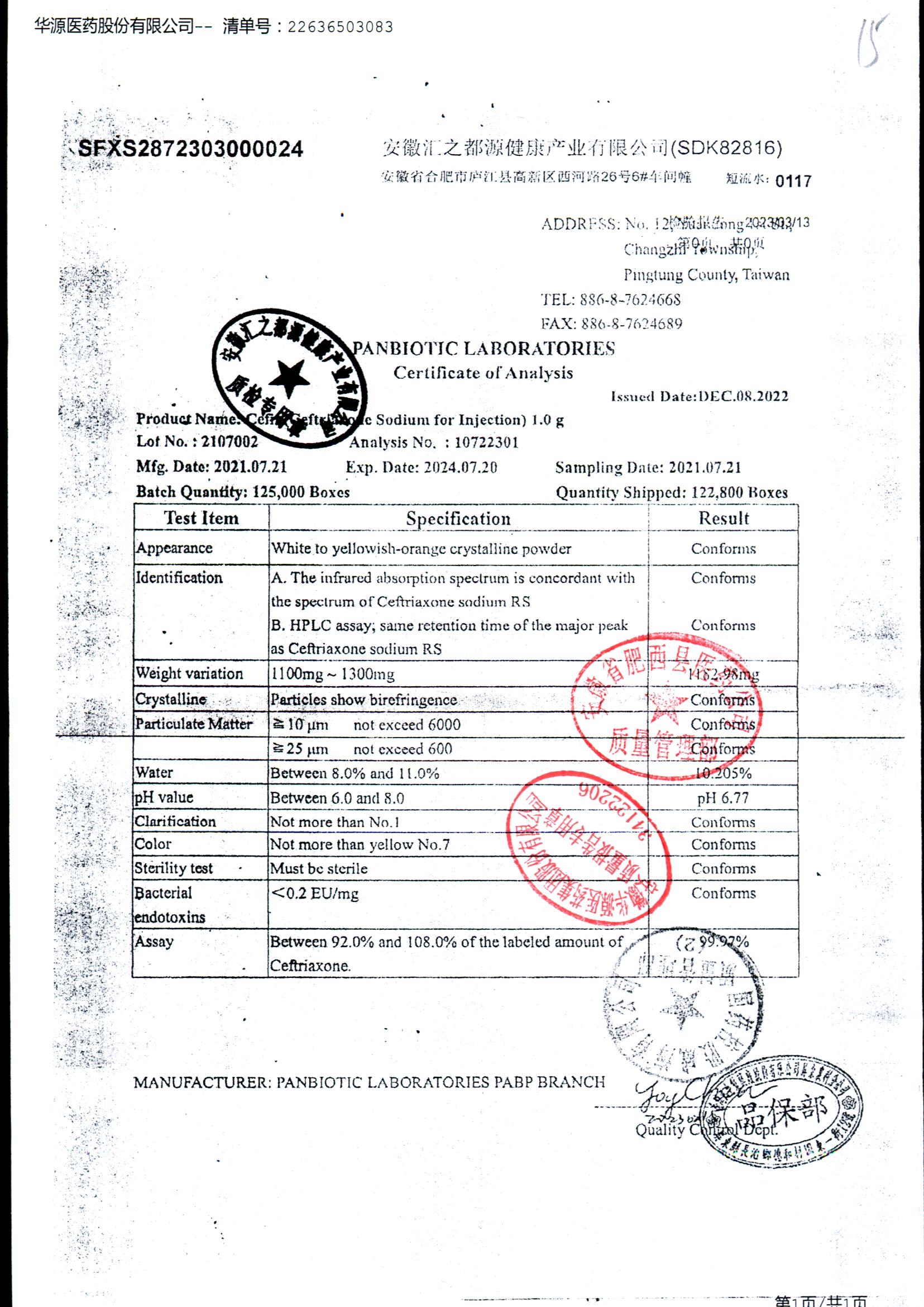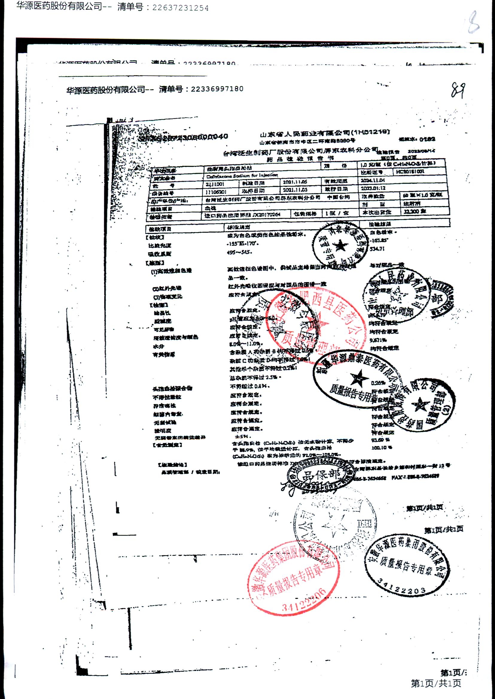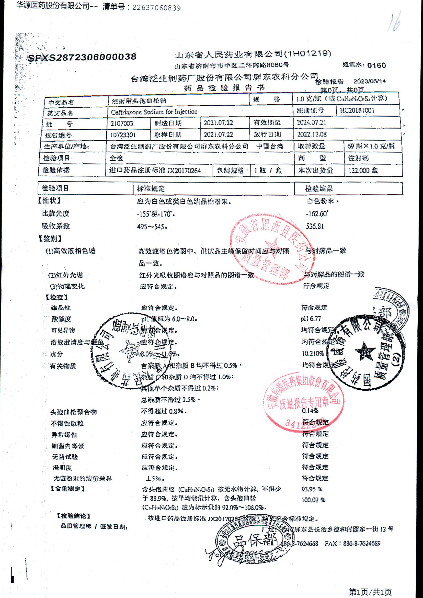 注射用头孢曲松钠 | 1.0g | JN01031B/7 | 查看详情 |