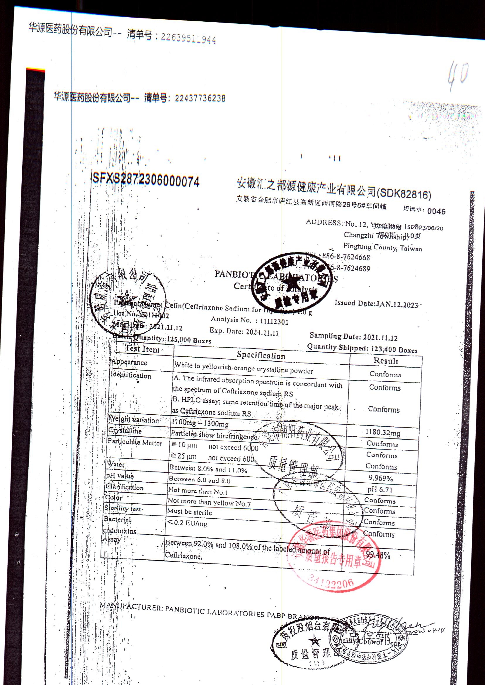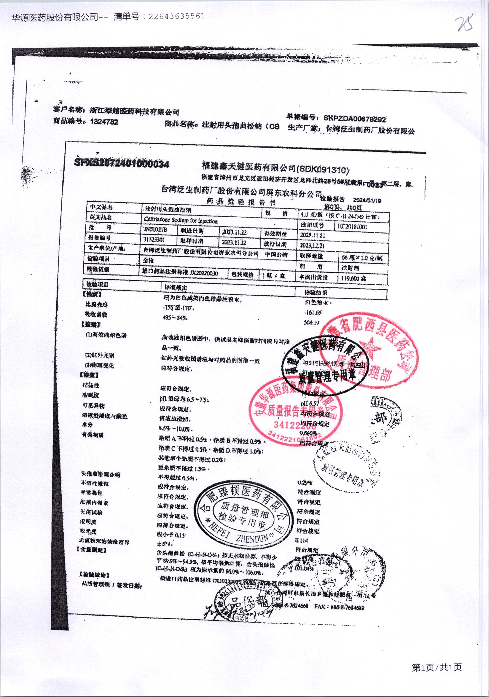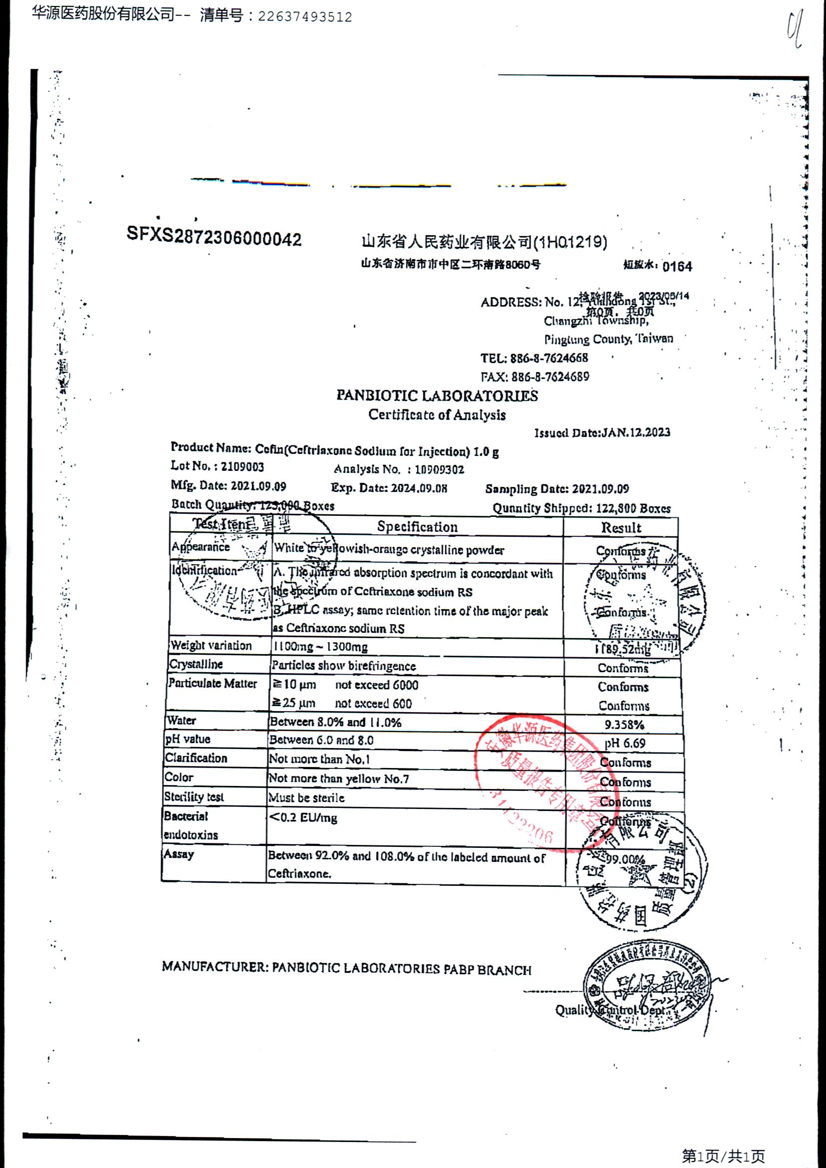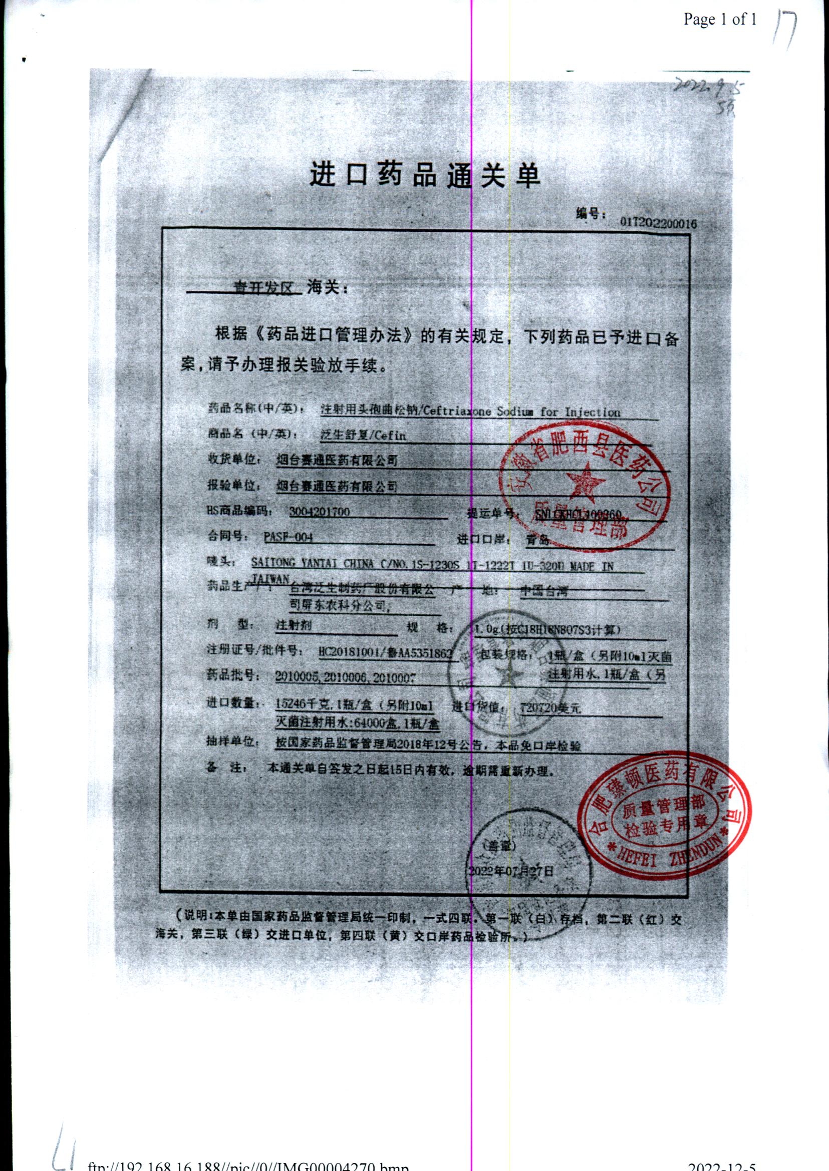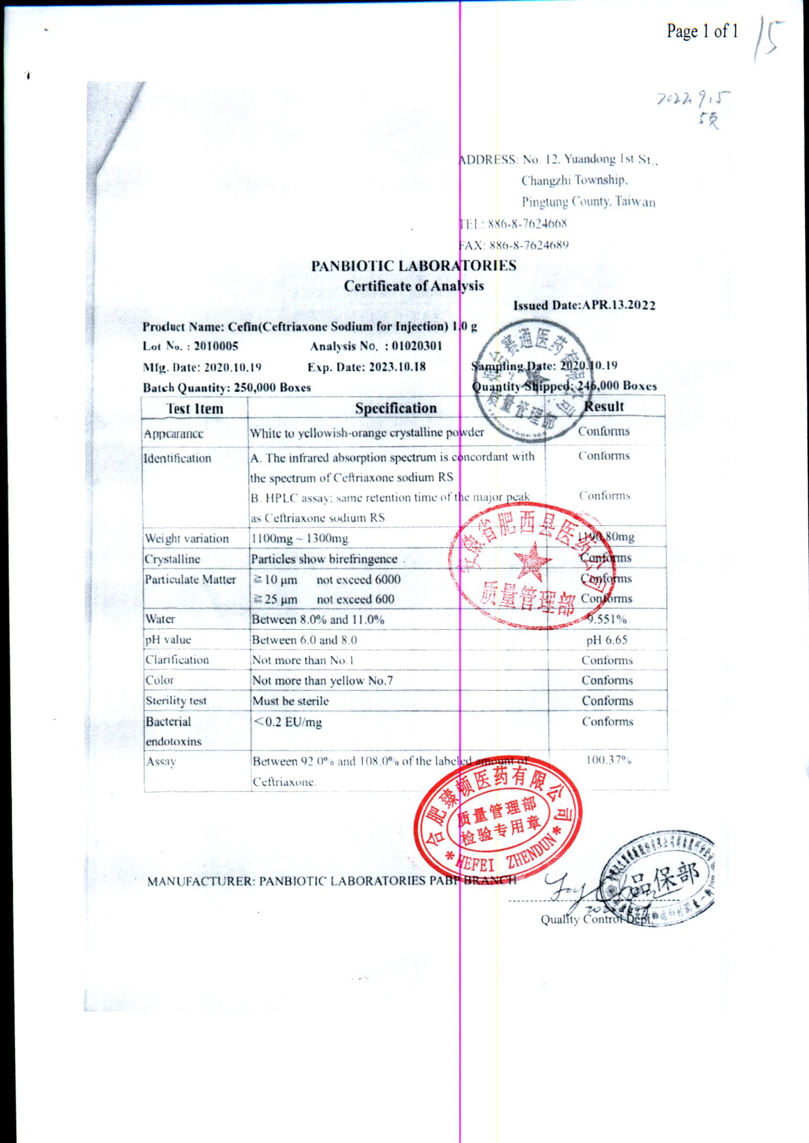 注射用头孢曲松钠 | 1.0g | JN01031B/7 | 查看详情 |