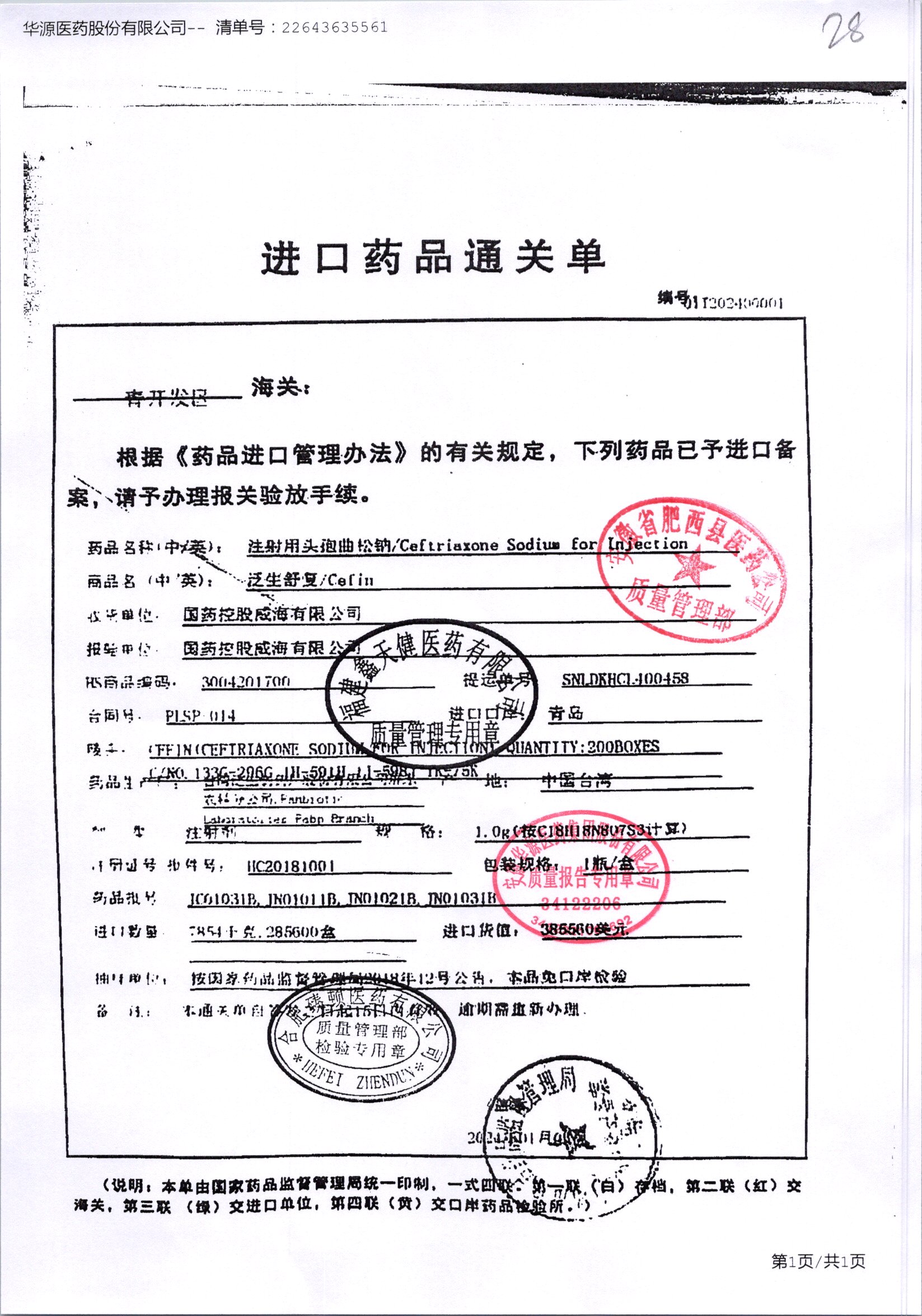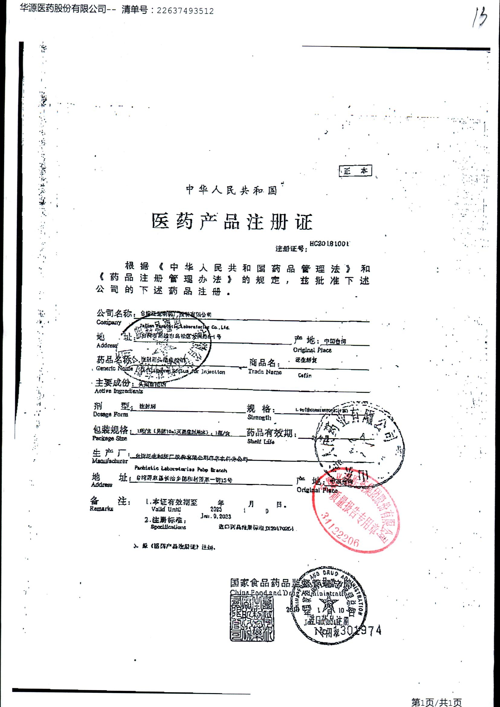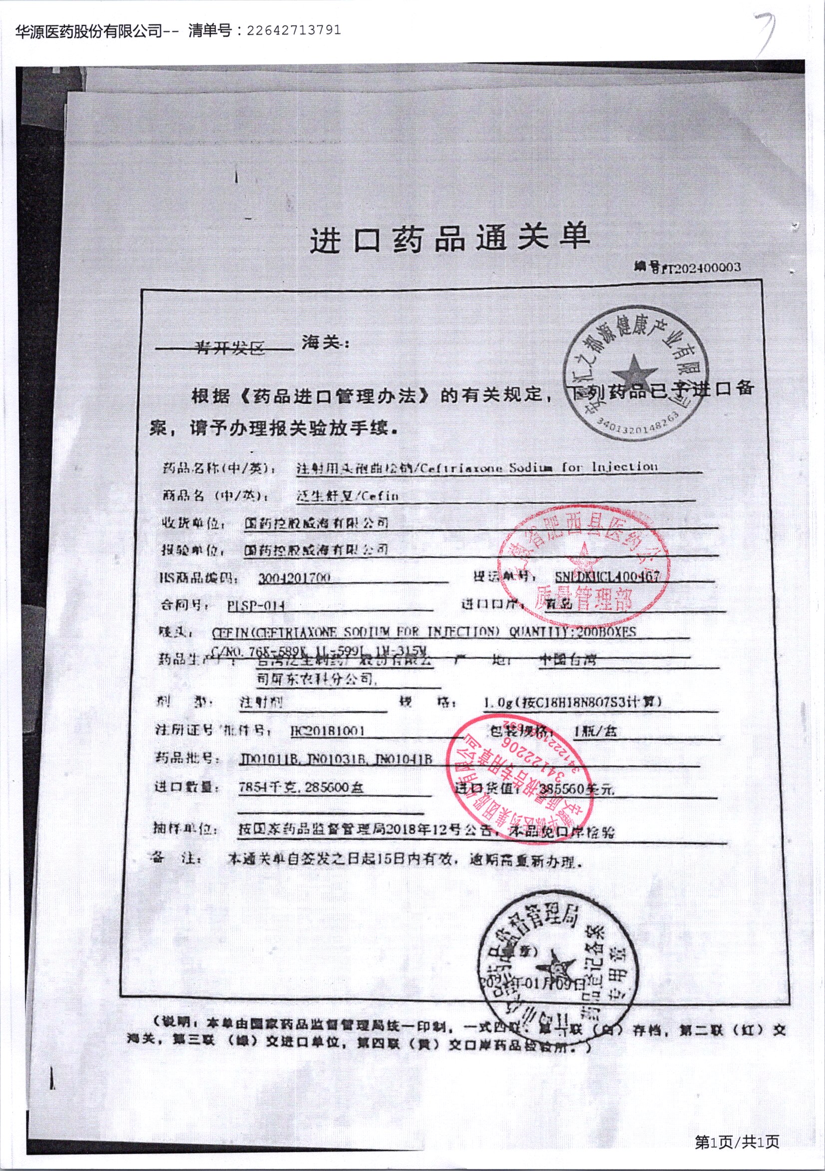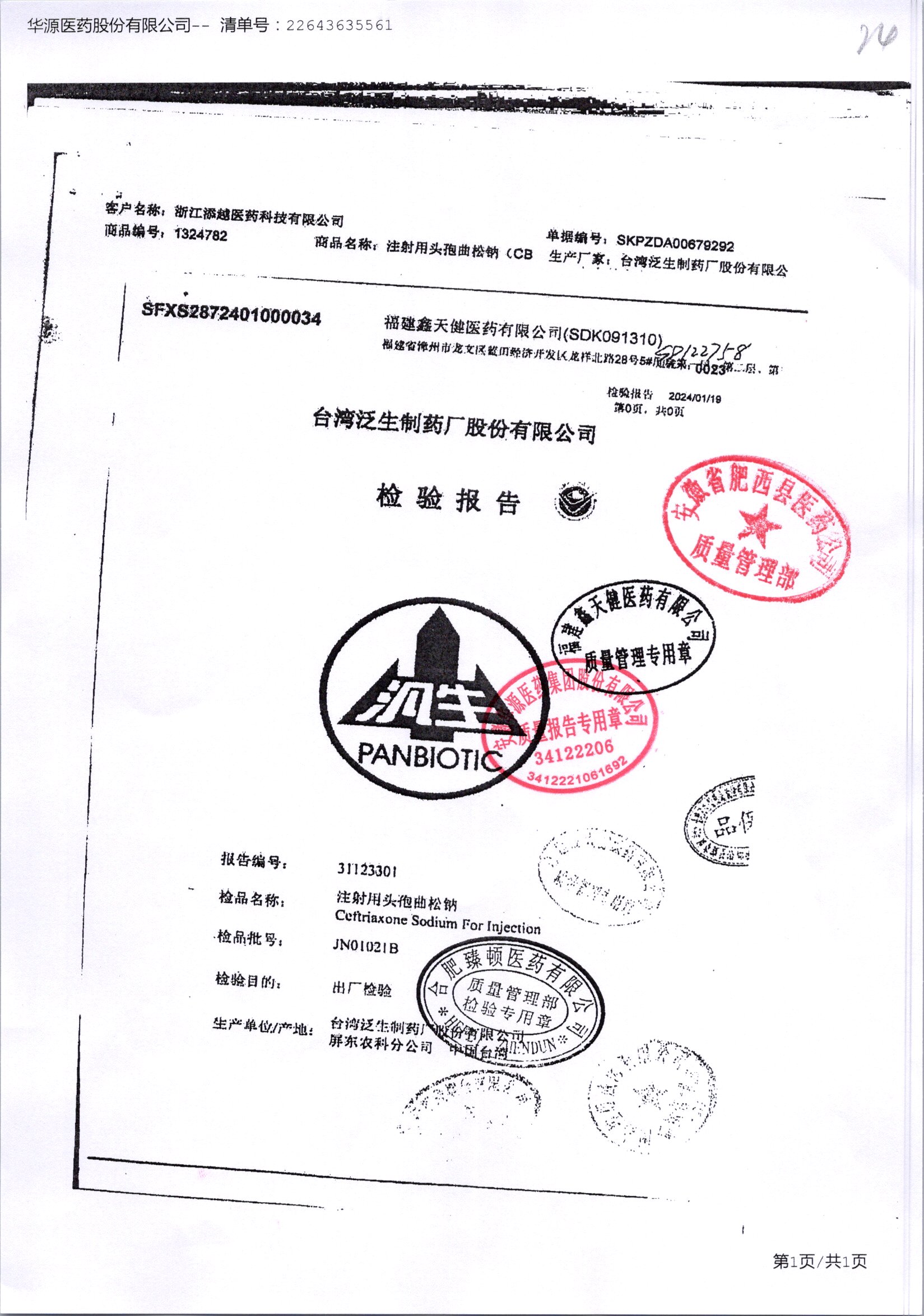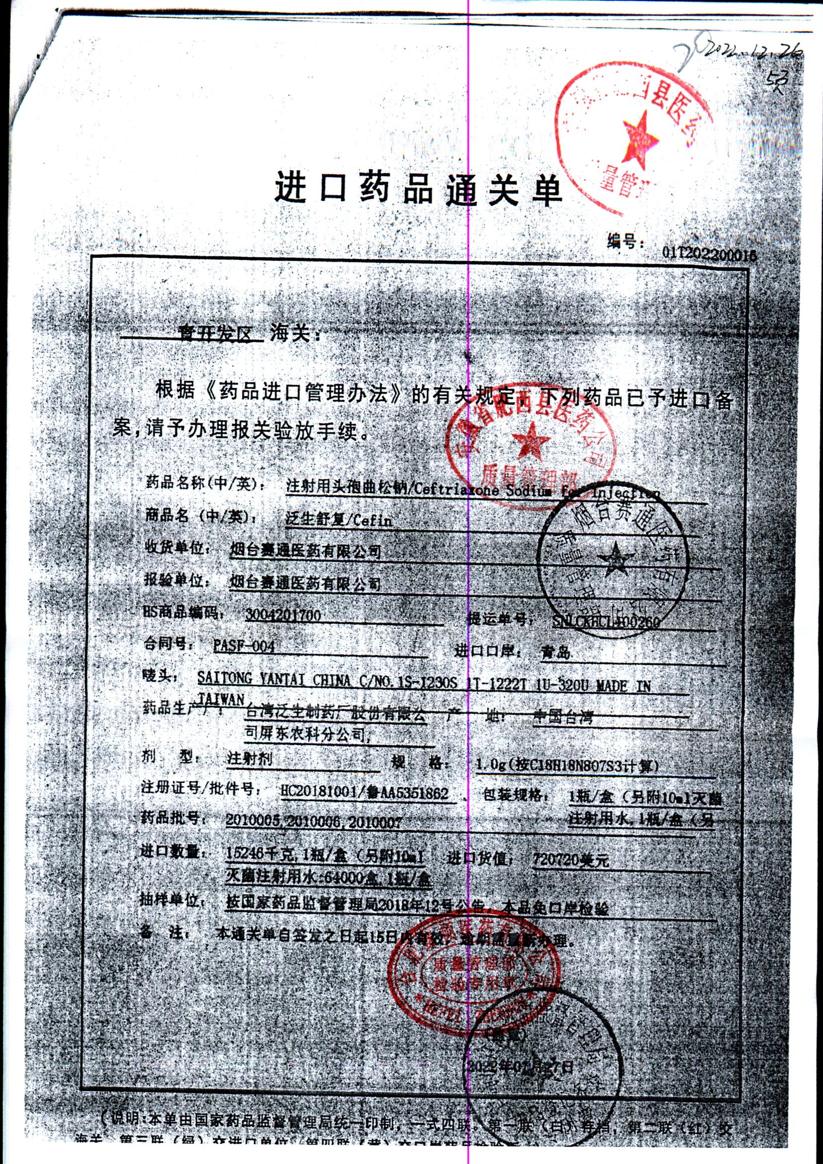 注射用头孢曲松钠 | 1.0g | JN01031B/7 | 查看详情 |