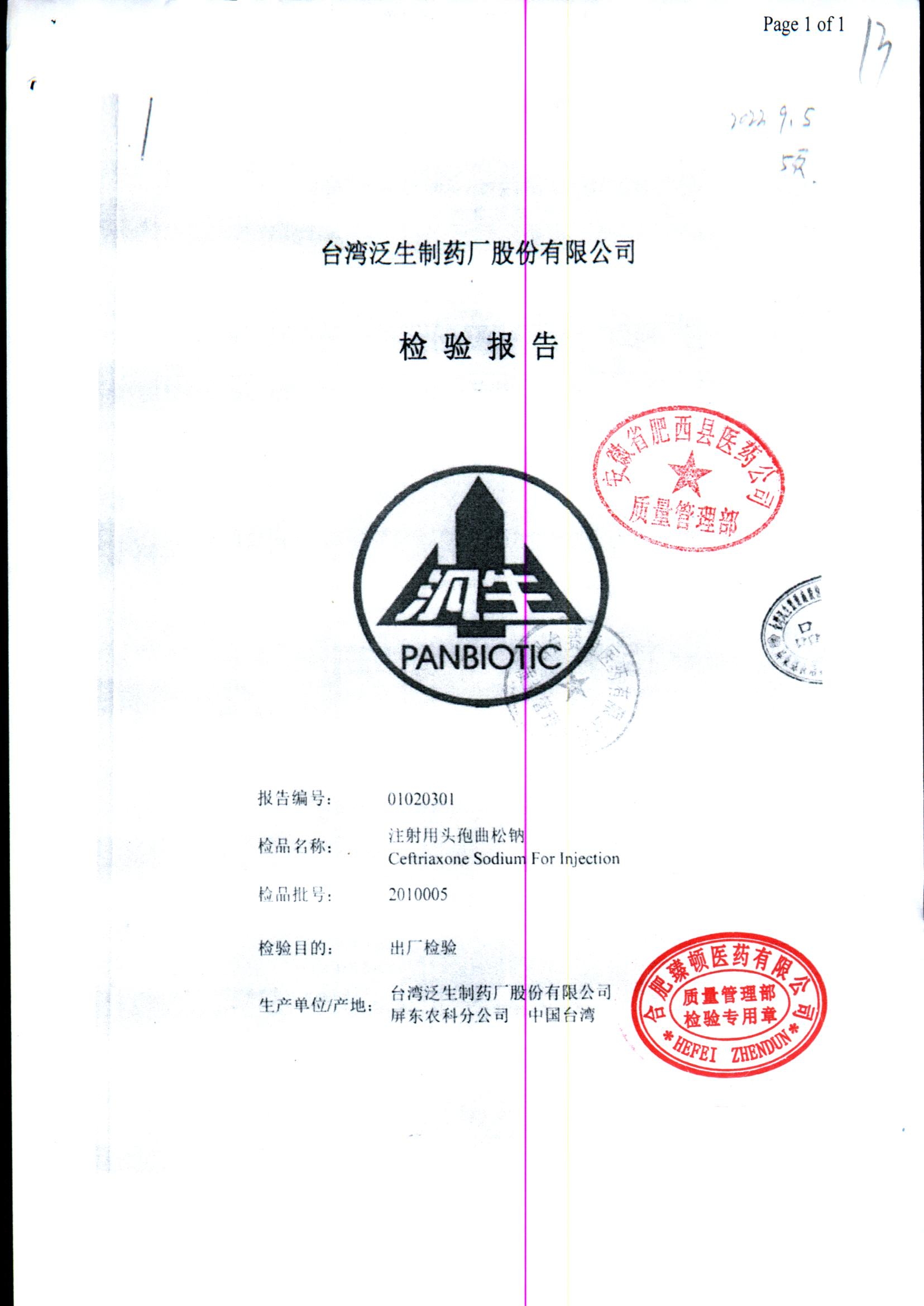 注射用头孢曲松钠 | 1.0g | 2010005/1 | 查看详情 |