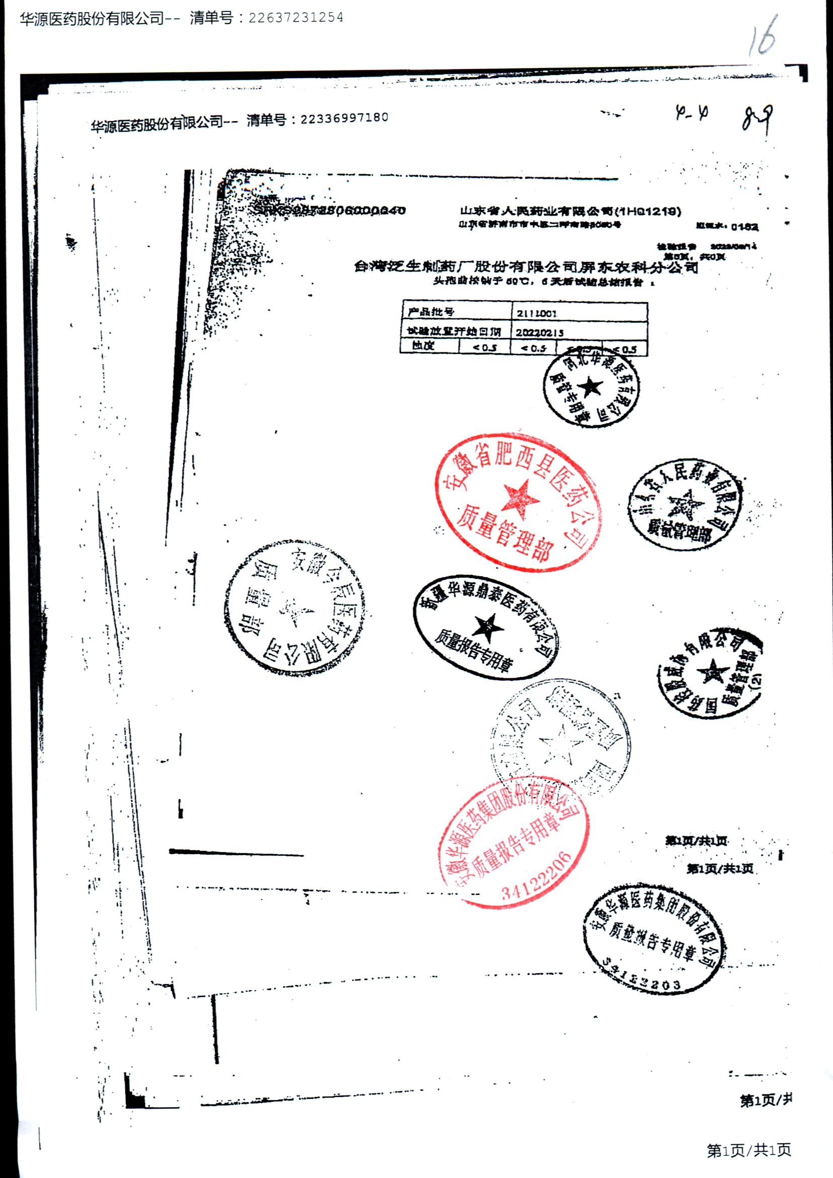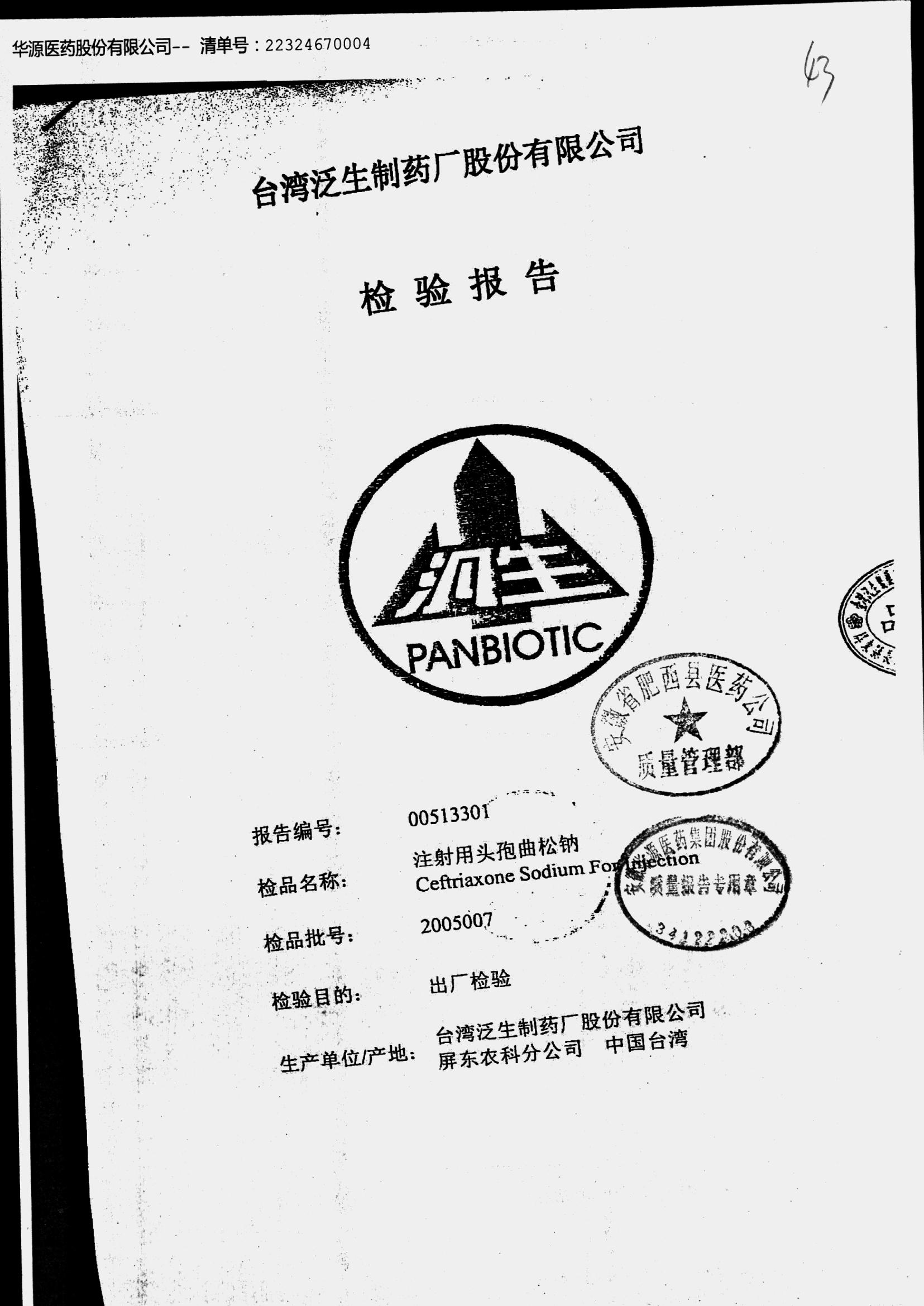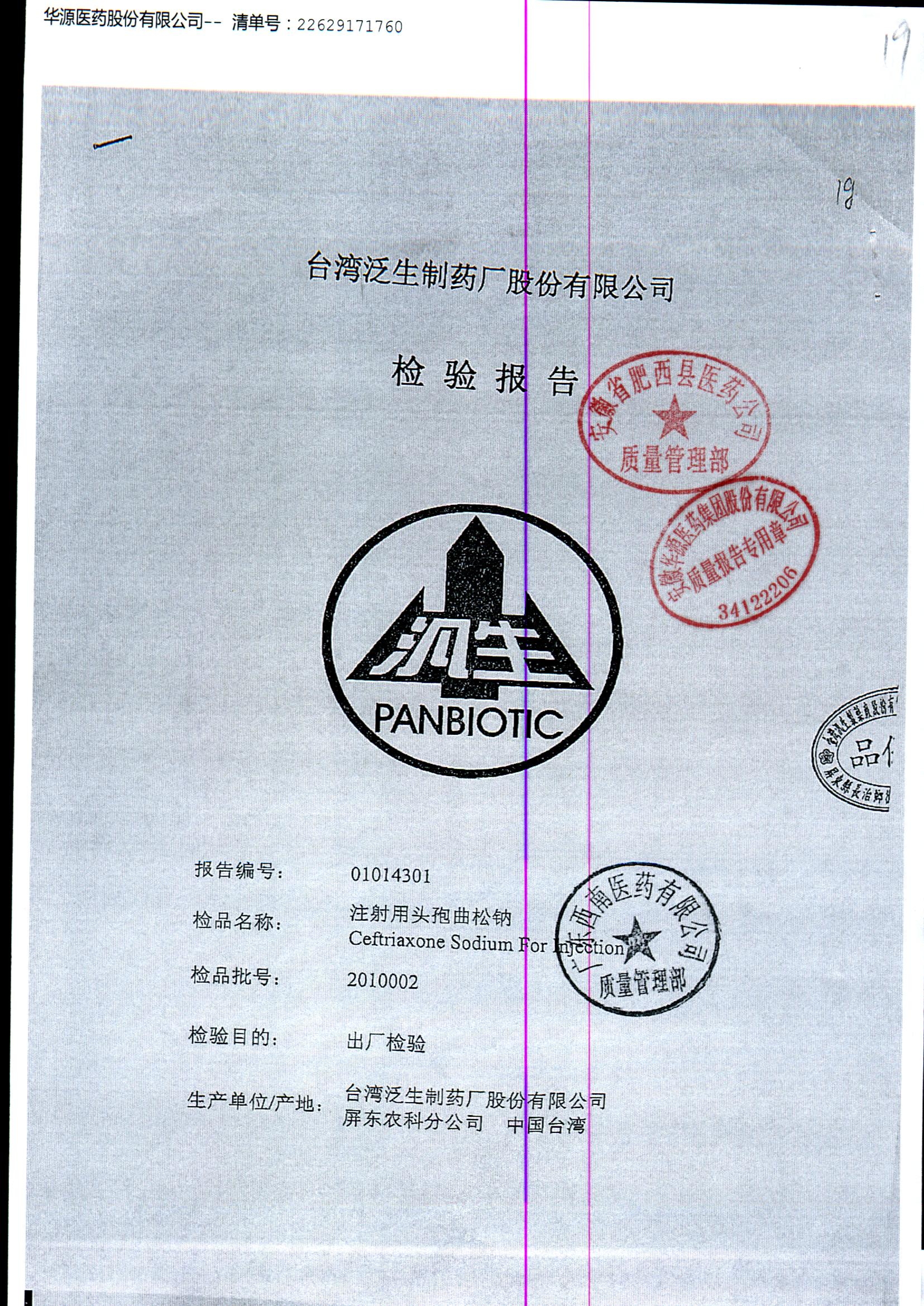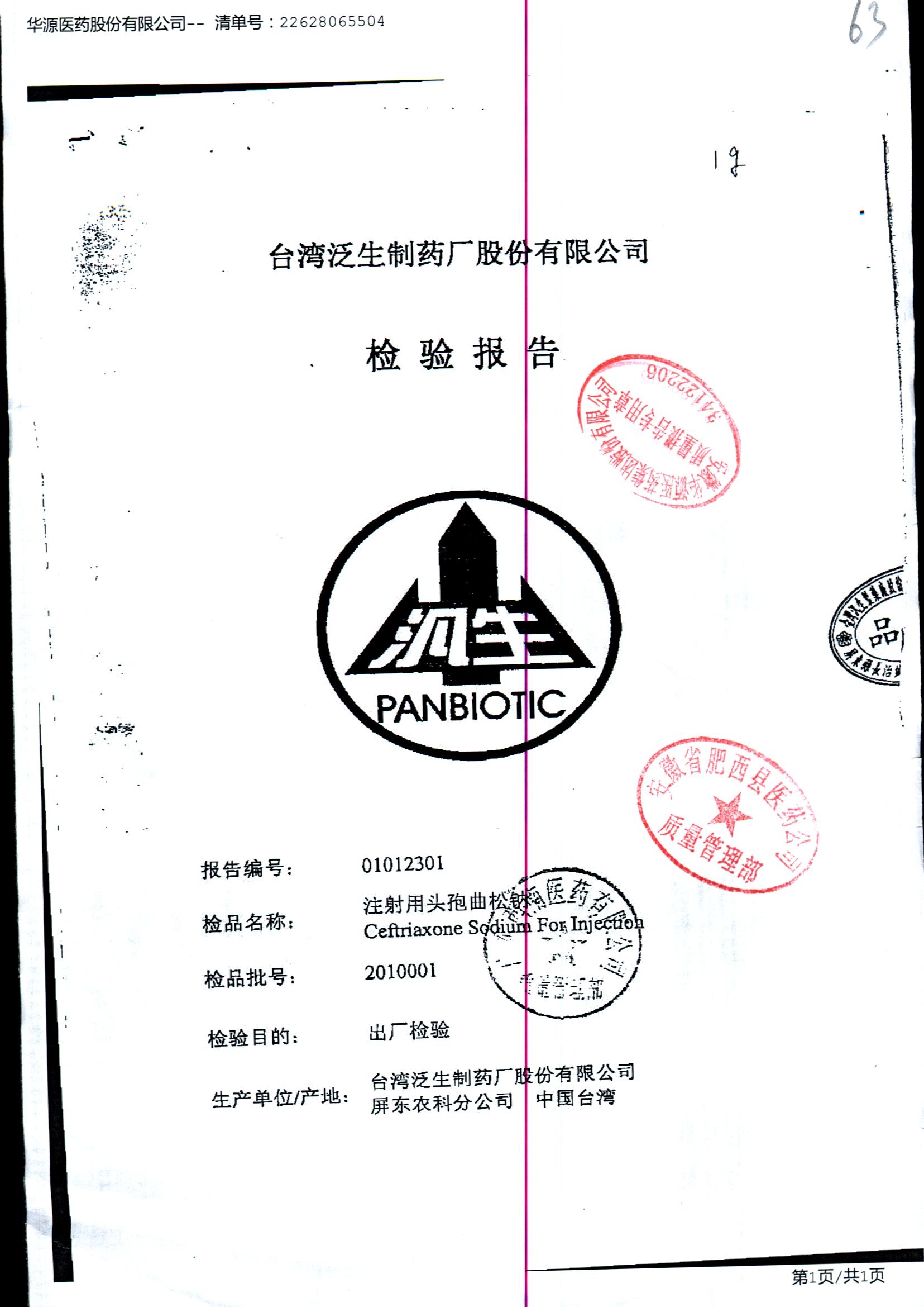 名称 | 规格 | 批号 | 药检报告 |