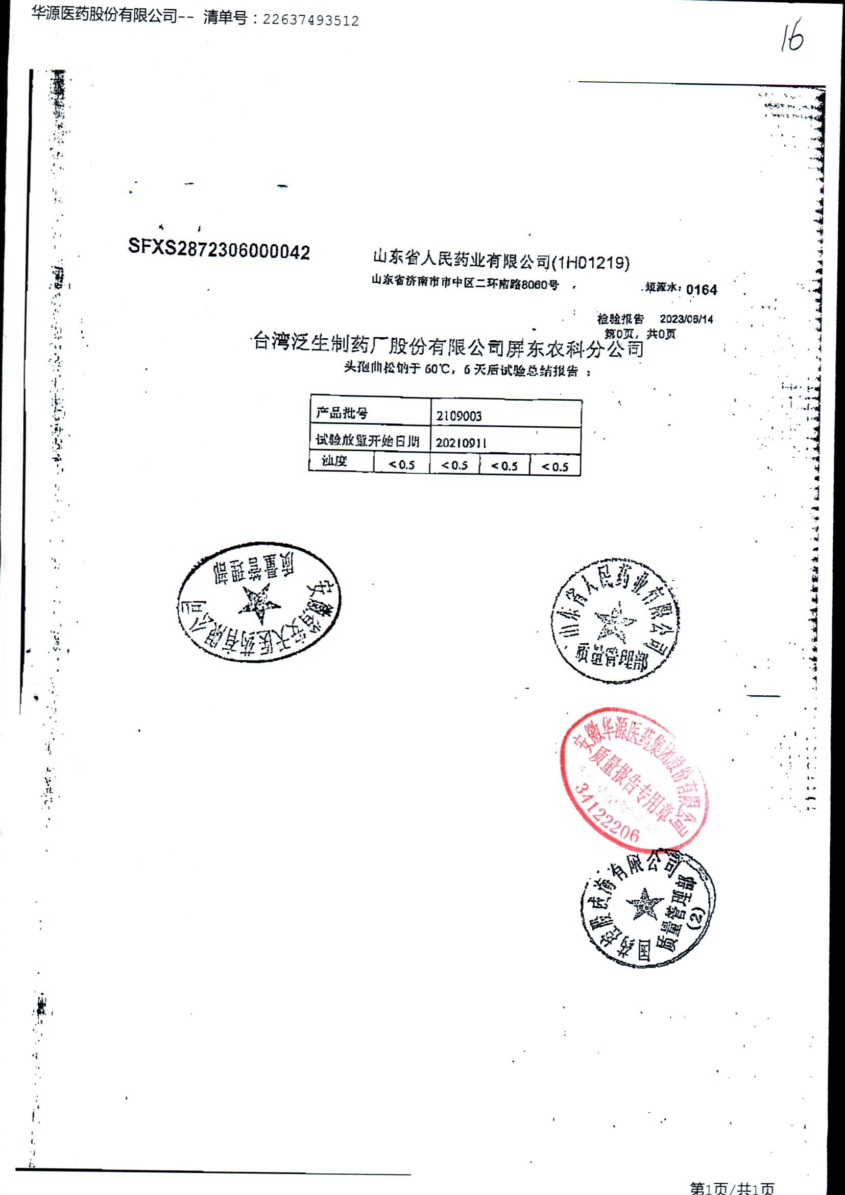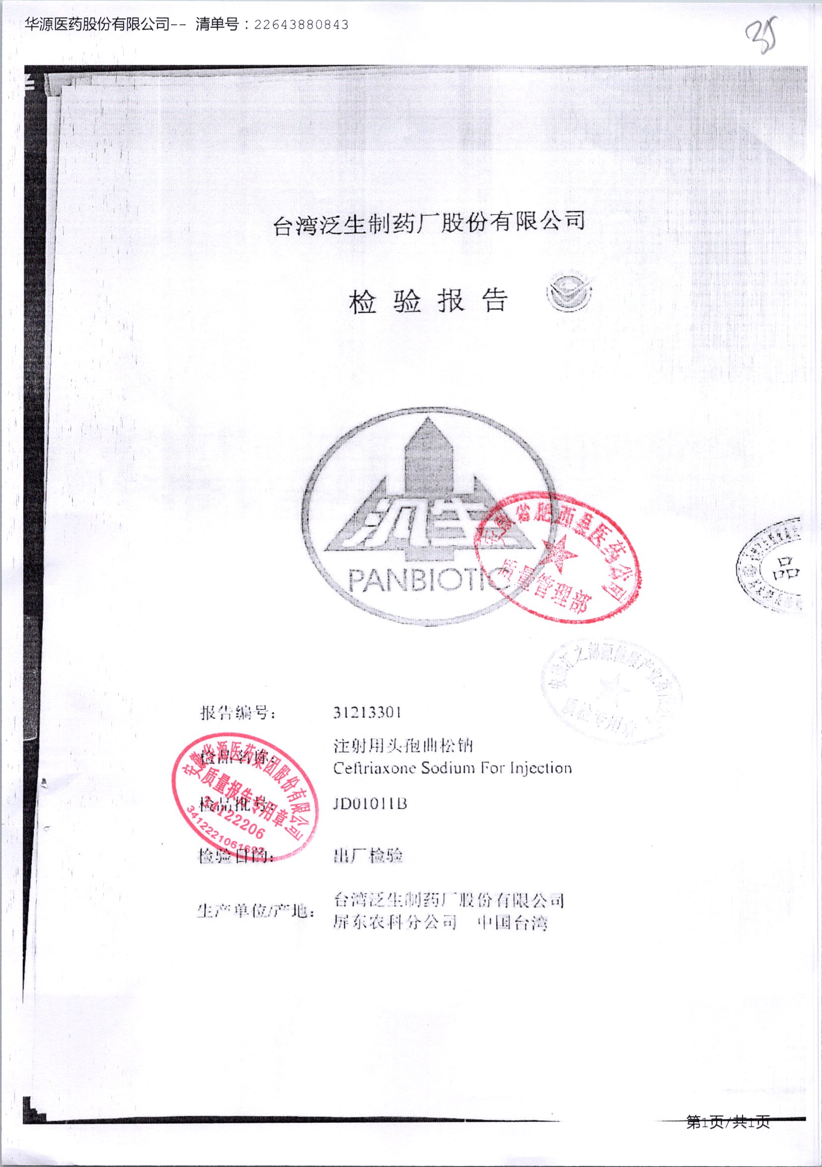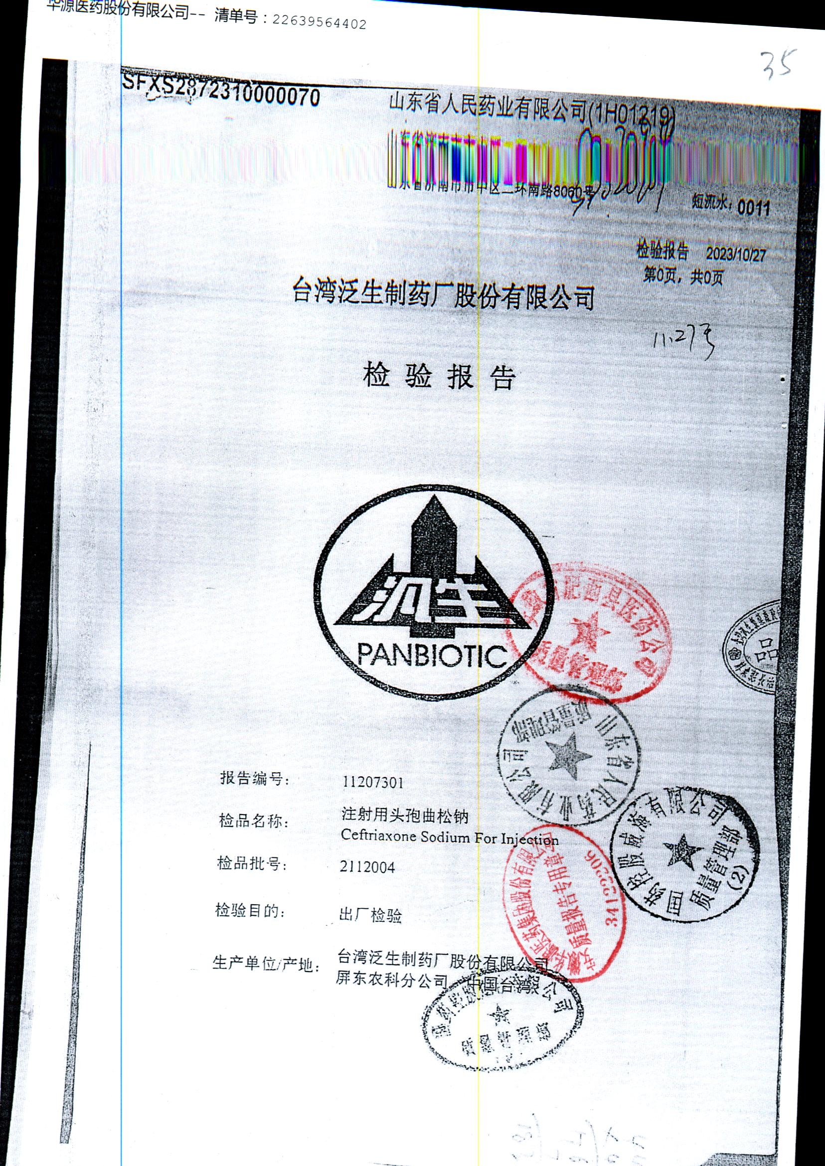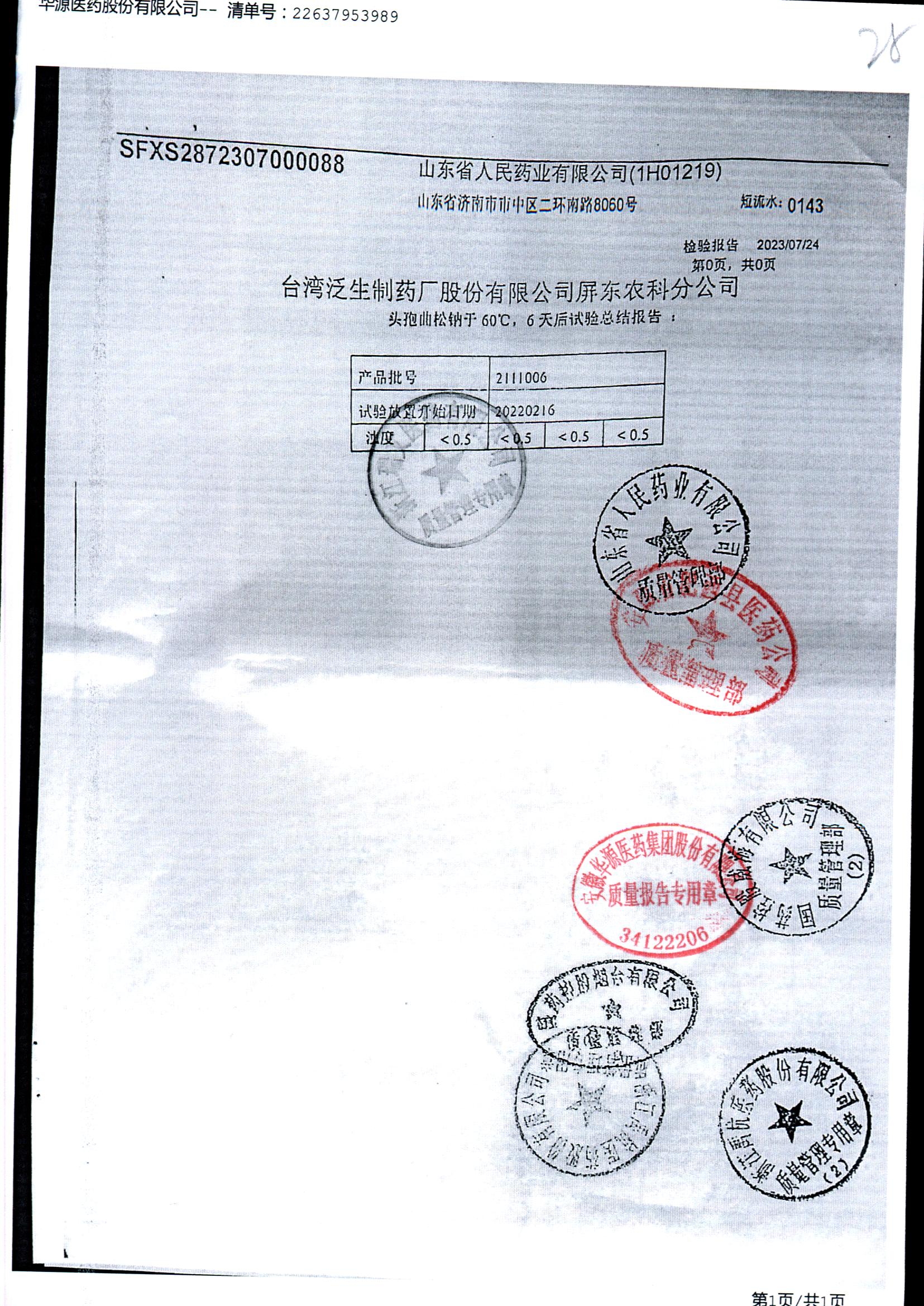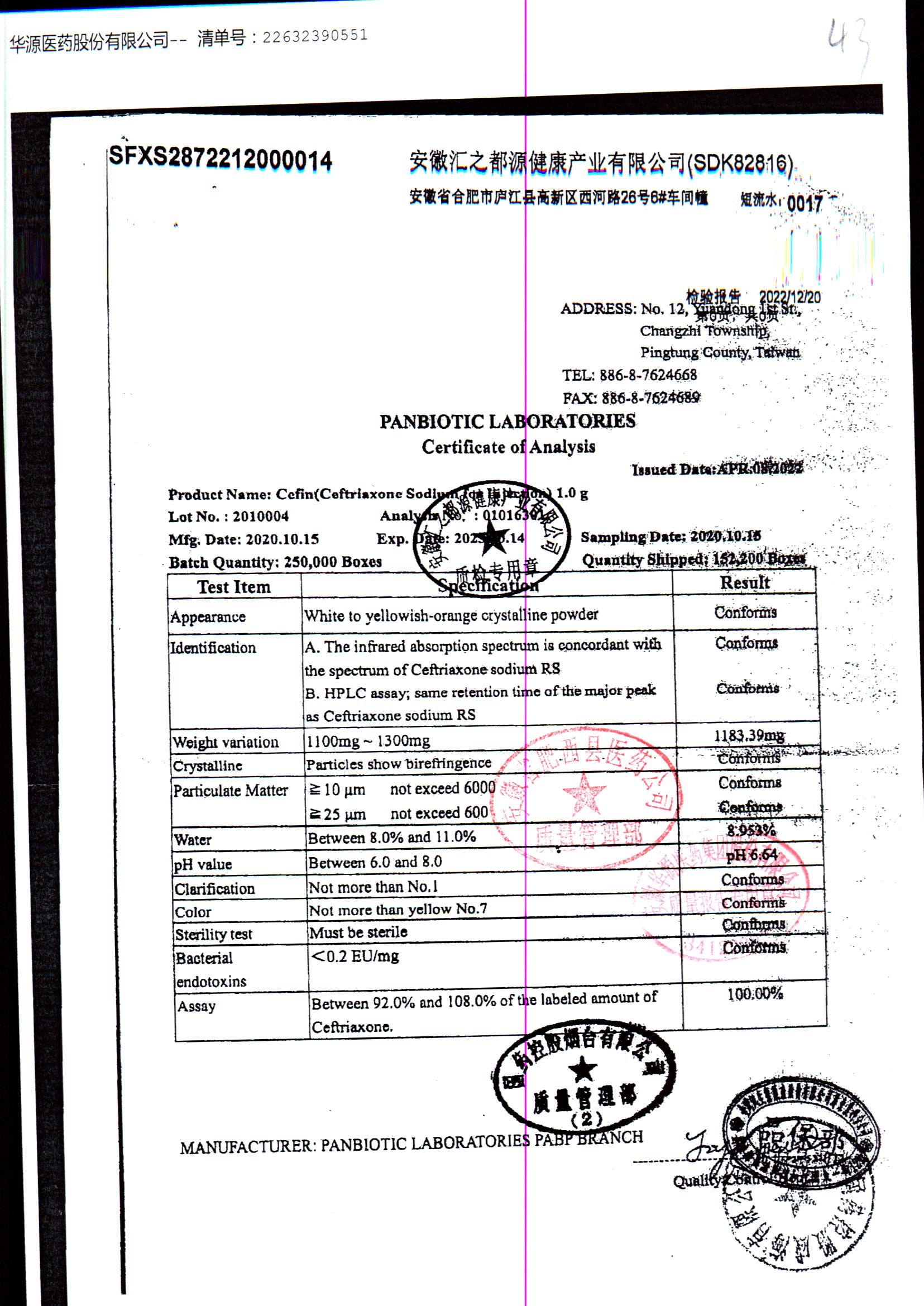 名称 | 规格 | 批号 | 药检报告 |