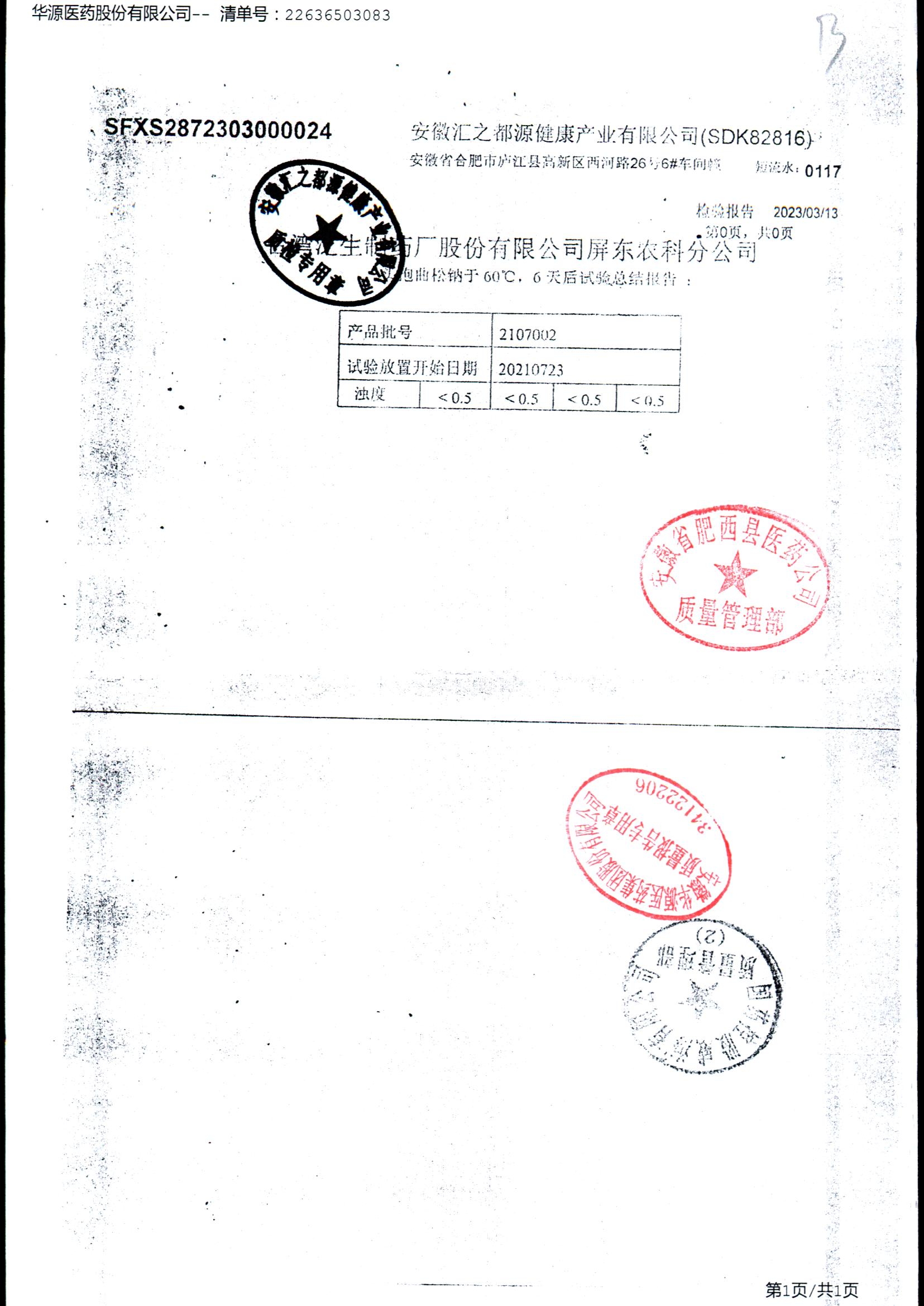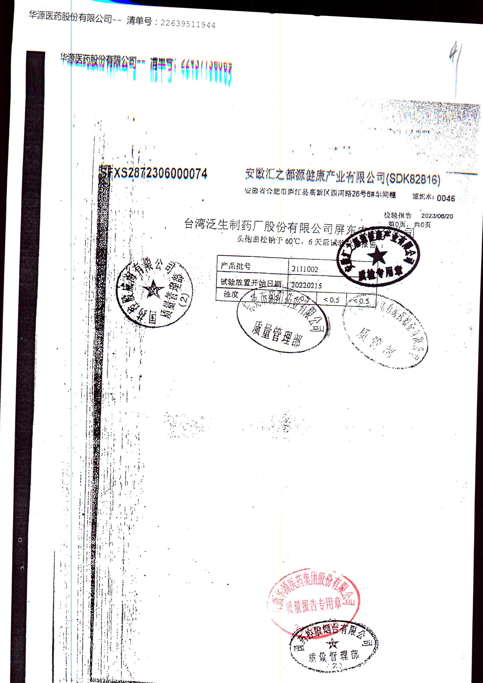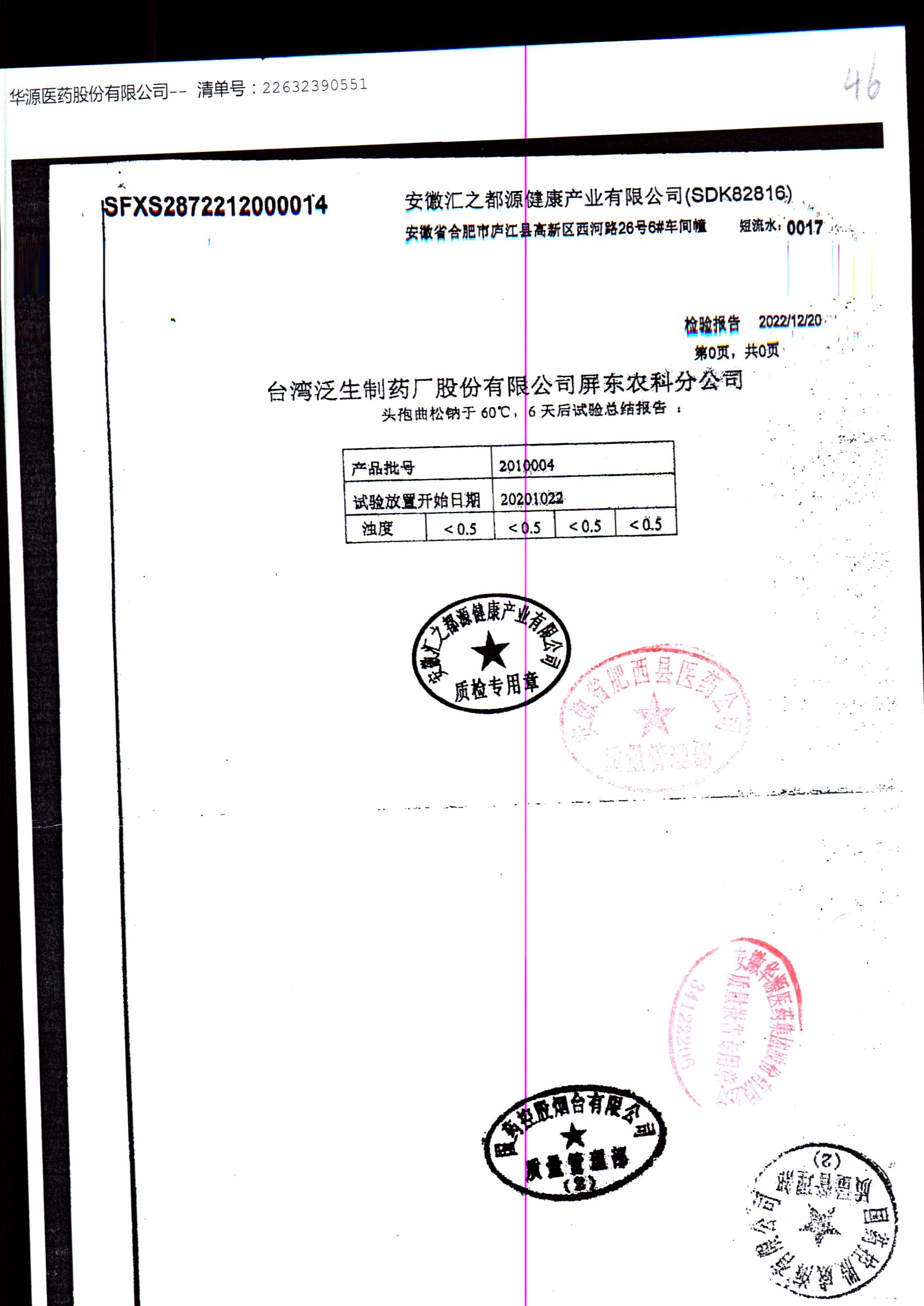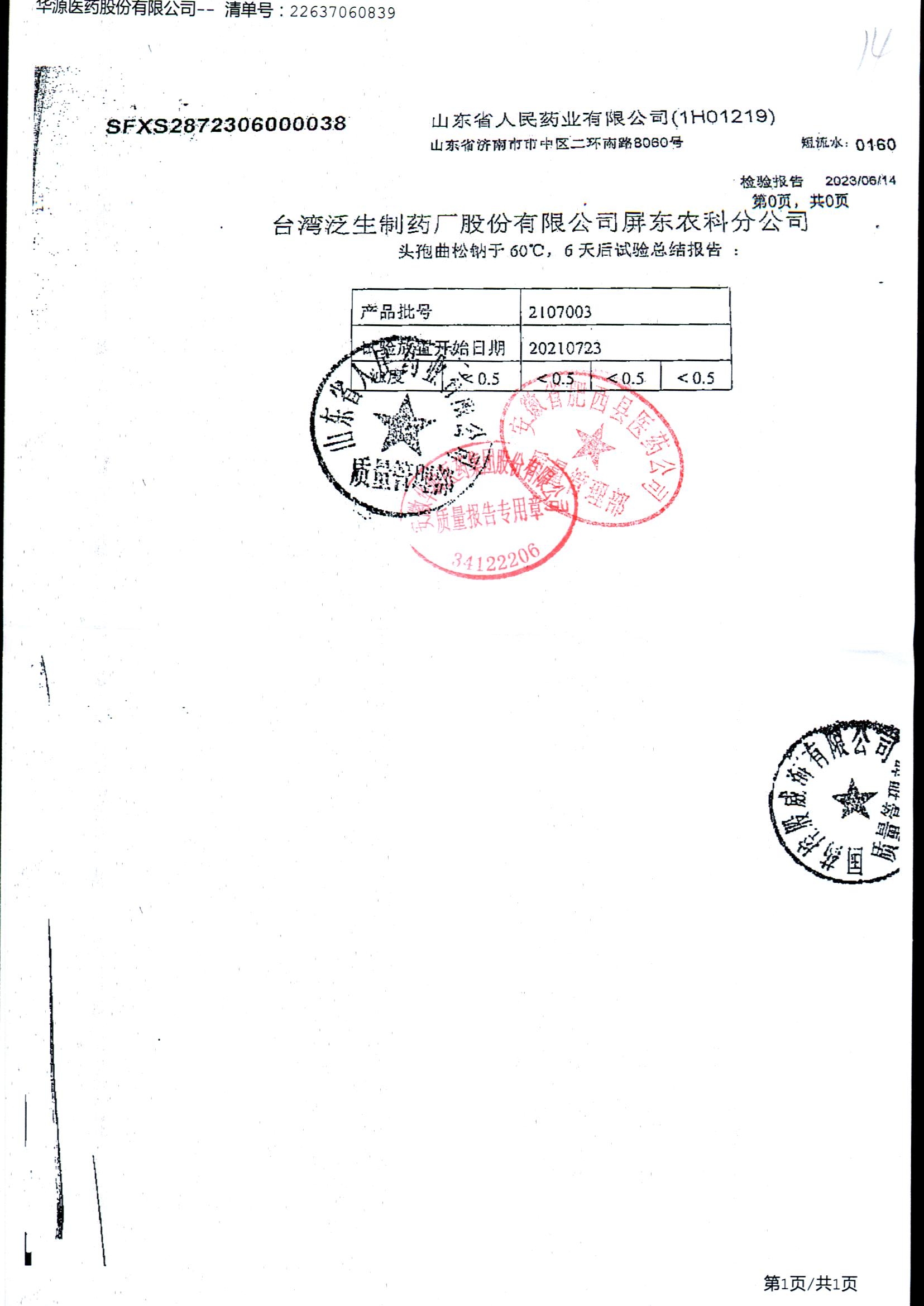 名称 | 规格 | 批号 | 药检报告 |