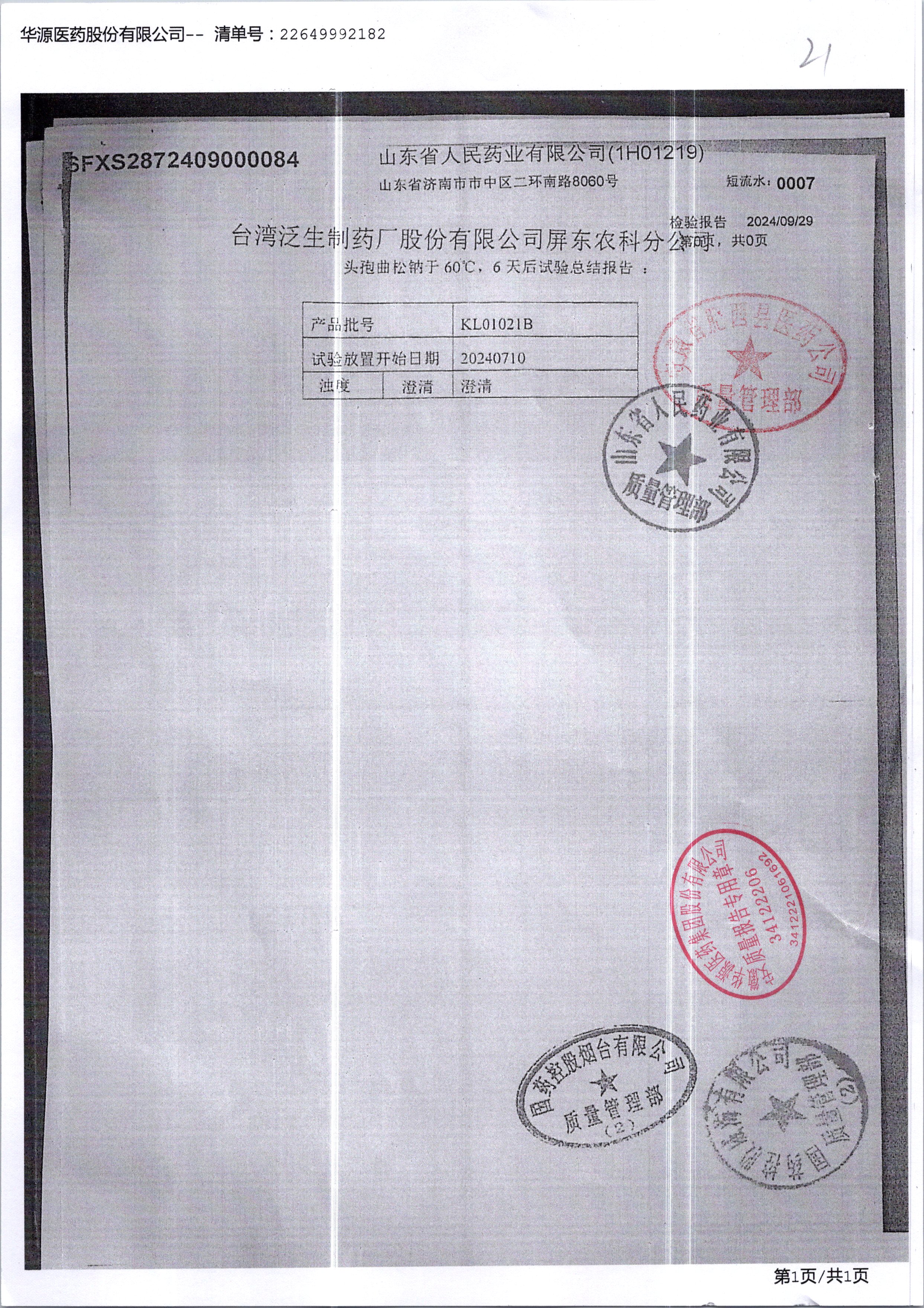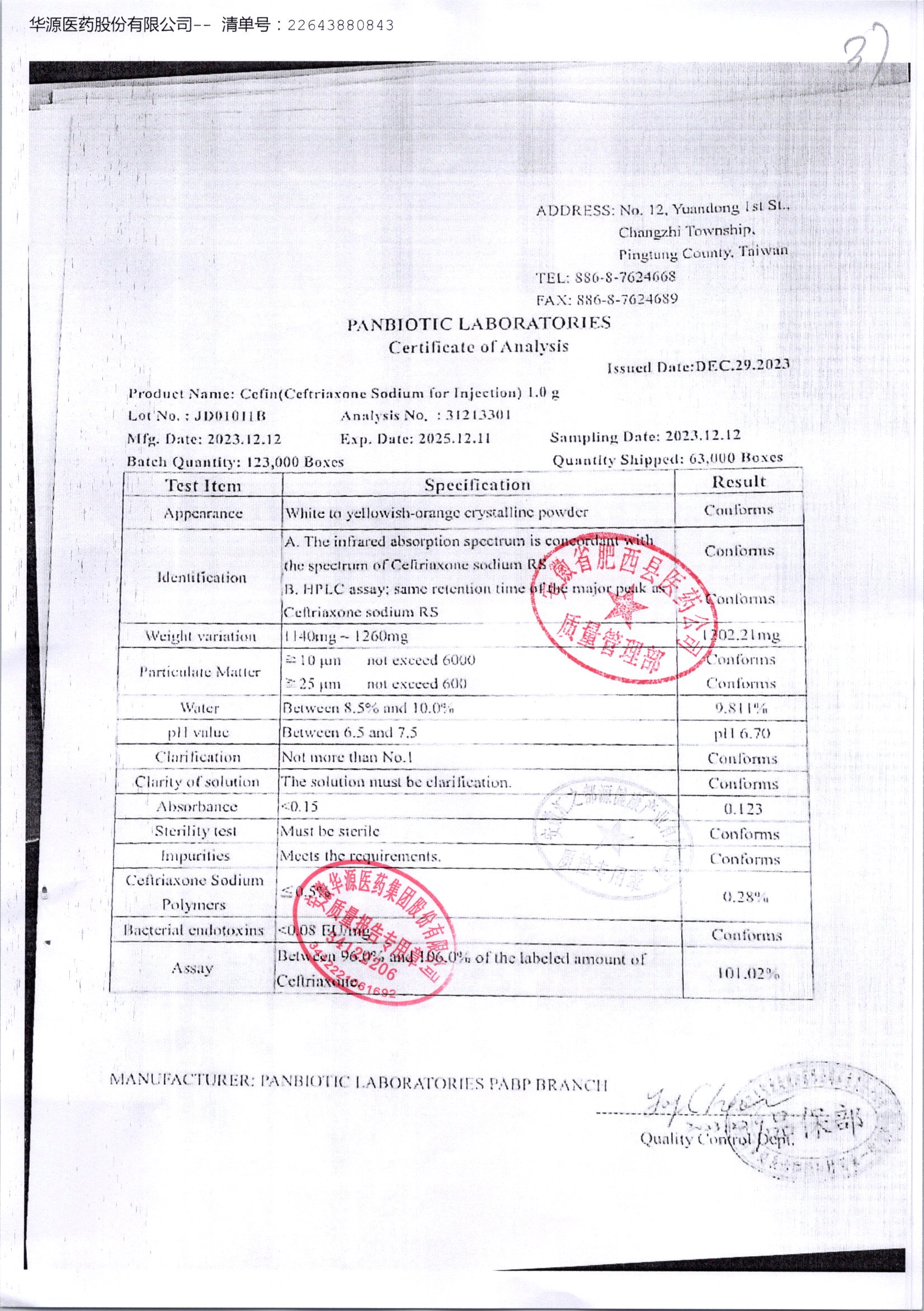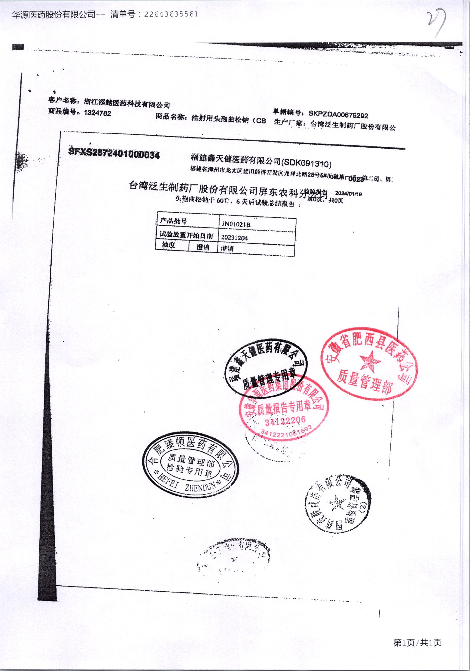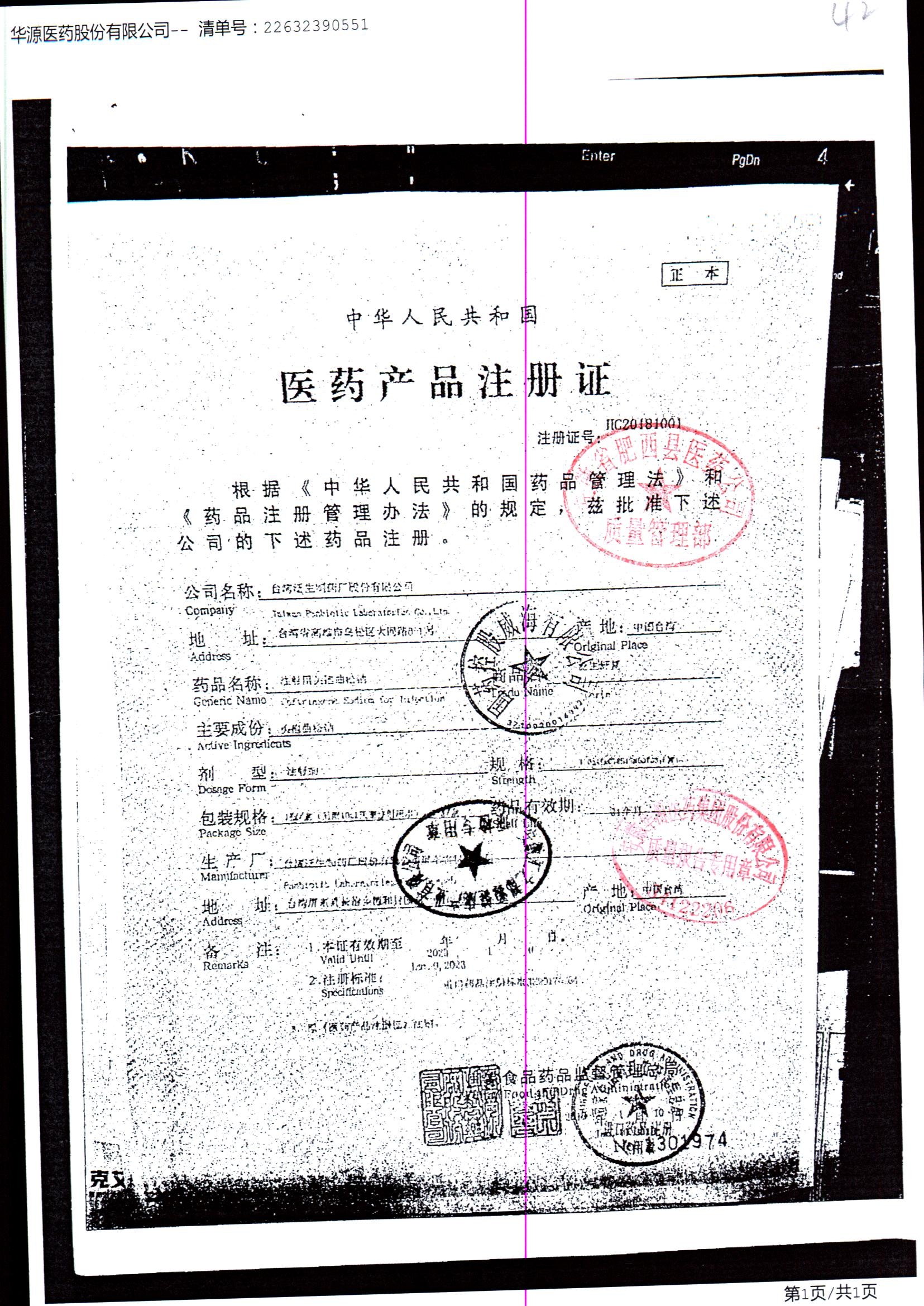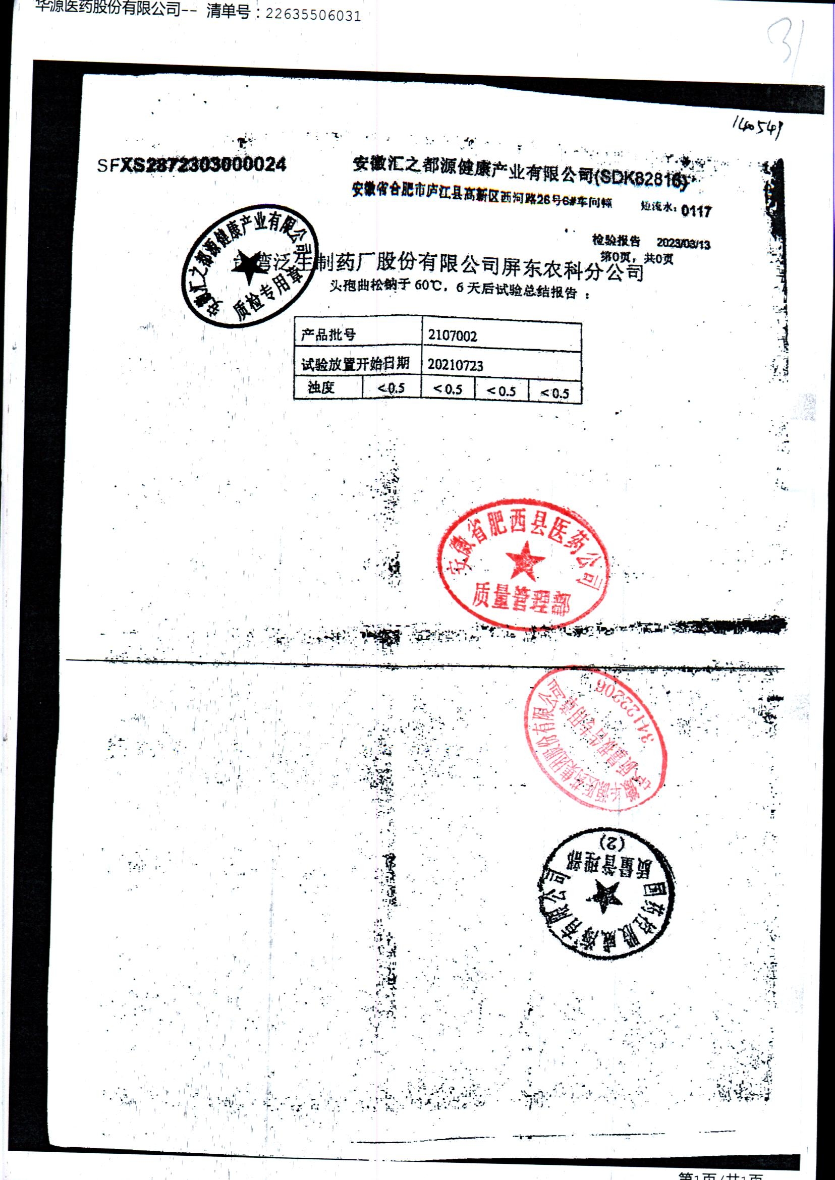 名称 | 规格 | 批号 | 药检报告 |