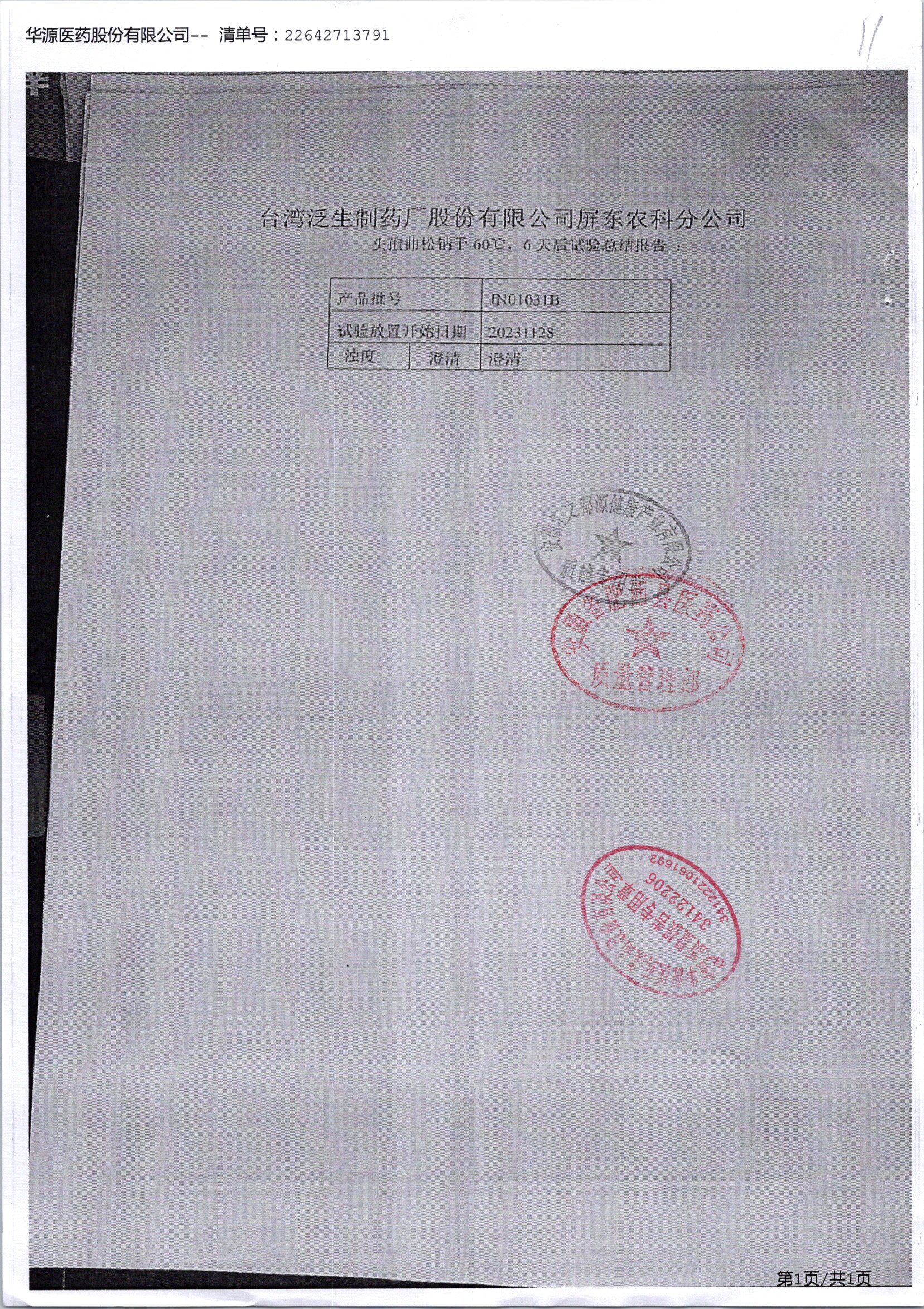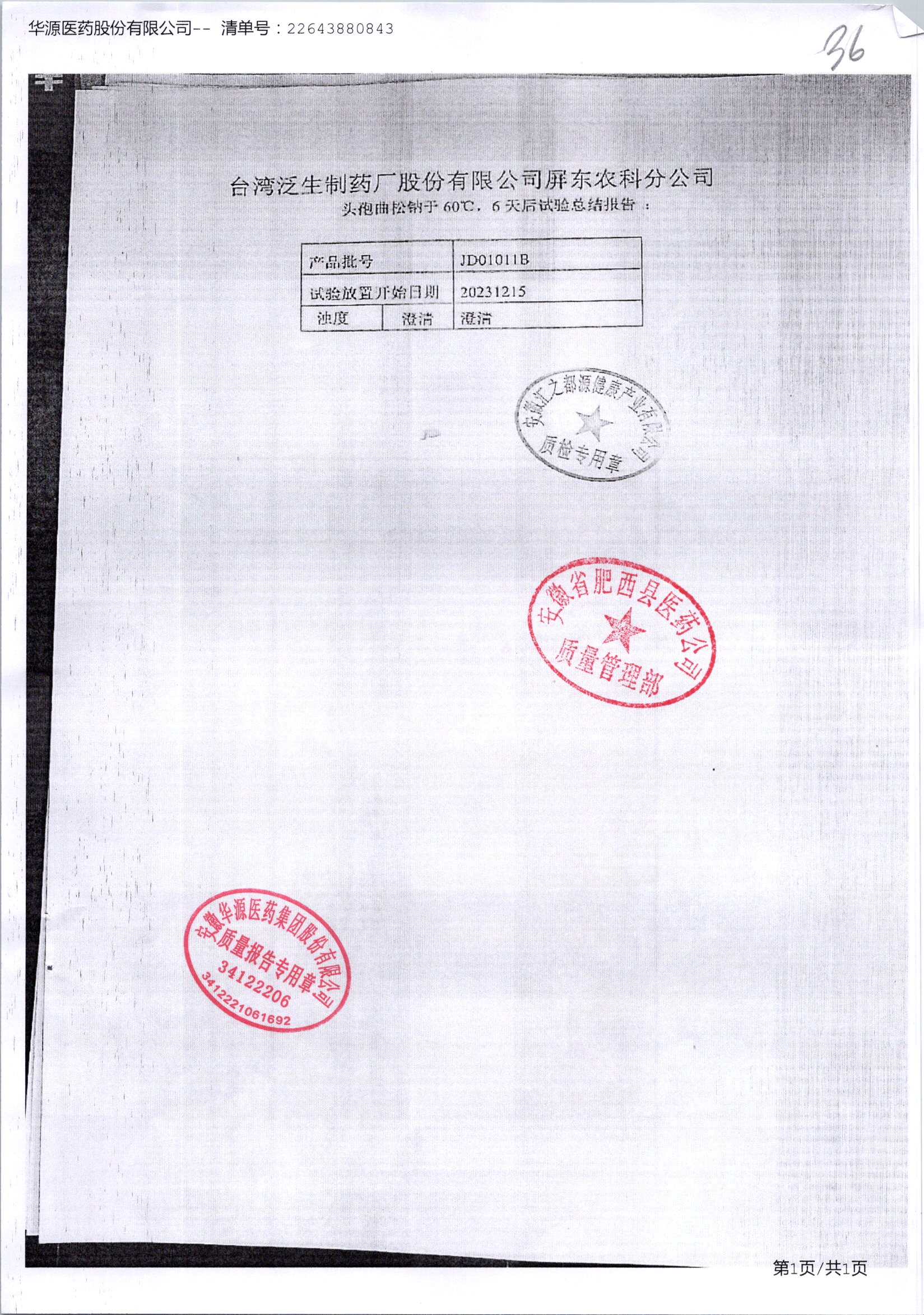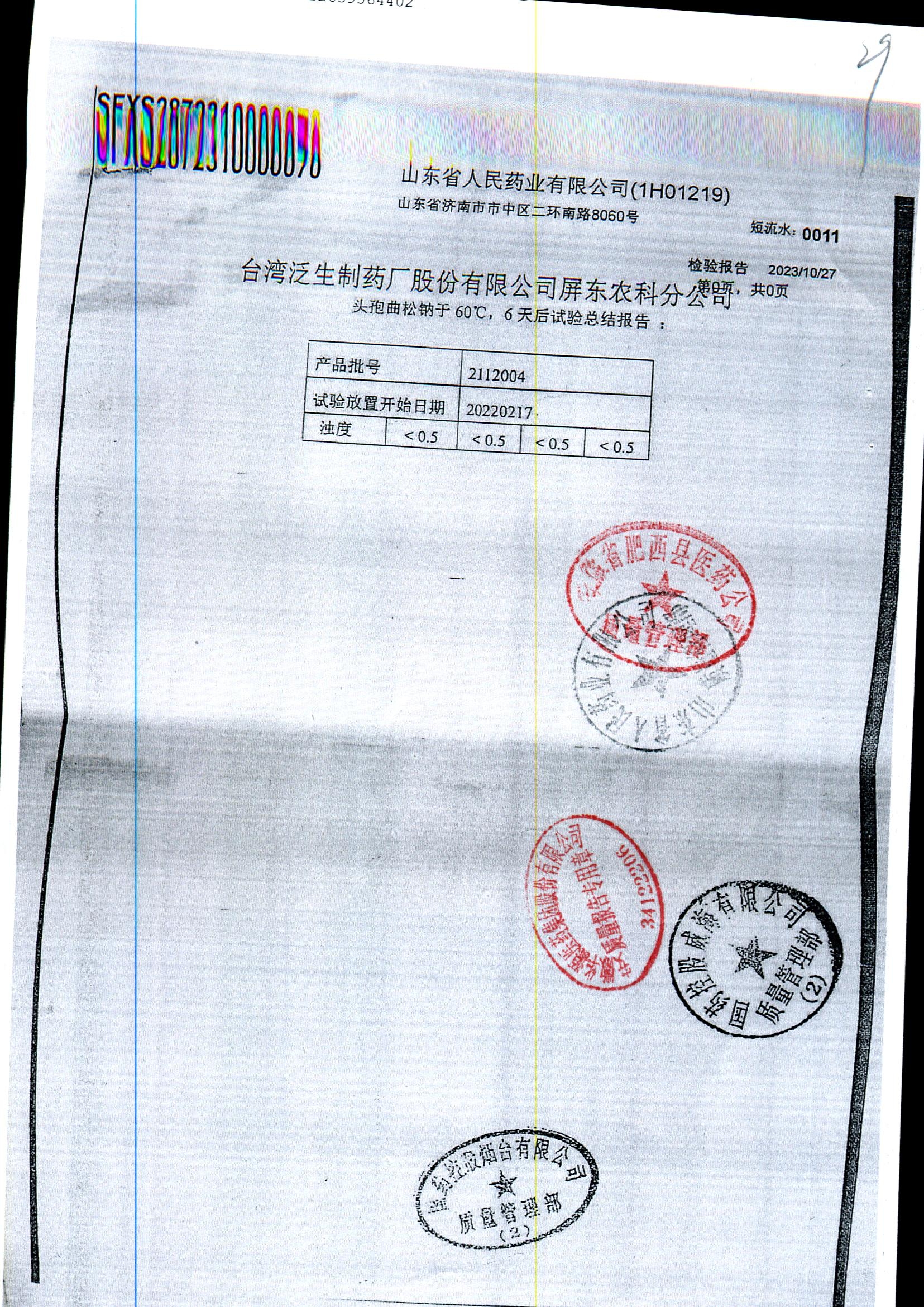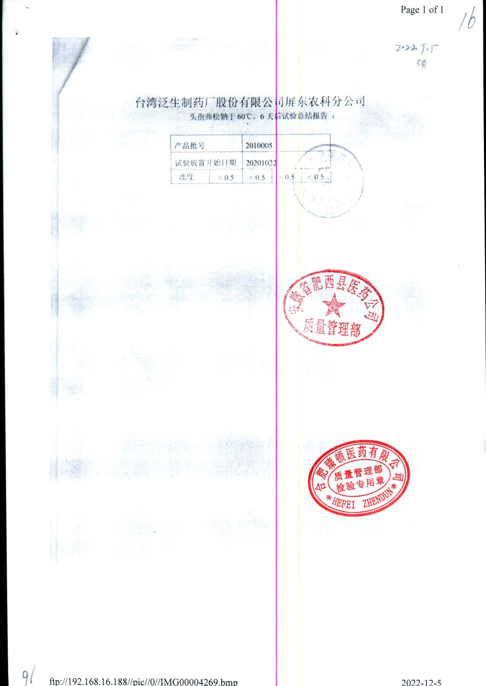 名称 | 规格 | 批号 | 药检报告 |