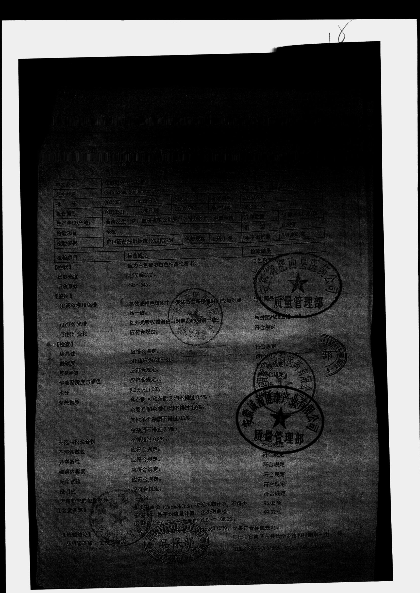 注射用头孢曲松钠 | 1.0g | 2005008/1 | 查看详情 |
