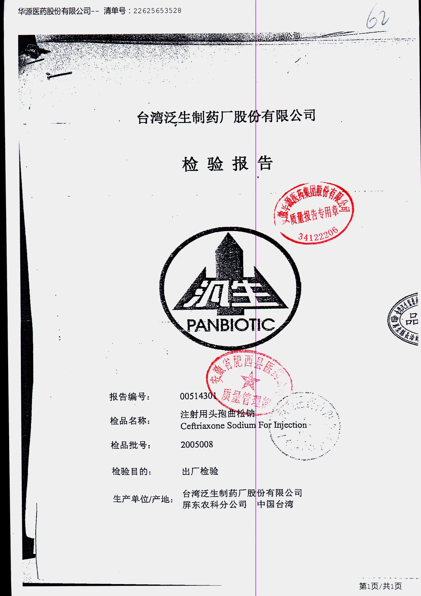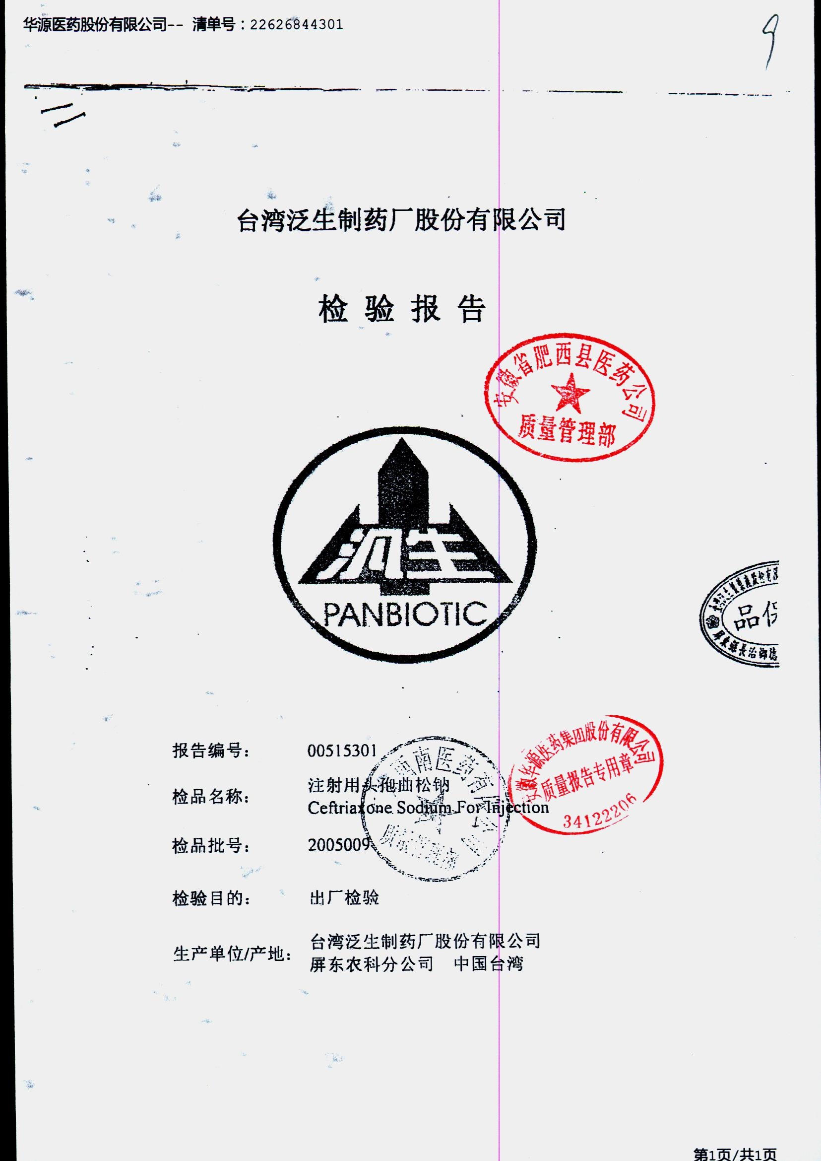 注射用头孢曲松钠 | 1.0g | 2005008/5 | 查看详情 |