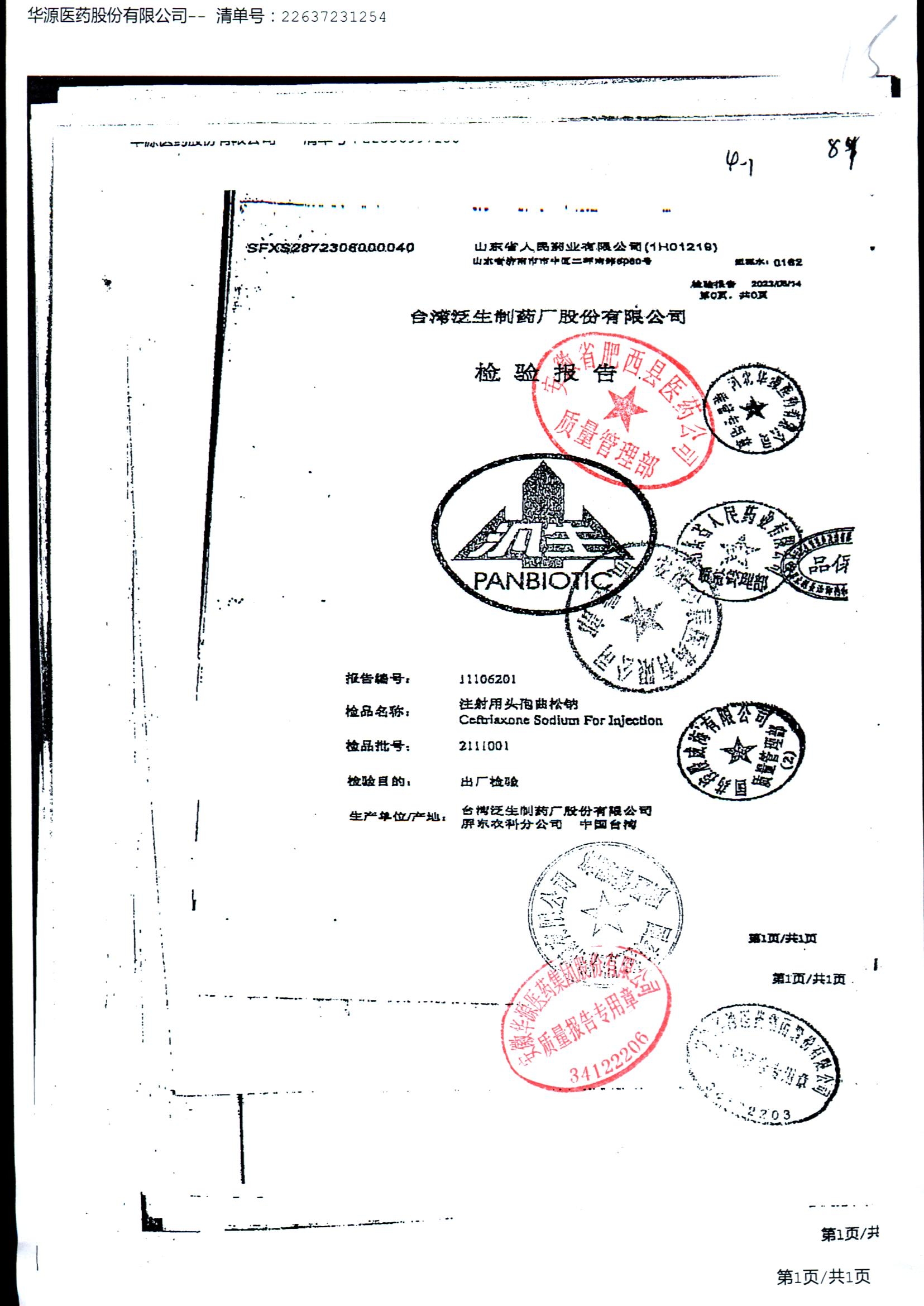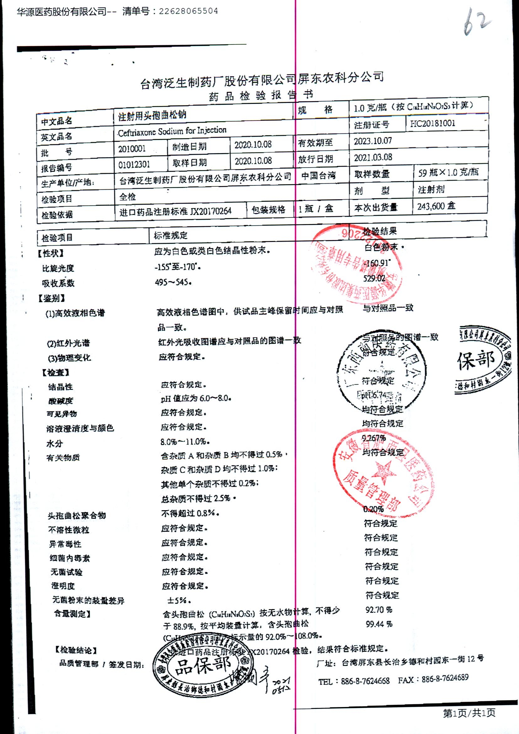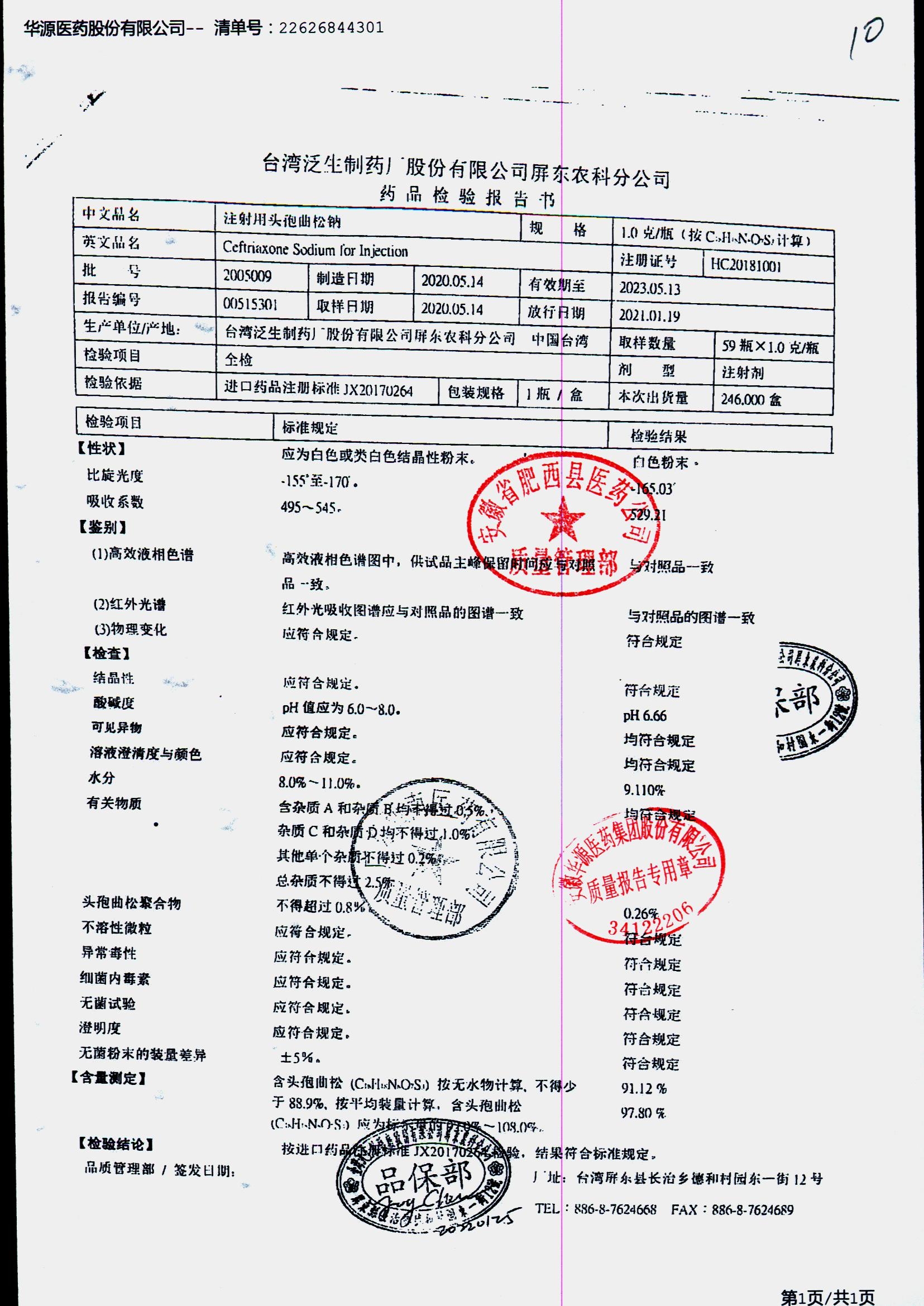 注射用头孢曲松钠 | 1.0g | 2111001/2 | 查看详情 |