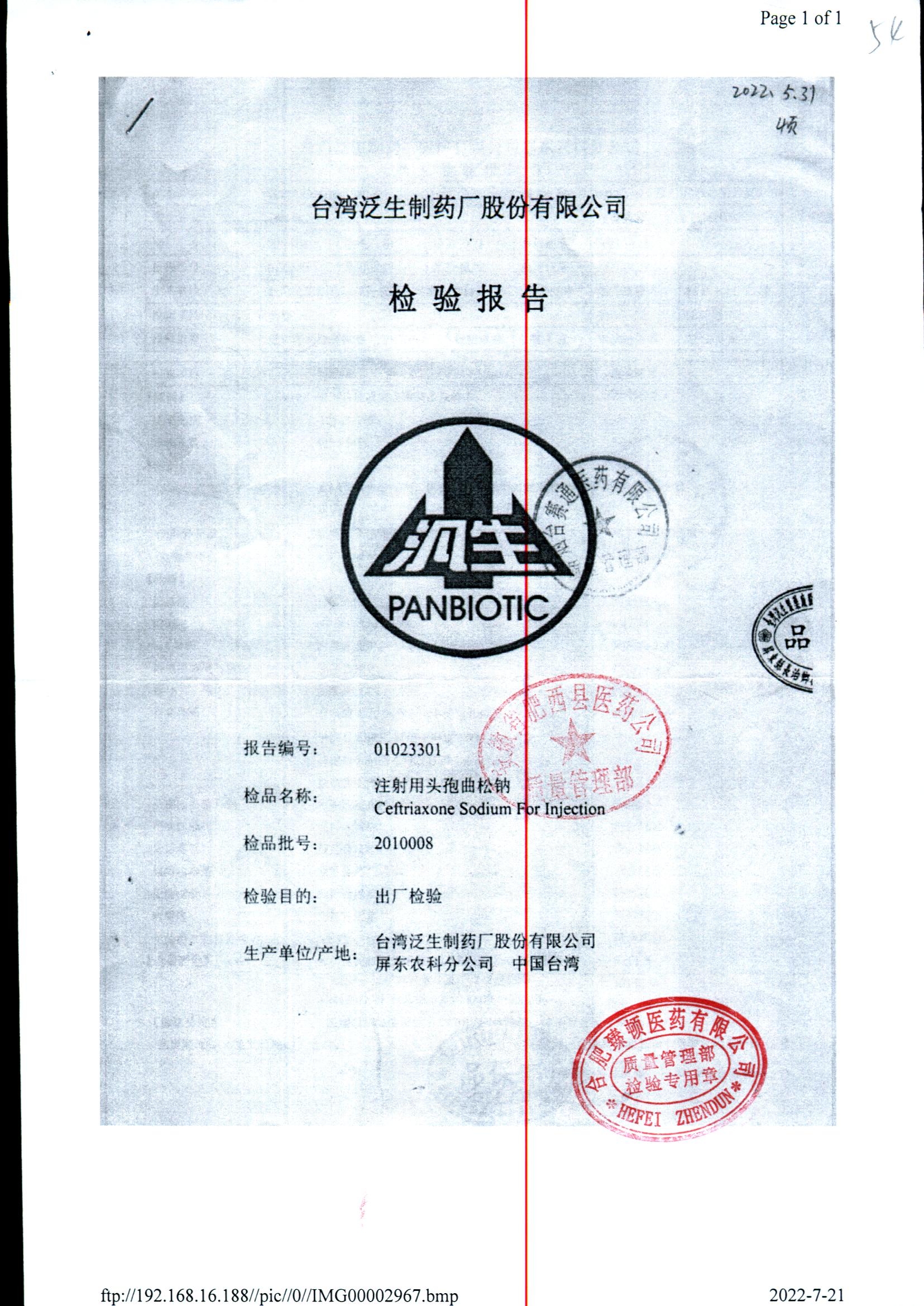 注射用头孢曲松钠 | 1.0g | KL01021B/5 | 查看详情 |