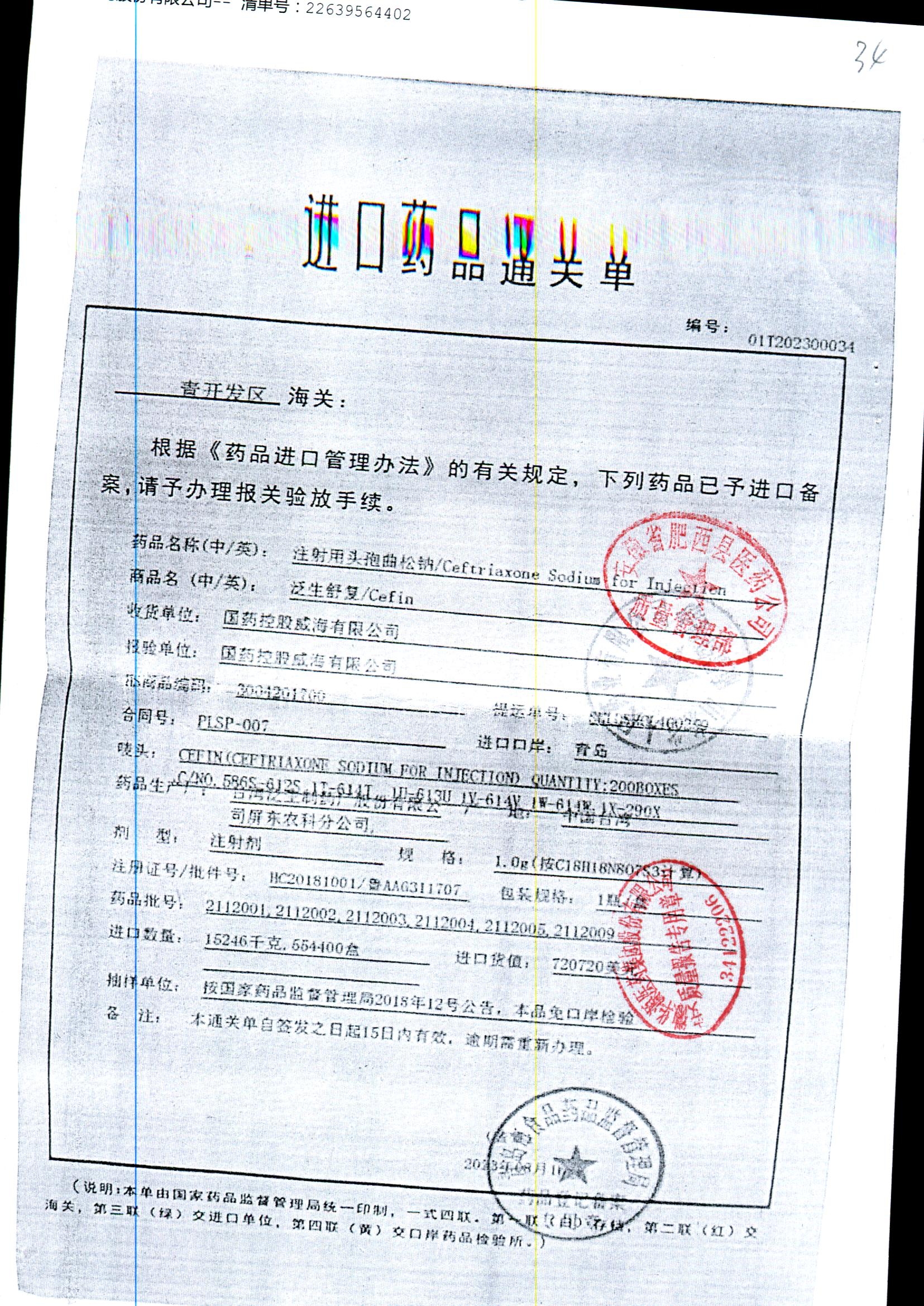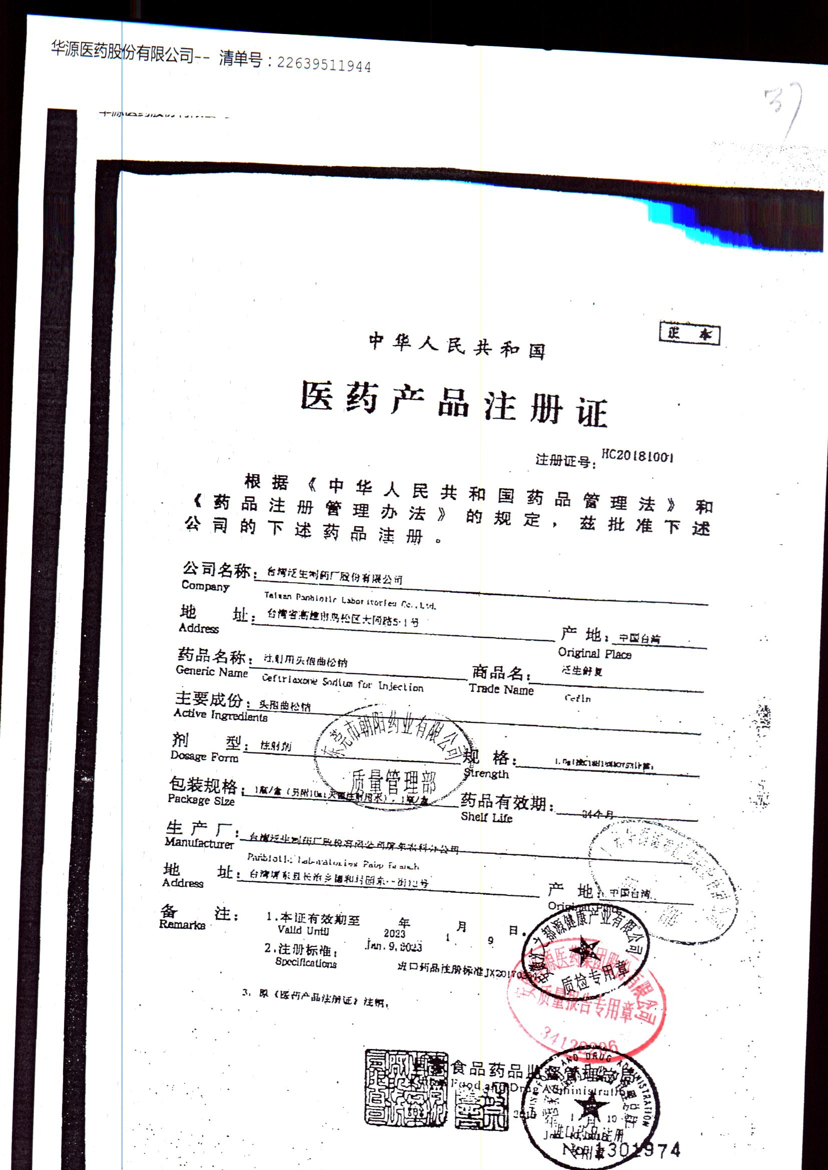 注射用头孢曲松钠 | 1.0g | JN01031B/4 | 查看详情 |
