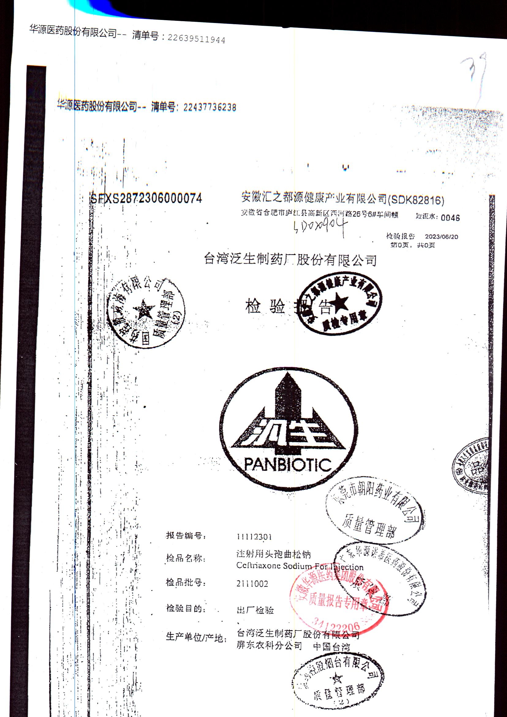 注射用头孢曲松钠 | 1.0g | 2112004/6 | 查看详情 |