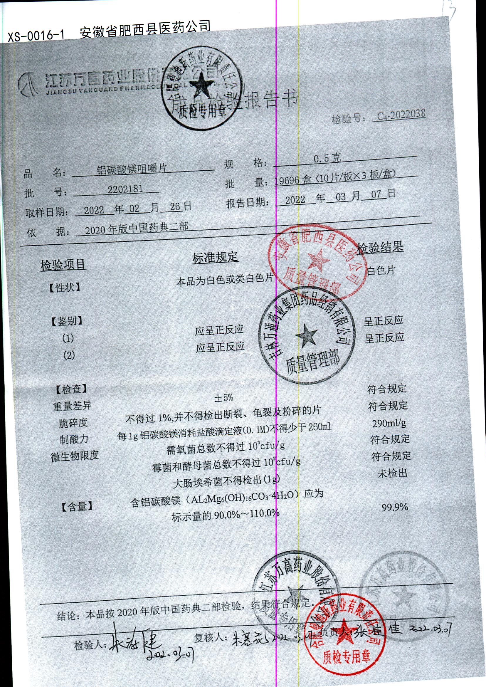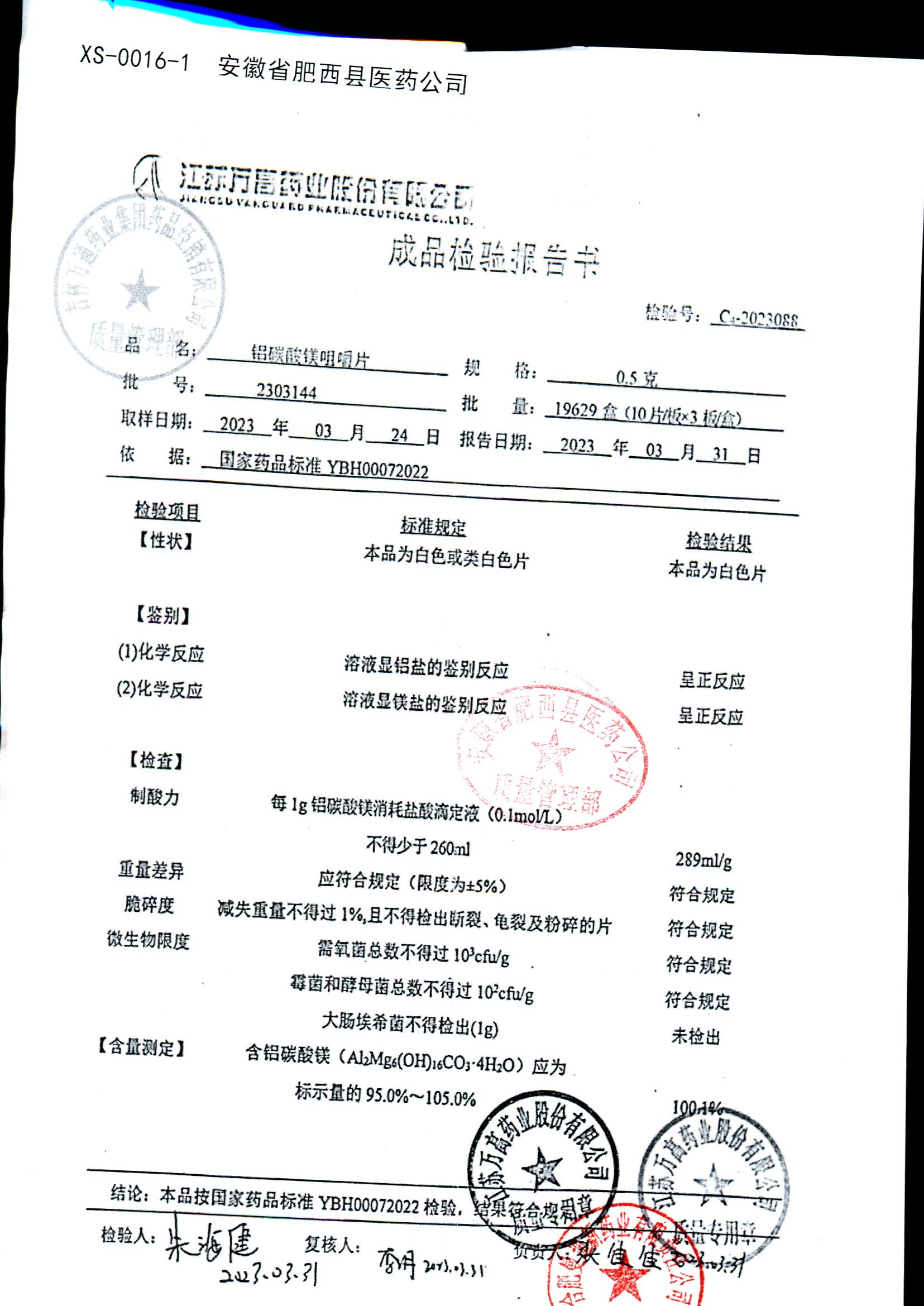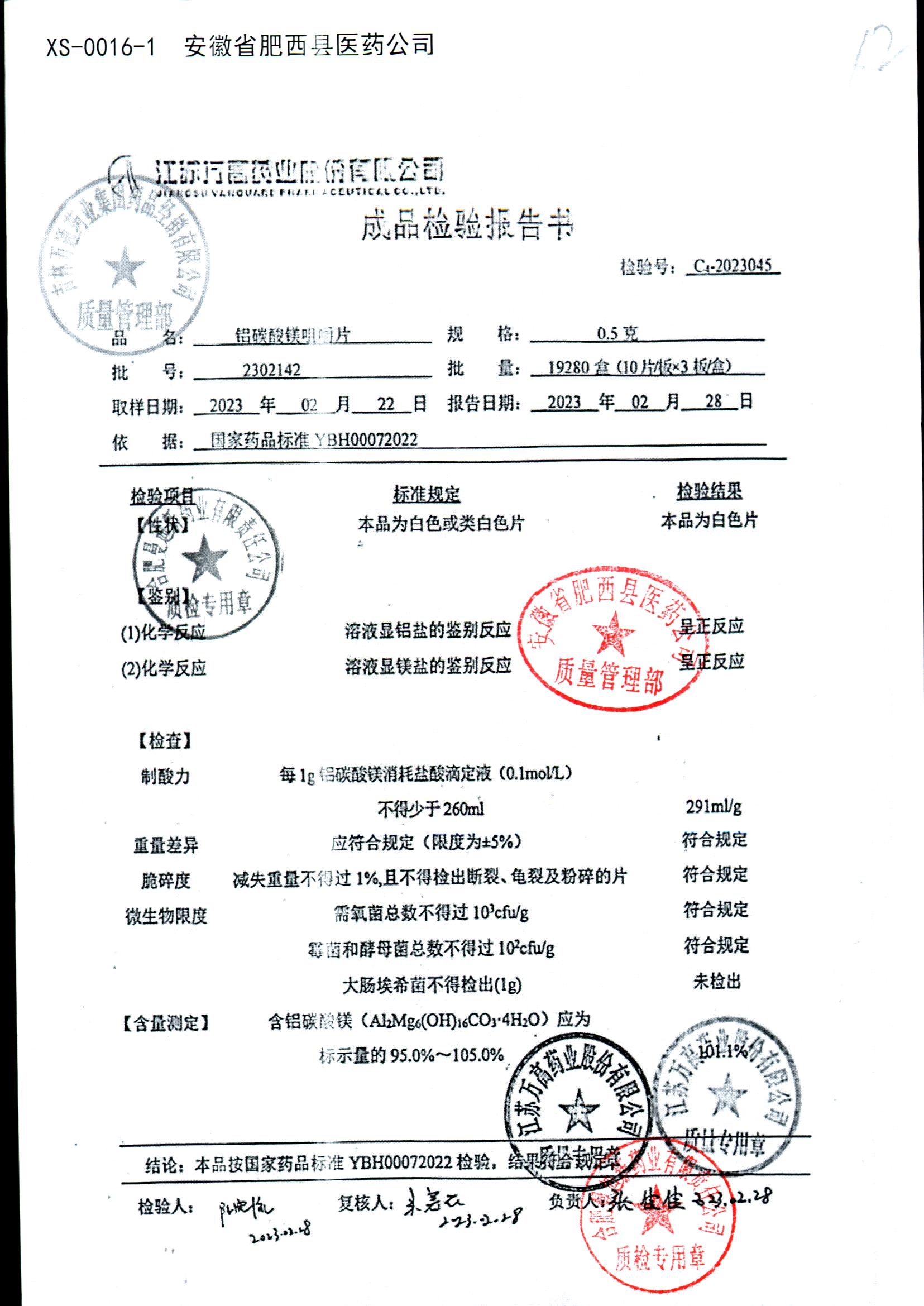 铝碳酸镁咀嚼片 | 0.5g*30片 | 2303144 | 查看详情 |