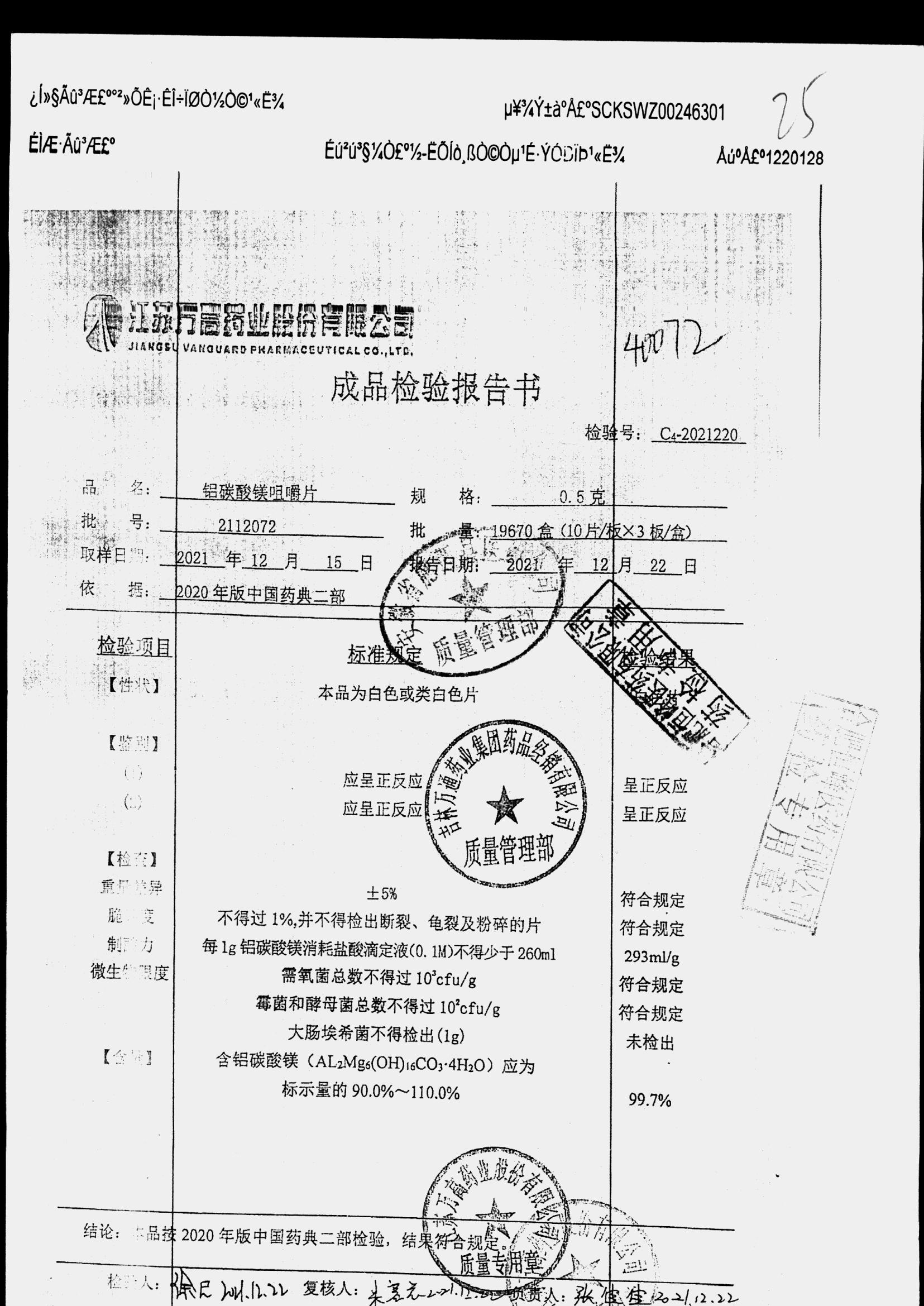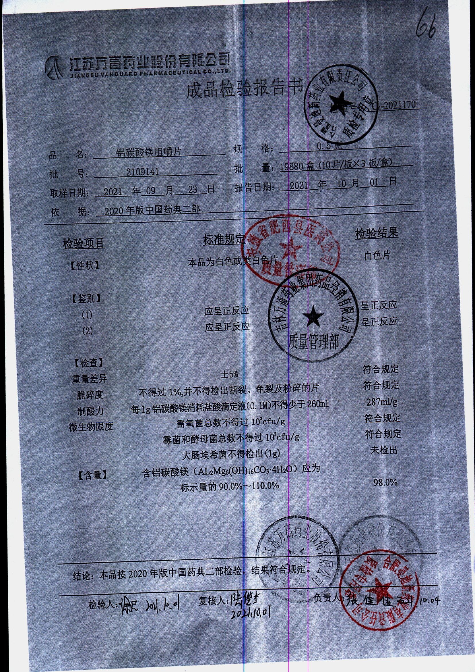 铝碳酸镁咀嚼片 | 0.5g*30片 | 2112072 | 查看详情 |
