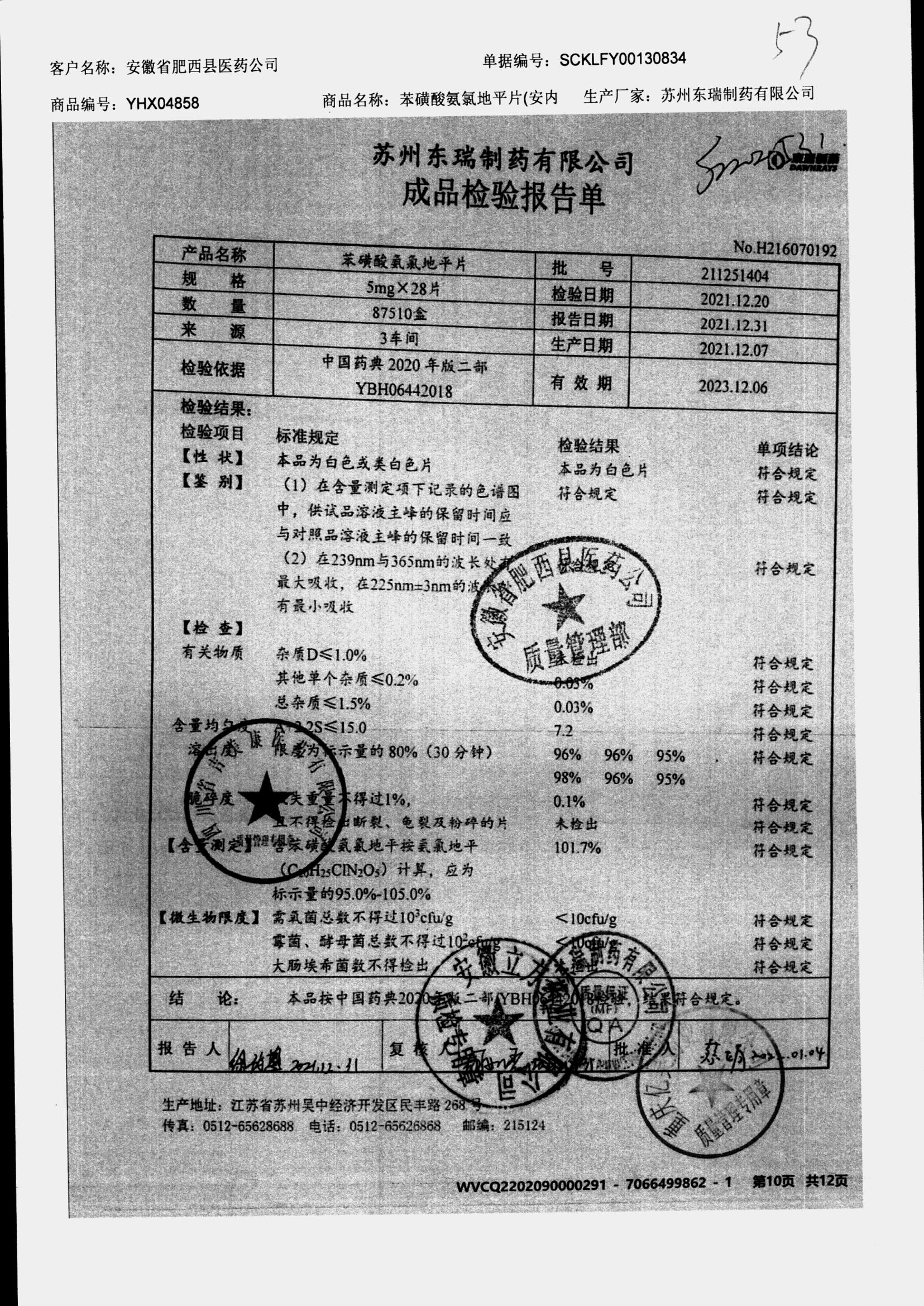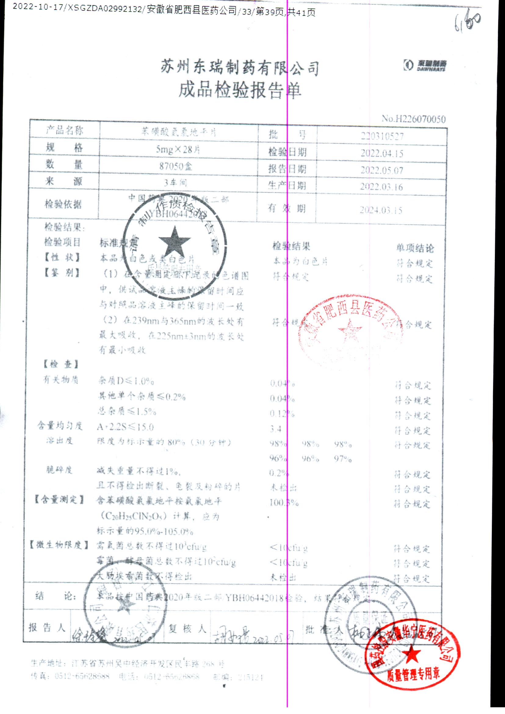 苯磺酸氨氯地平片 | 5mg*28片 | 220310525 | 查看详情 |