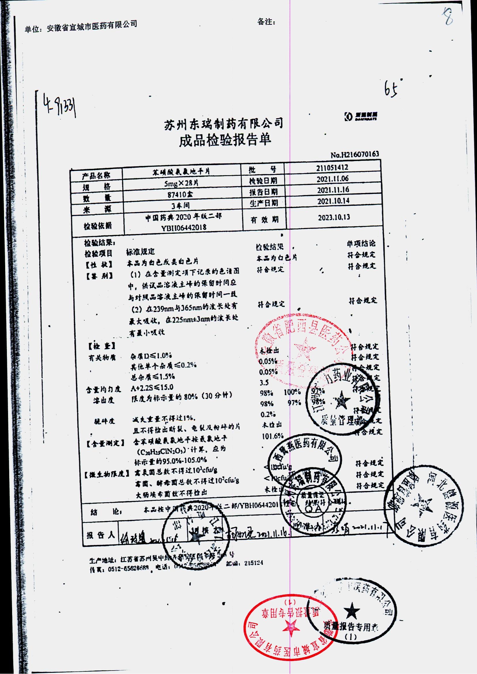 苯磺酸氨氯地平片 | 5mg*28片 | 211051412 | 查看详情 |