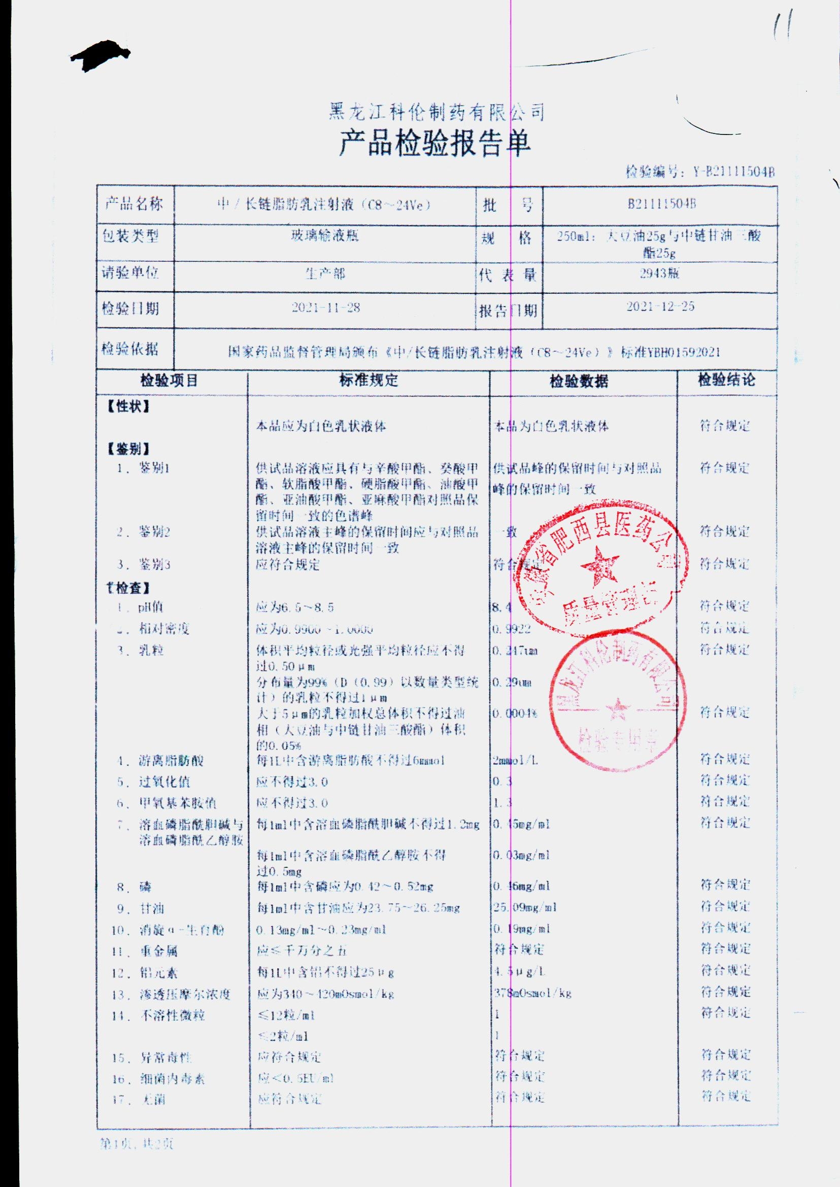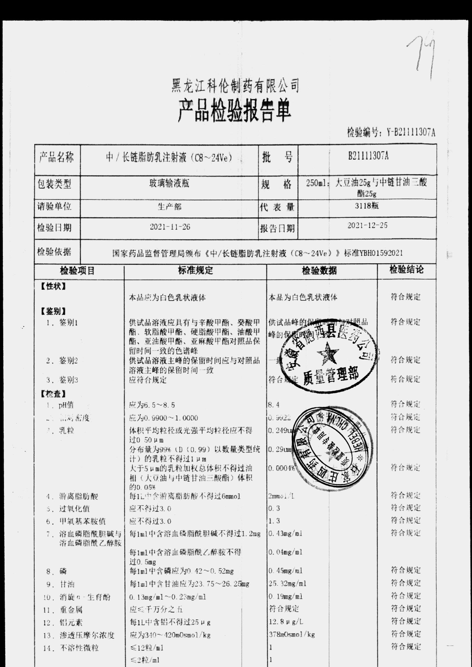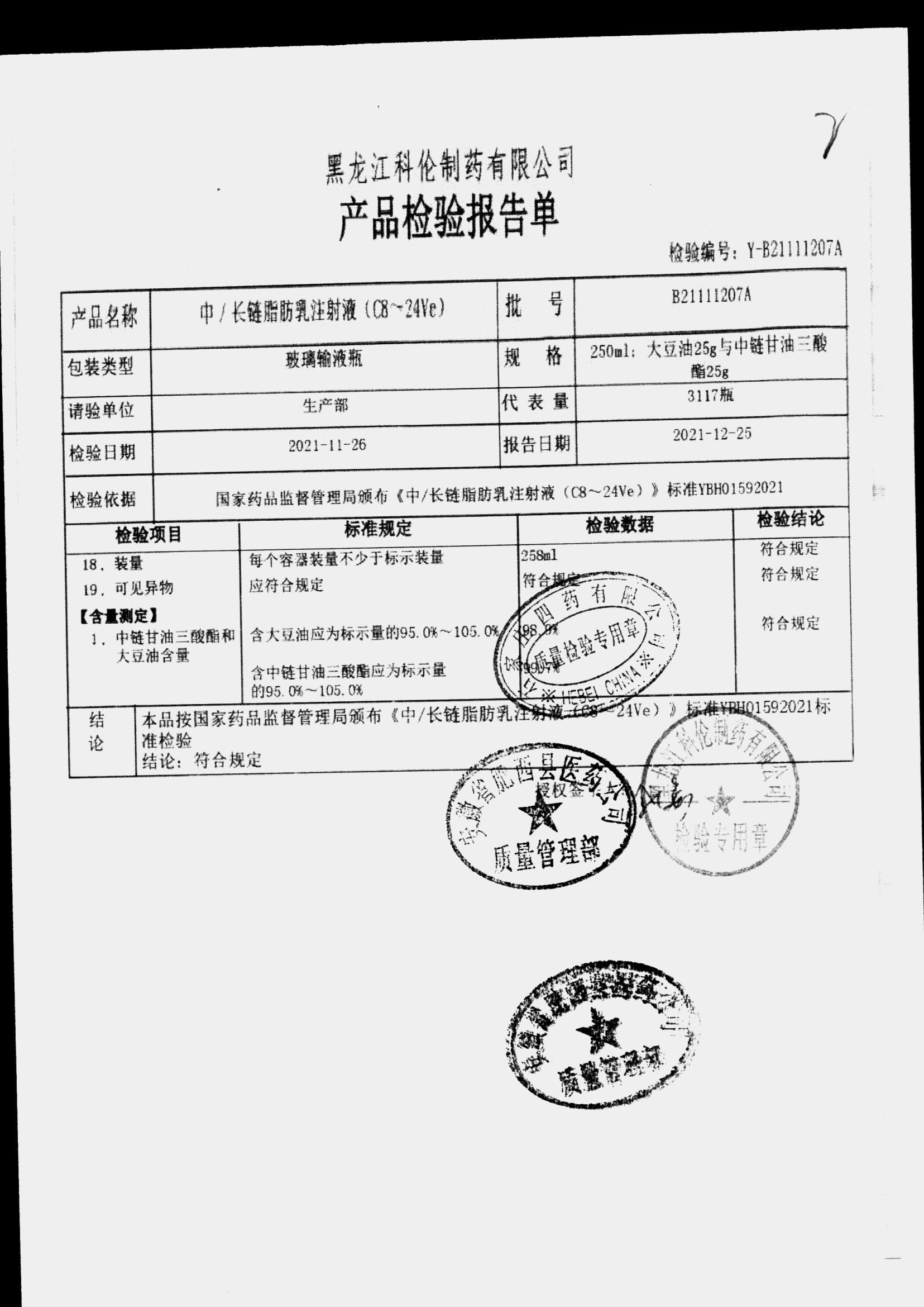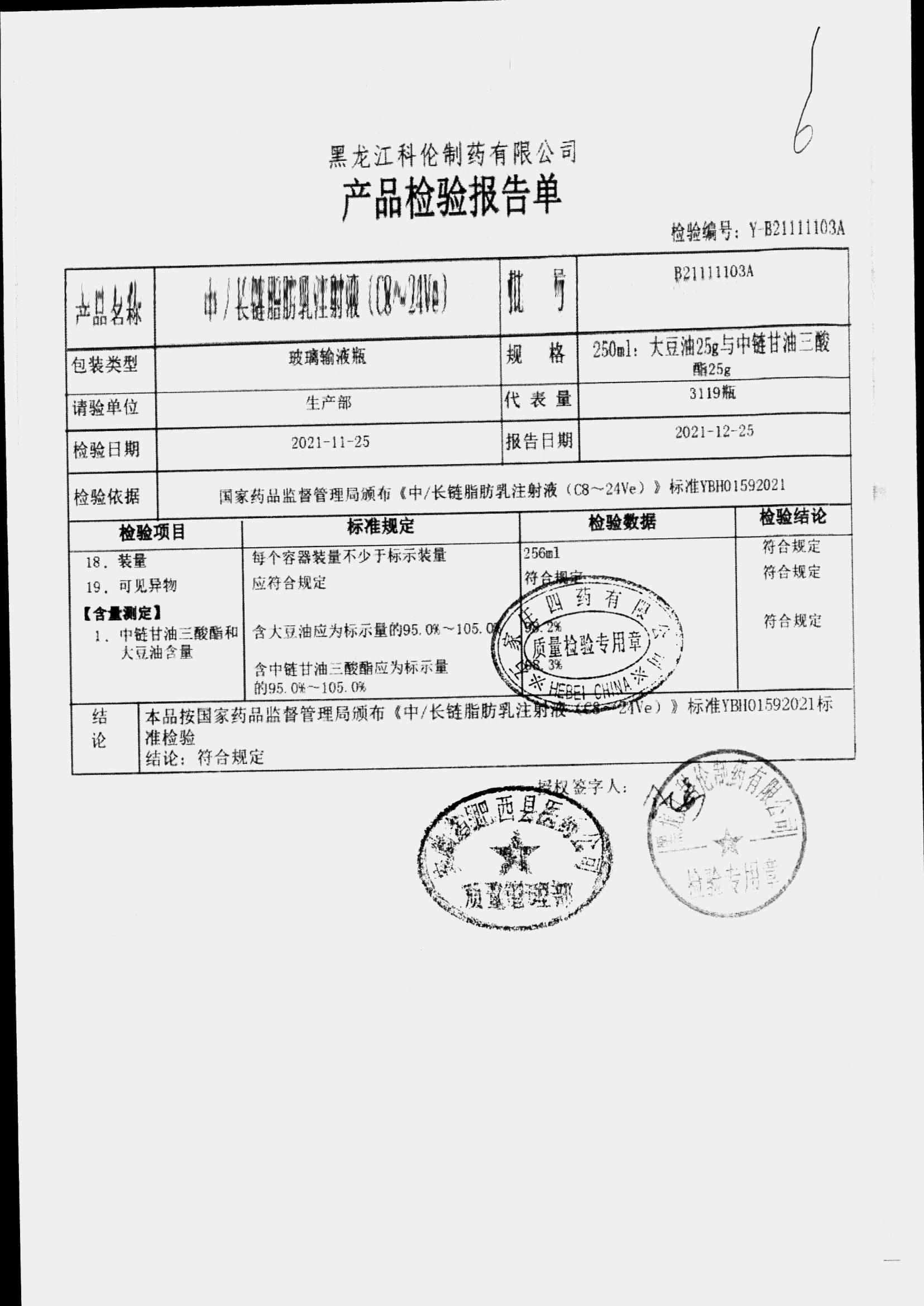 中/长脂肪乳注射液 | 250ml | B21111207A/1 | 查看详情 |