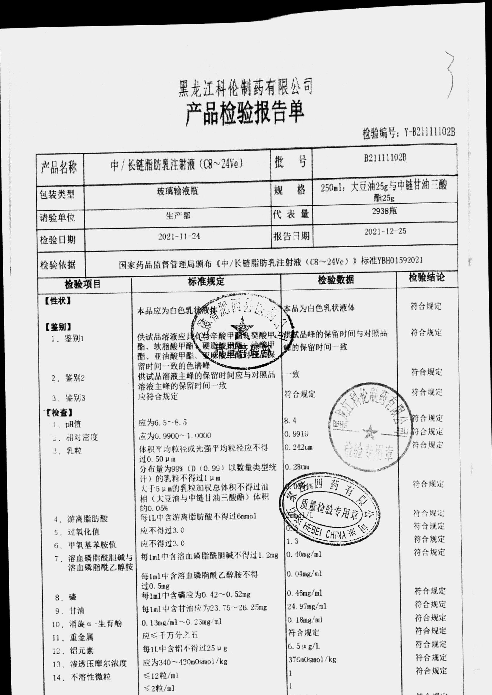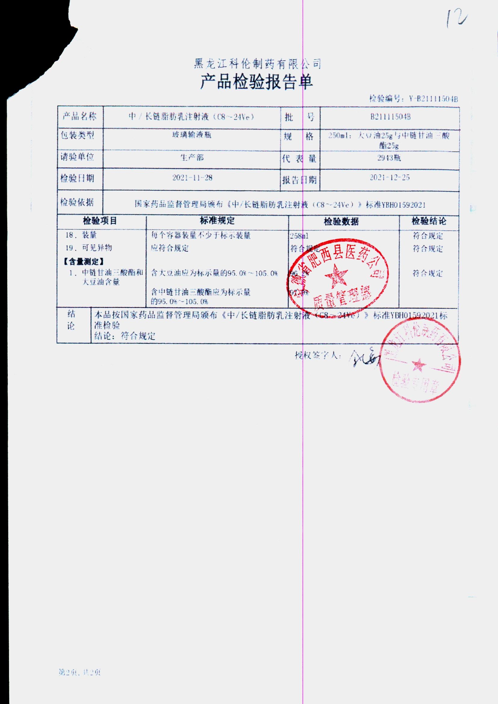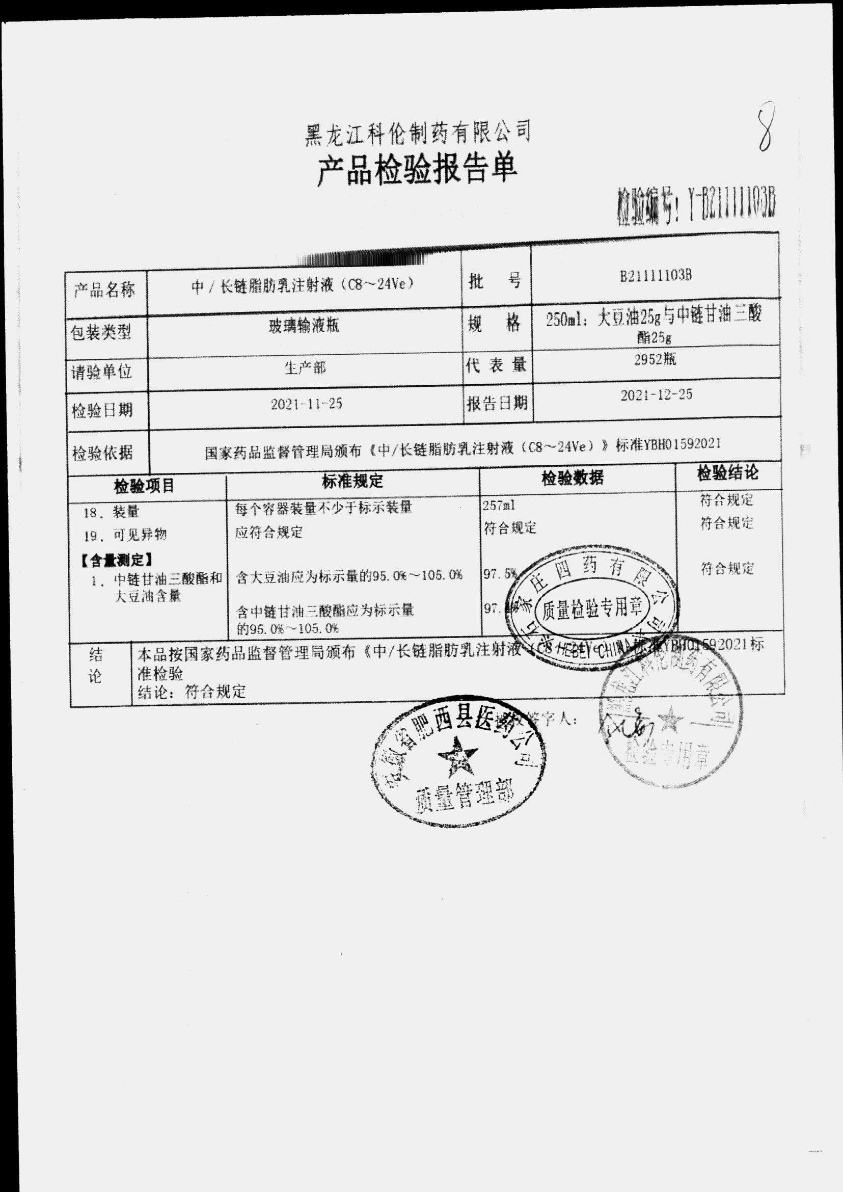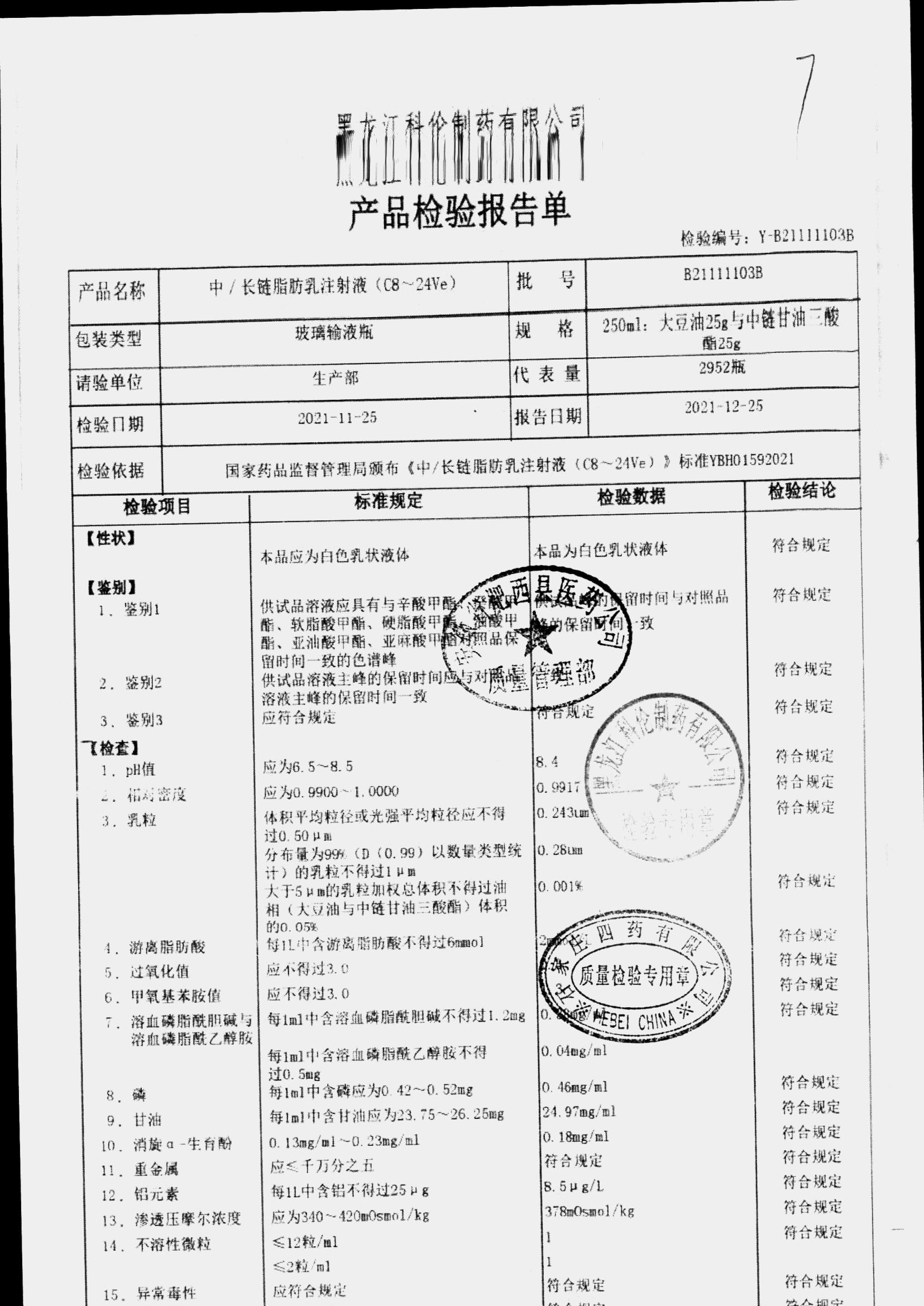 中/长脂肪乳注射液 | 250ml | B21111207A/1 | 查看详情 |