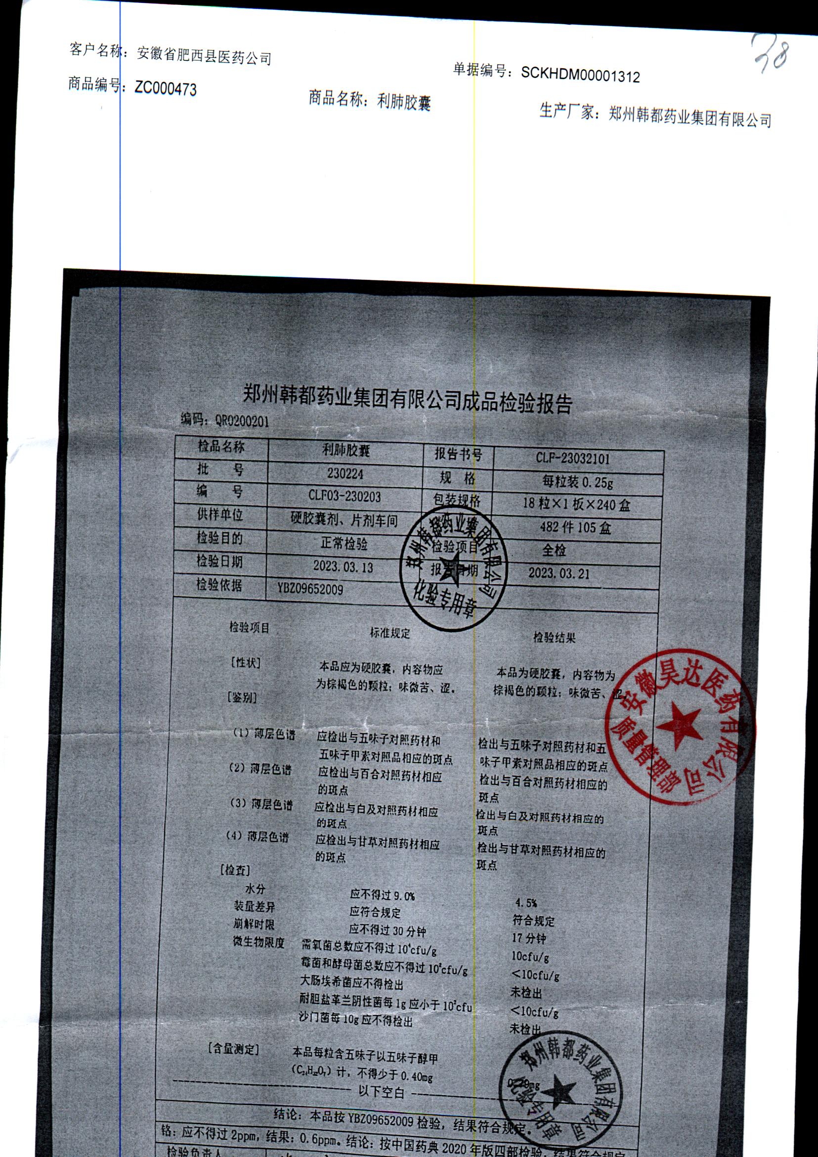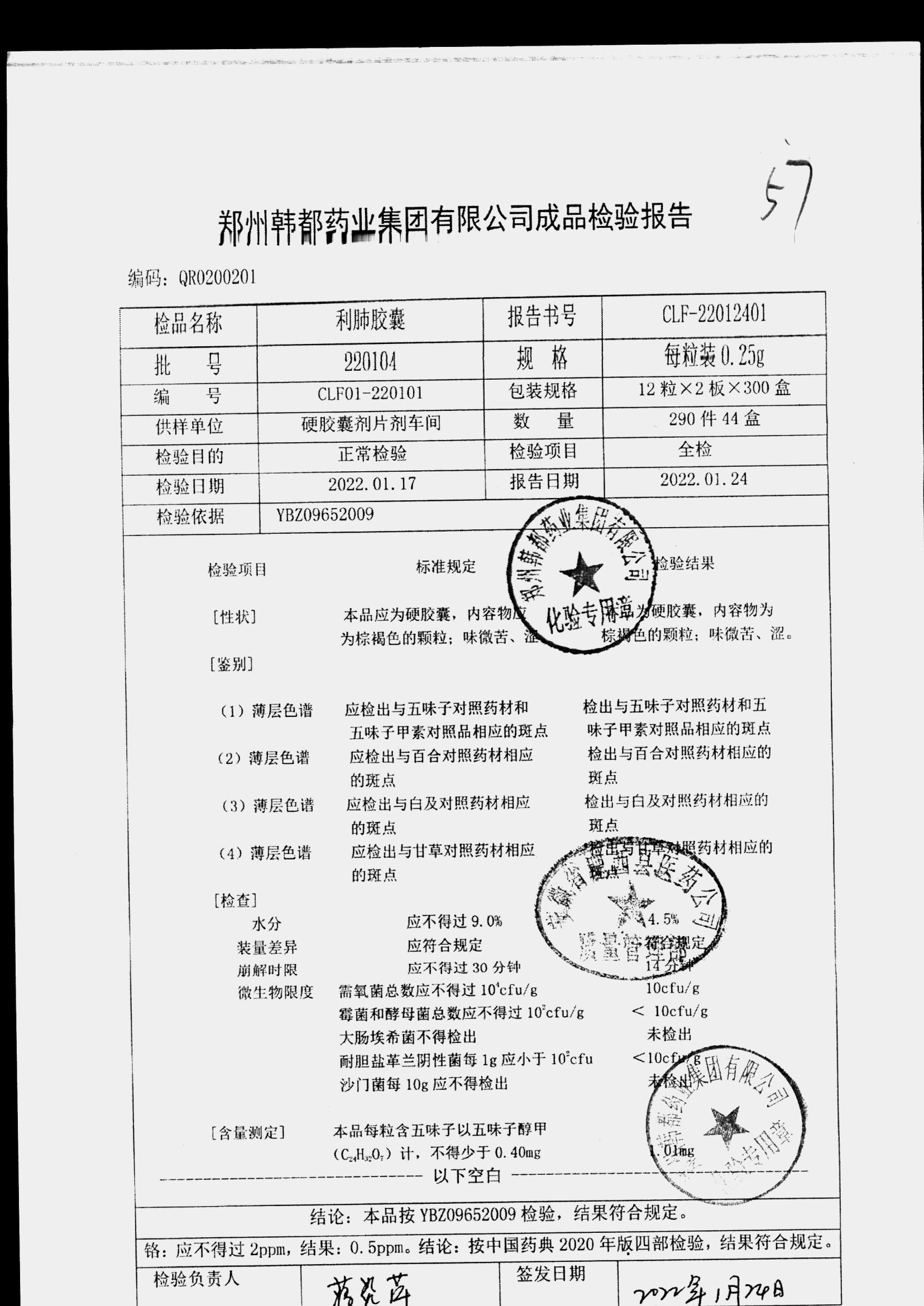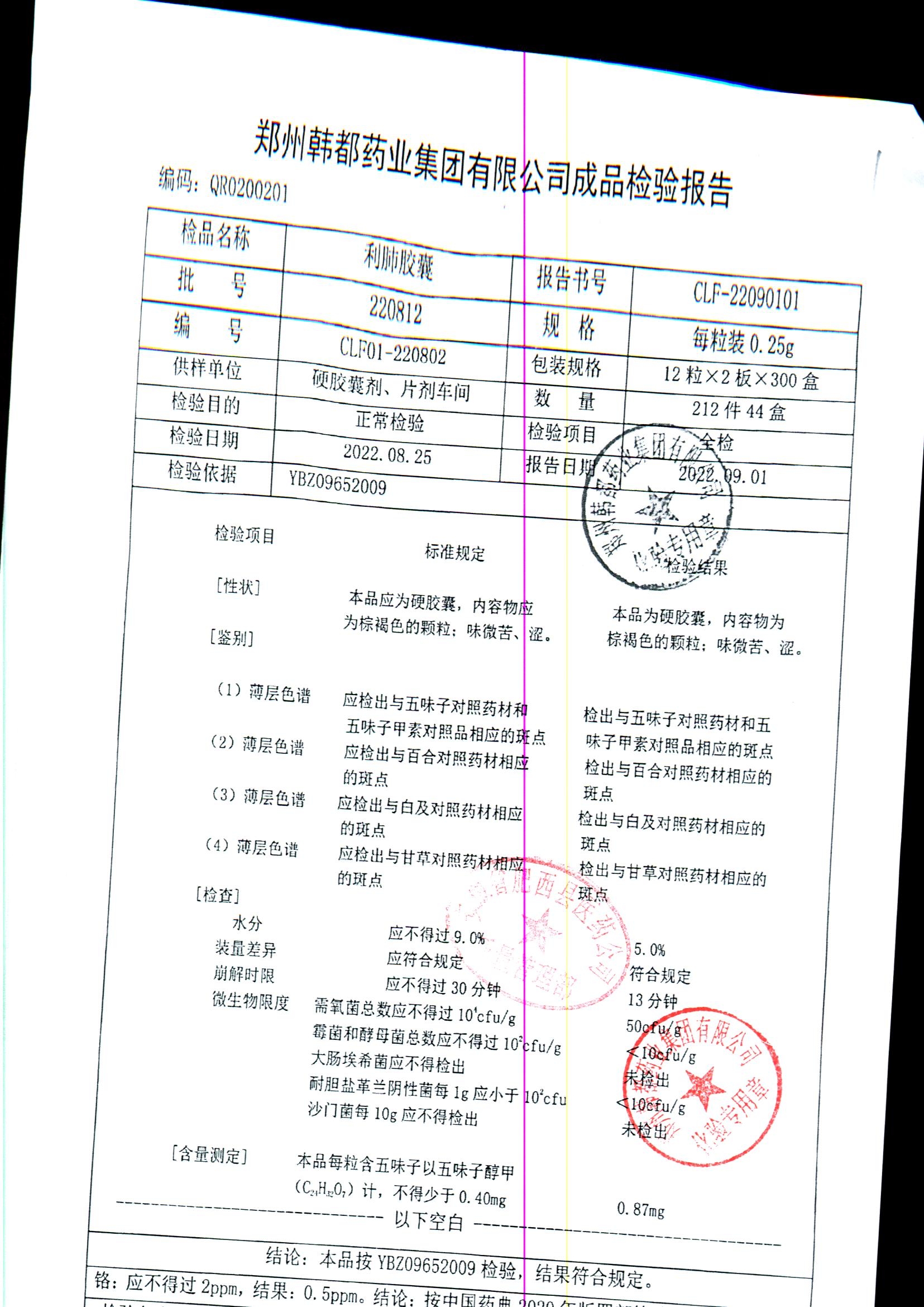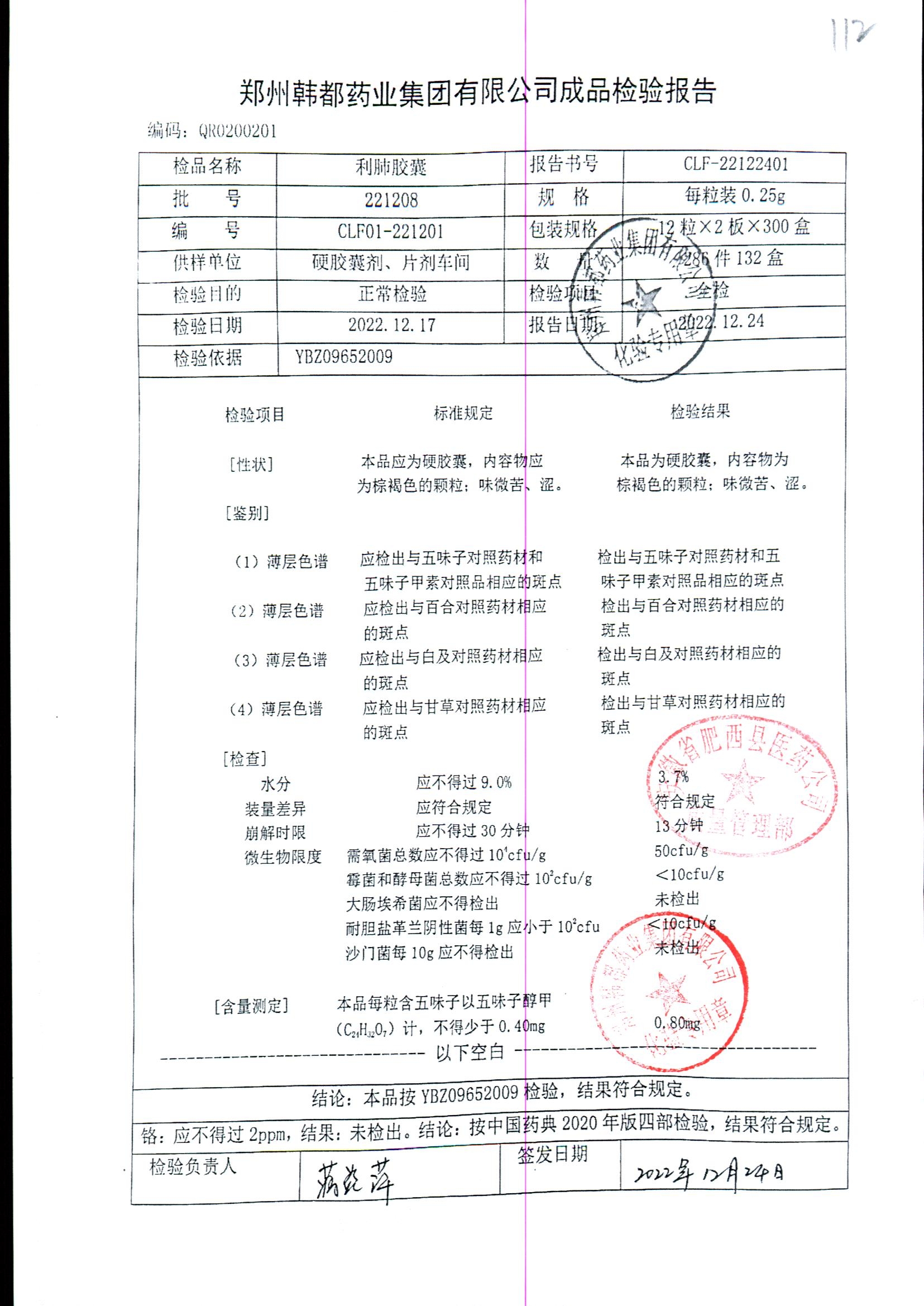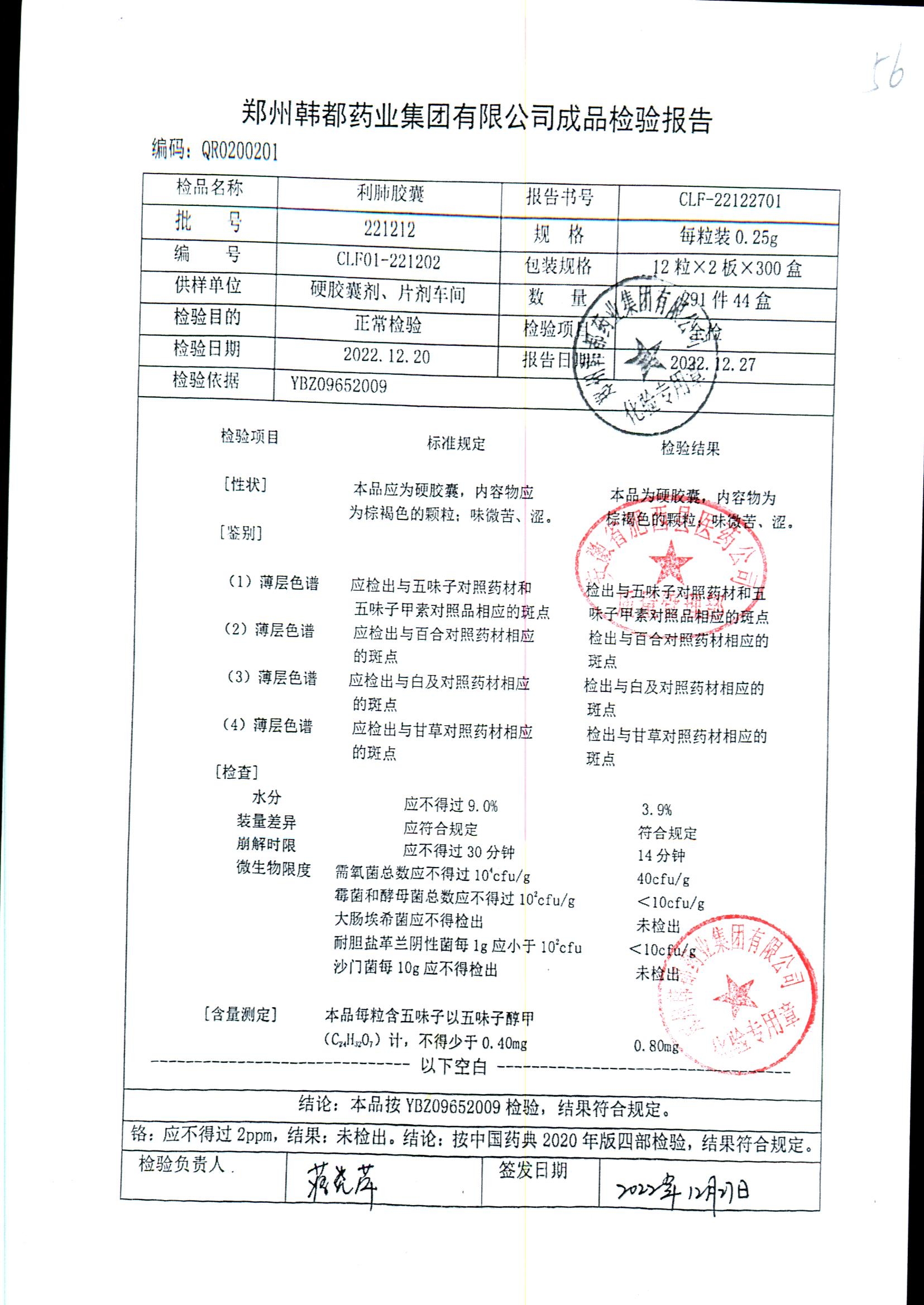利肺胶囊 | 0.25g*24粒 | 220812 | 查看详情 |