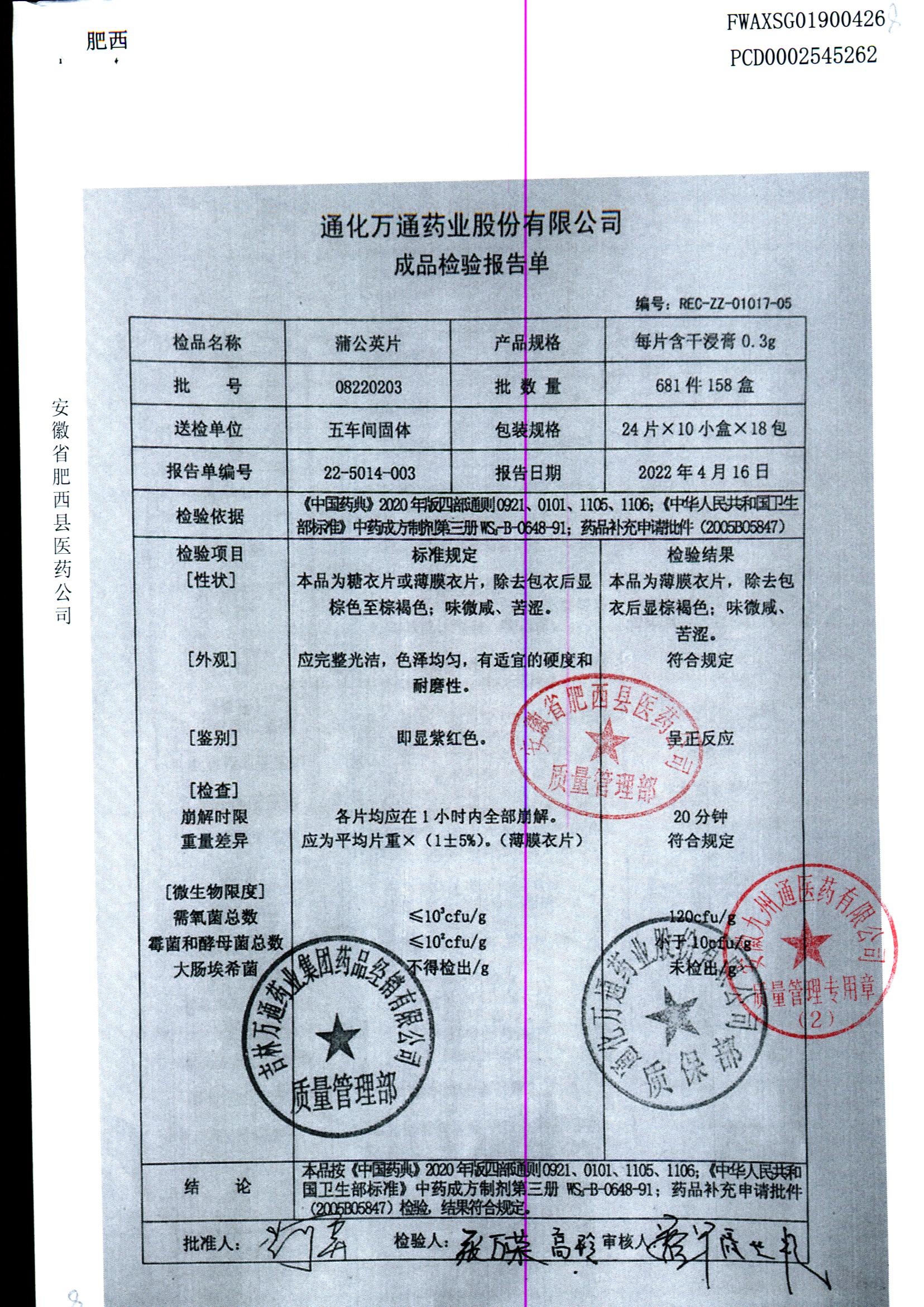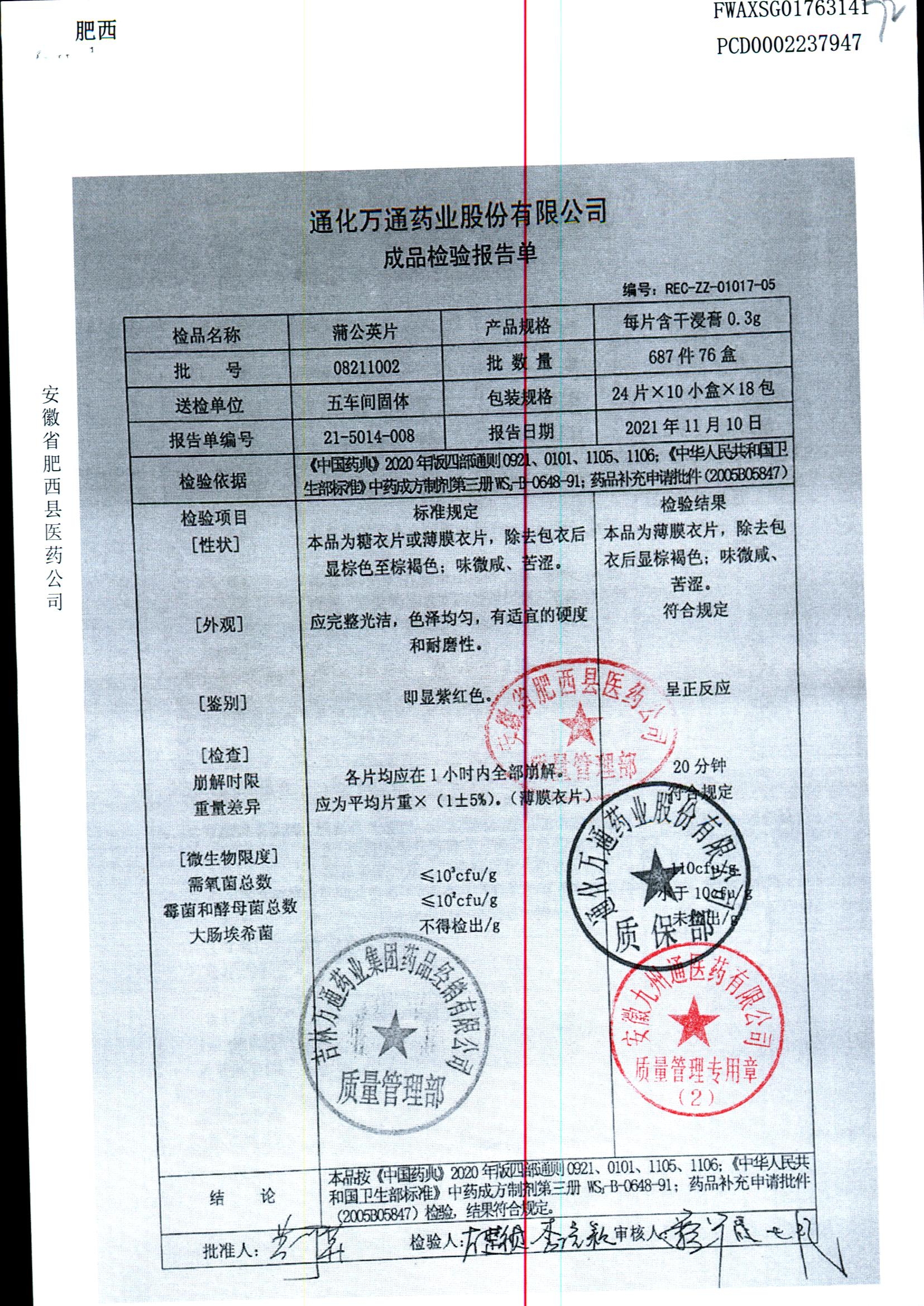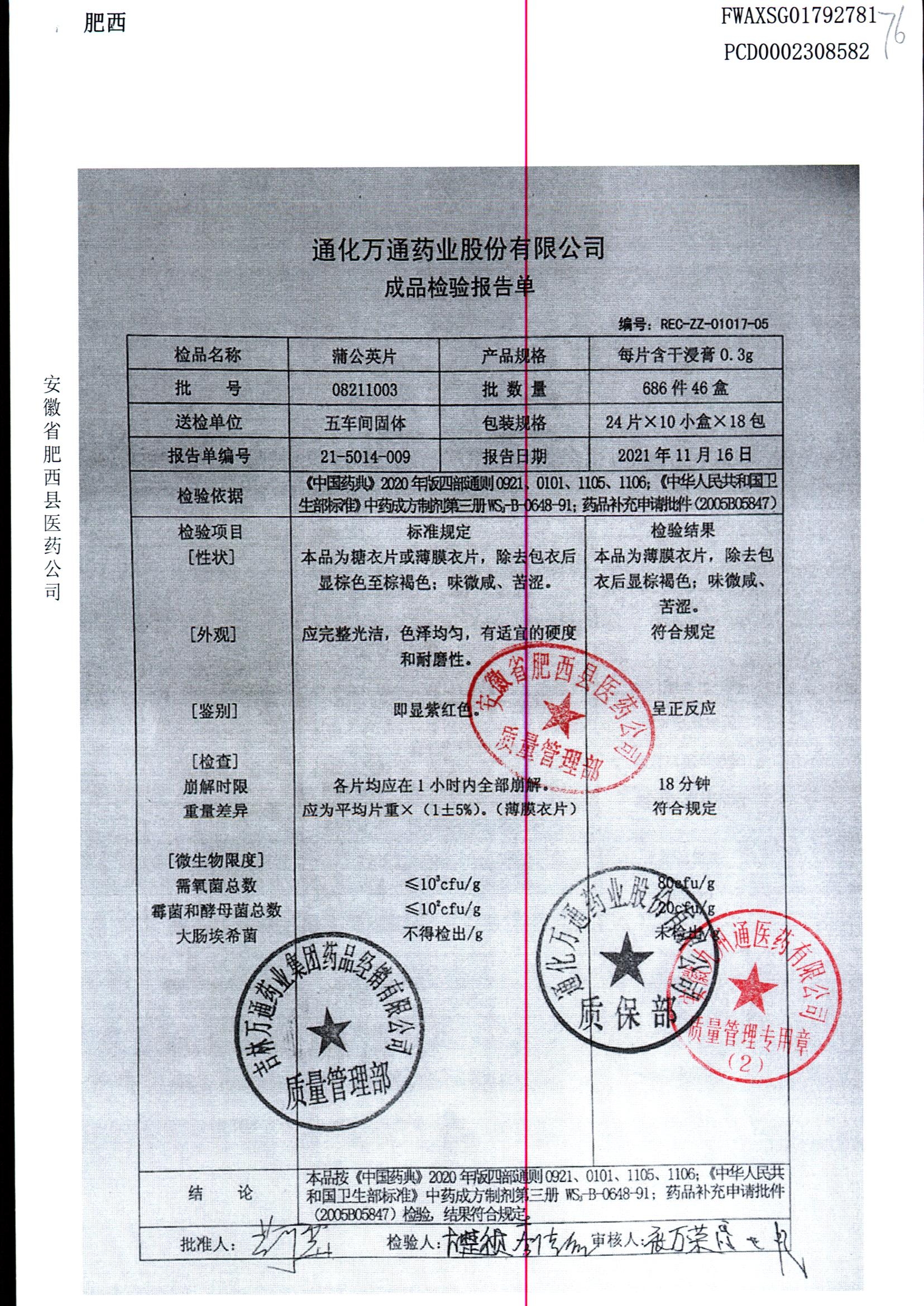 蒲公英片 | 0.3g*24片 | 08211002 | 查看详情 |