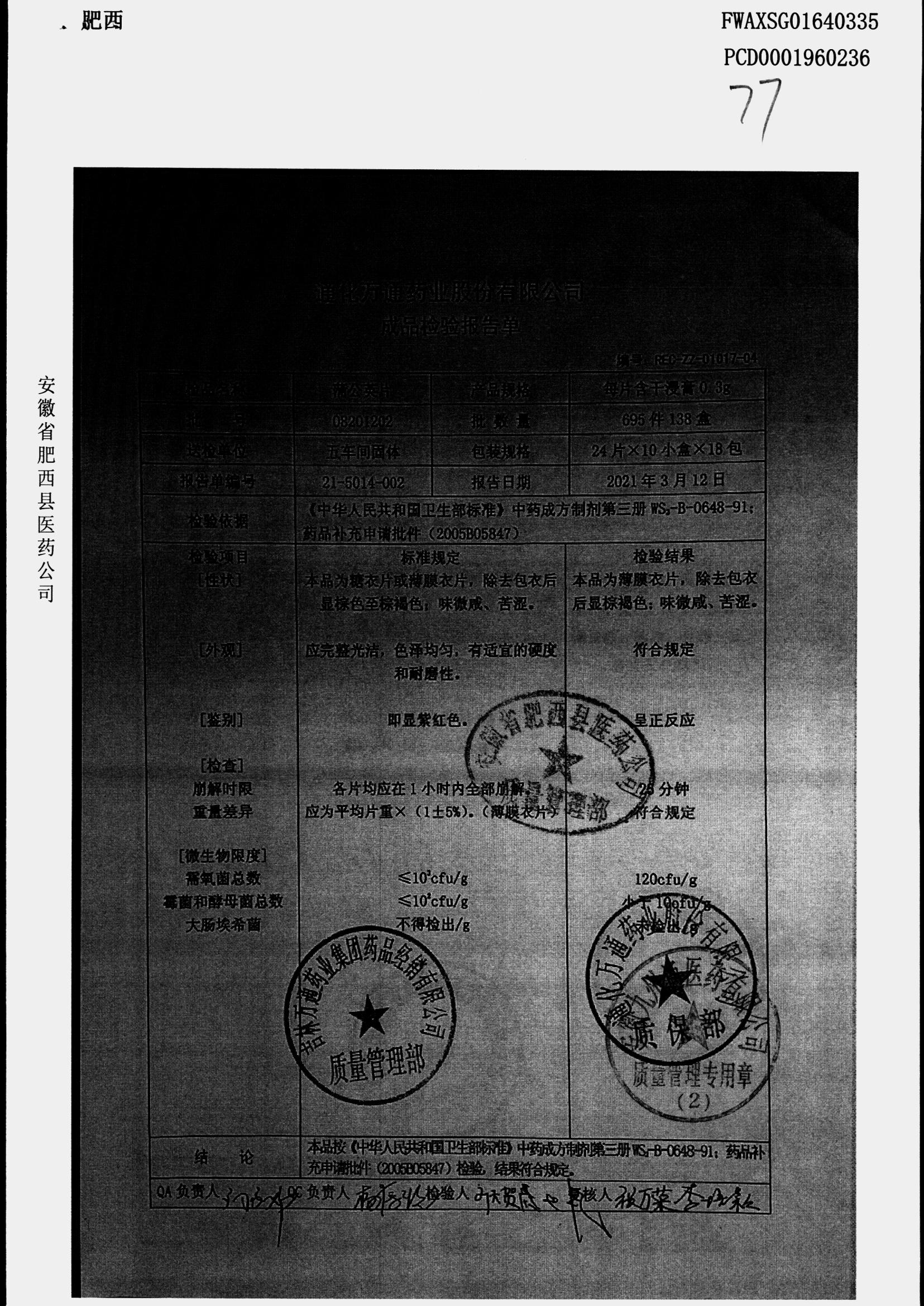 名称 | 规格 | 批号 | 药检报告 |