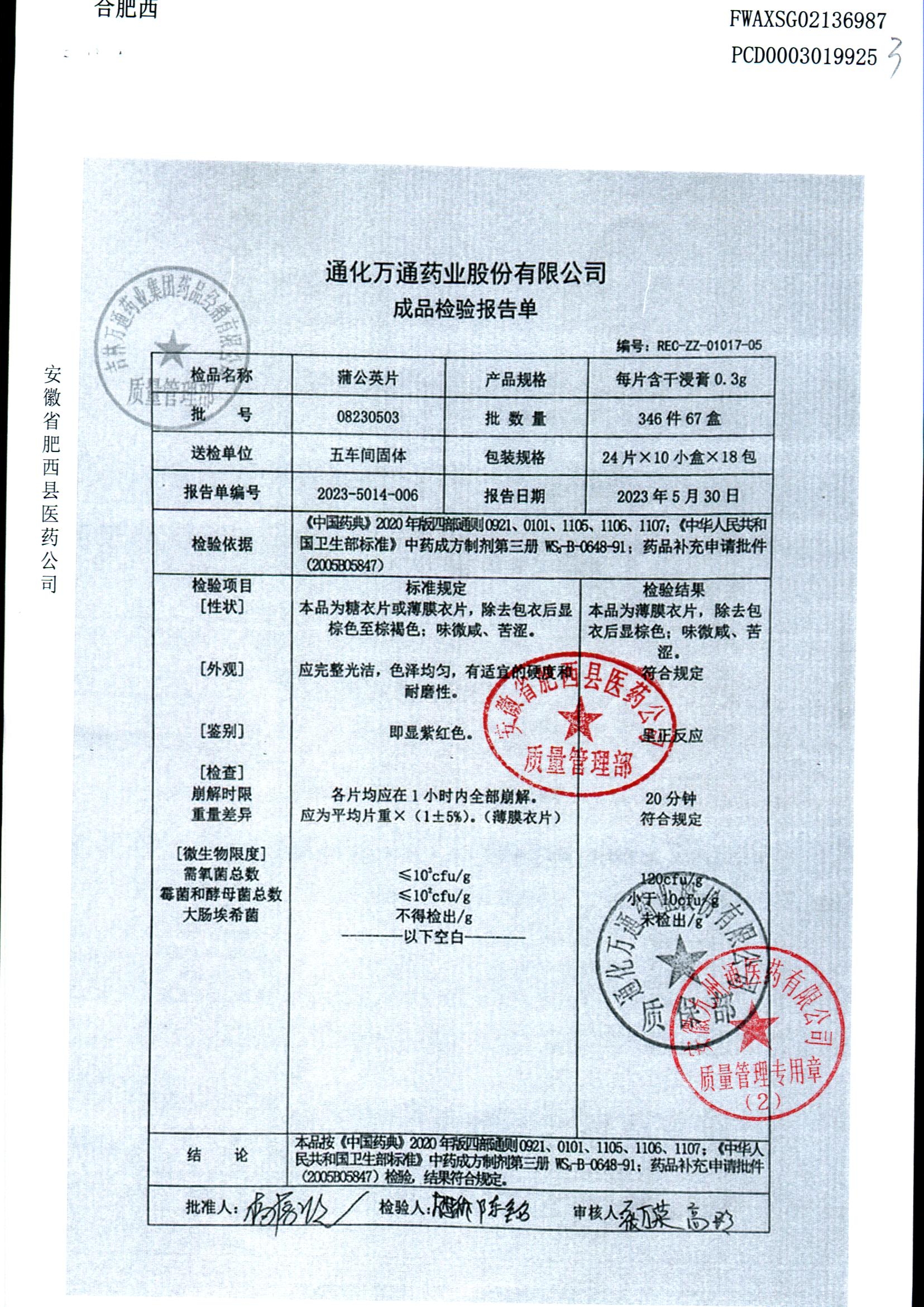 蒲公英片 | 0.3g*24片 | 08230901 | 查看详情 |