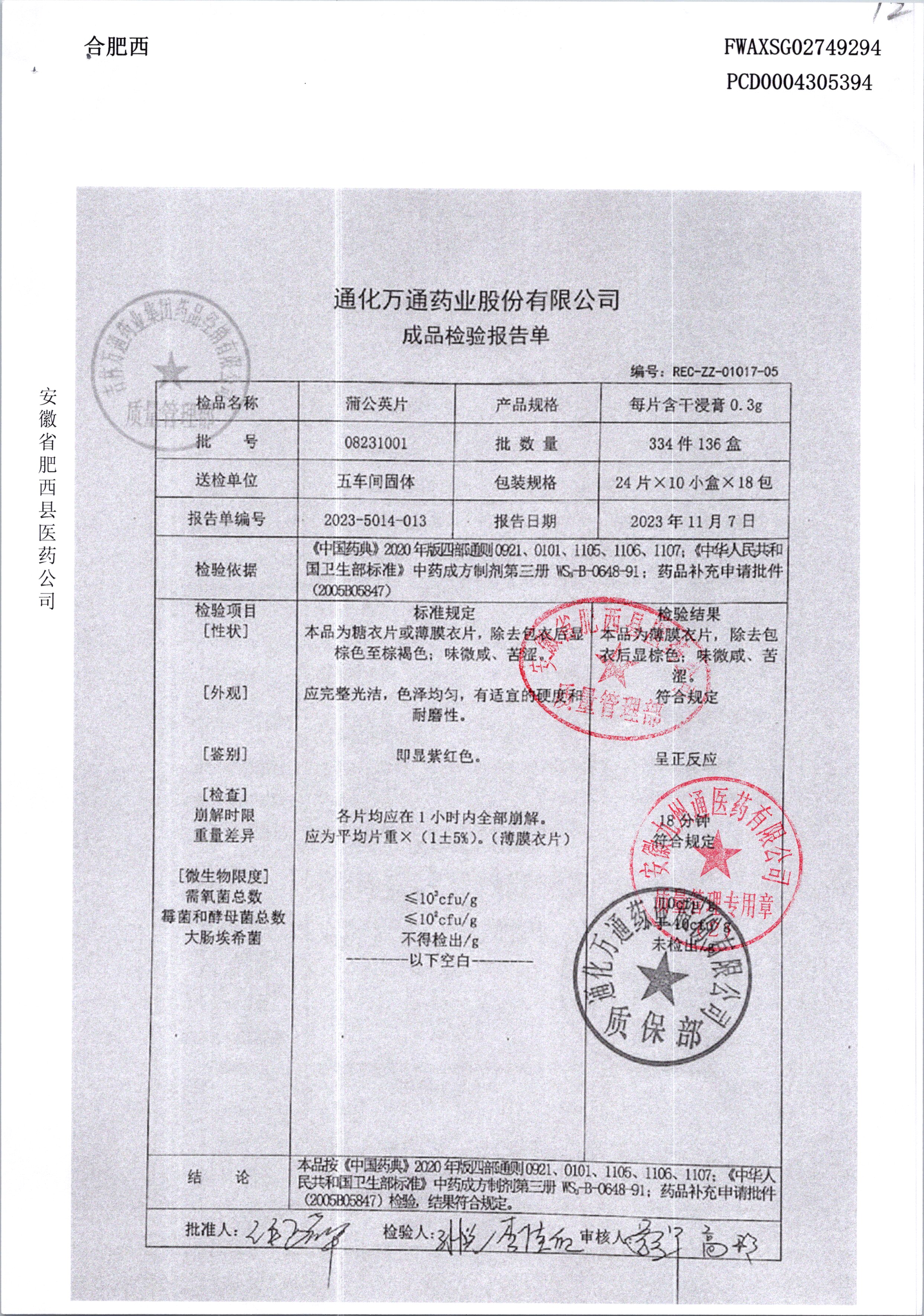 蒲公英片 | 0.3g*24片 | 08231001 | 查看详情 |