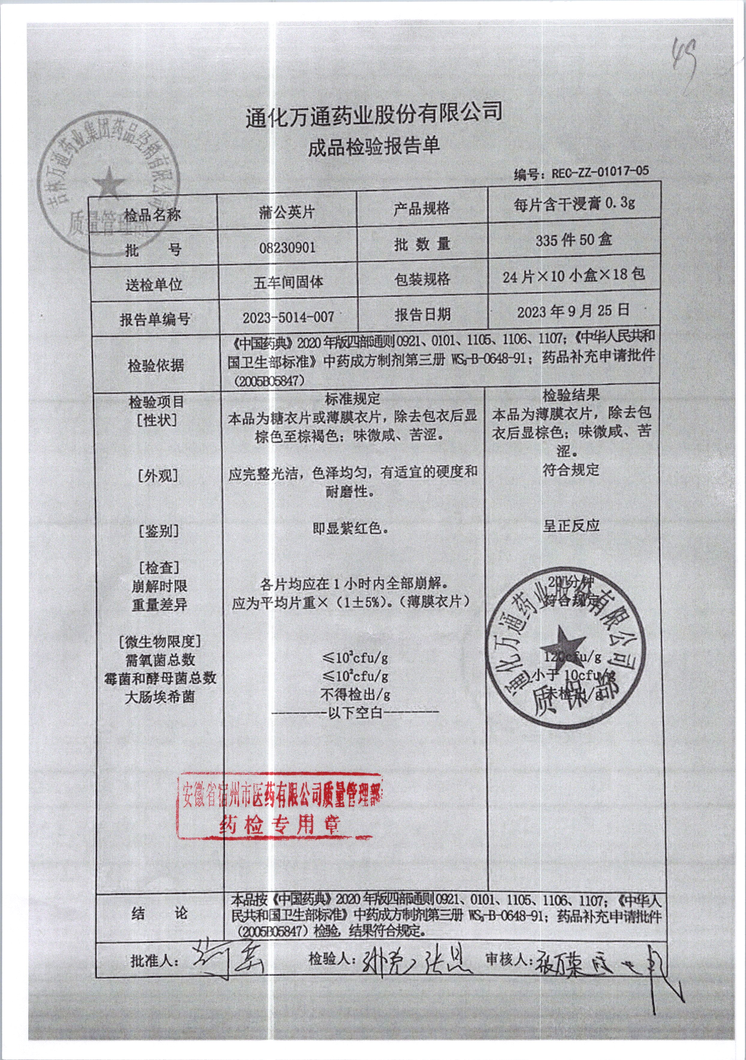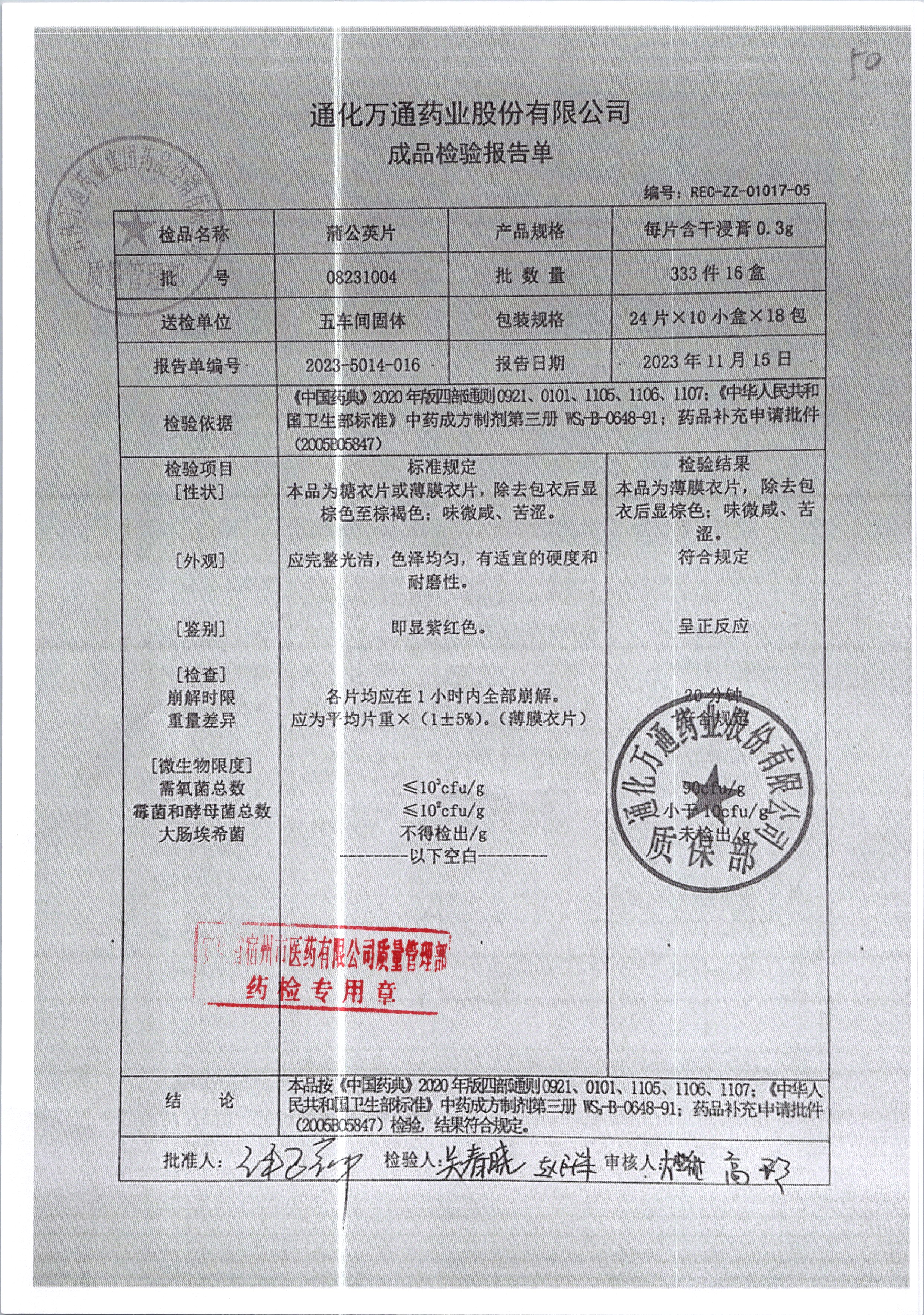 蒲公英片 | 0.3g*24片 | 08231004 | 查看详情 |